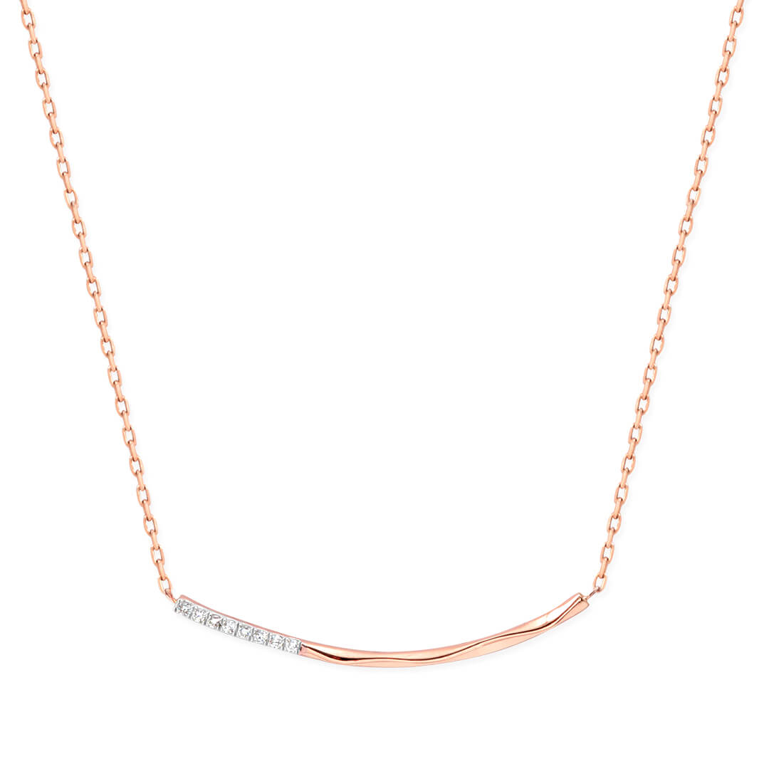 Mutlu günlerinizin vazgeçilmez hediyesi olan minimal ve modern tasarımlı 0,06 karat pırlantalı 2.30 gr 14 ayar rose altın kolye.
