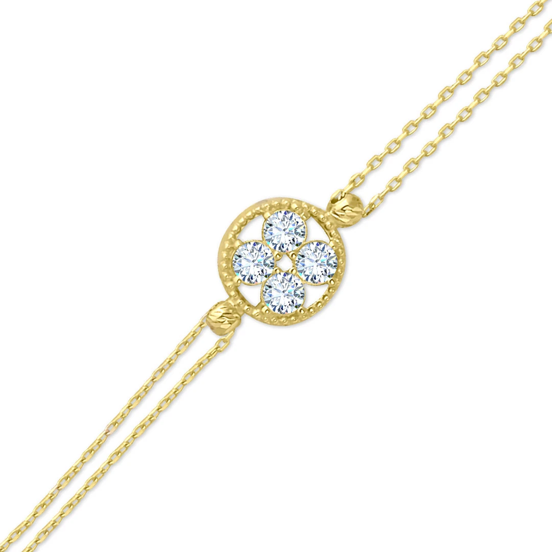 18 Cm boyunda spor hafif tasarımı ile günlük olarak da kullanabileceğiniz 1.50 gr ağırlığında 14 ayar altın yuvarlak ışıl ışıl taşlı minimal detay bileklik.