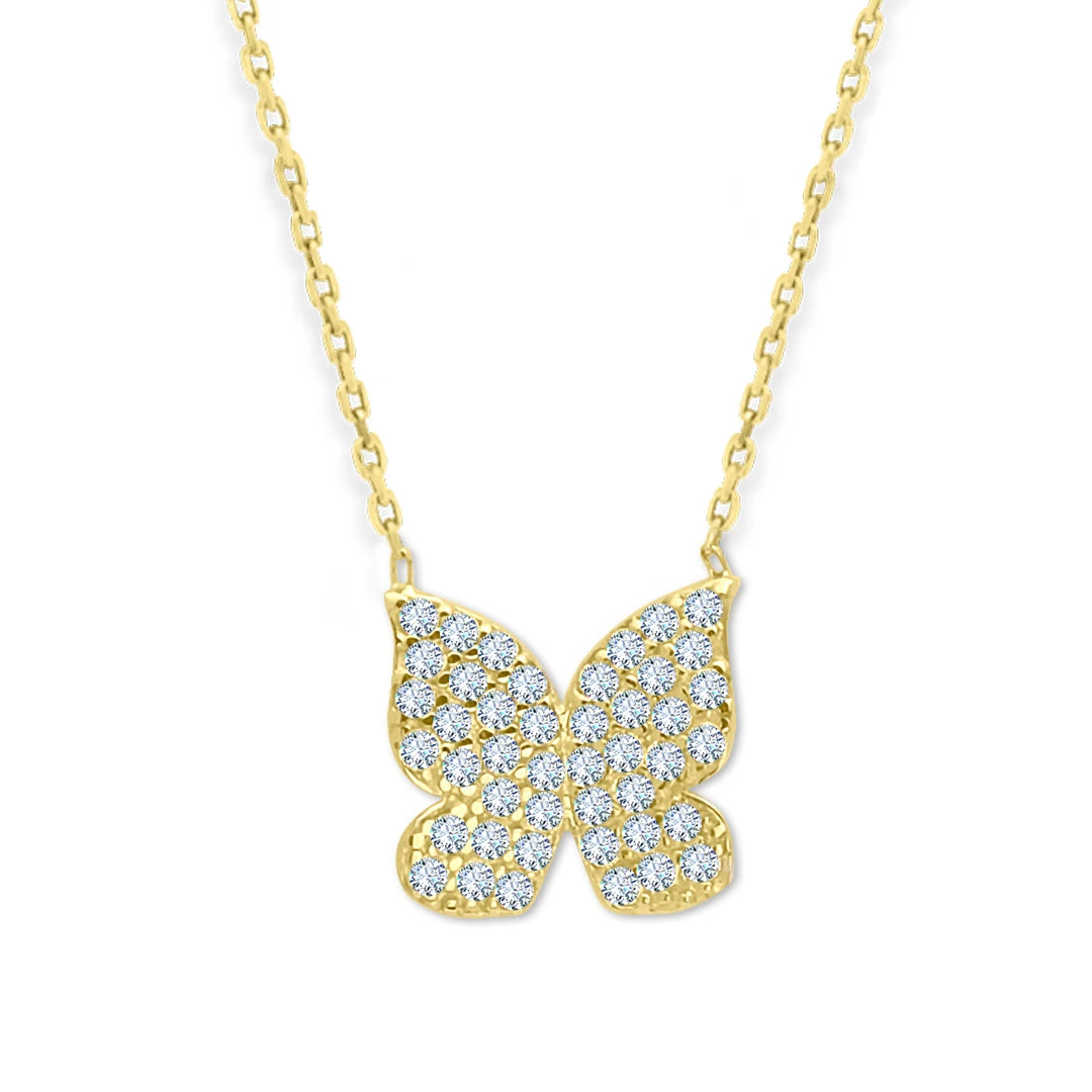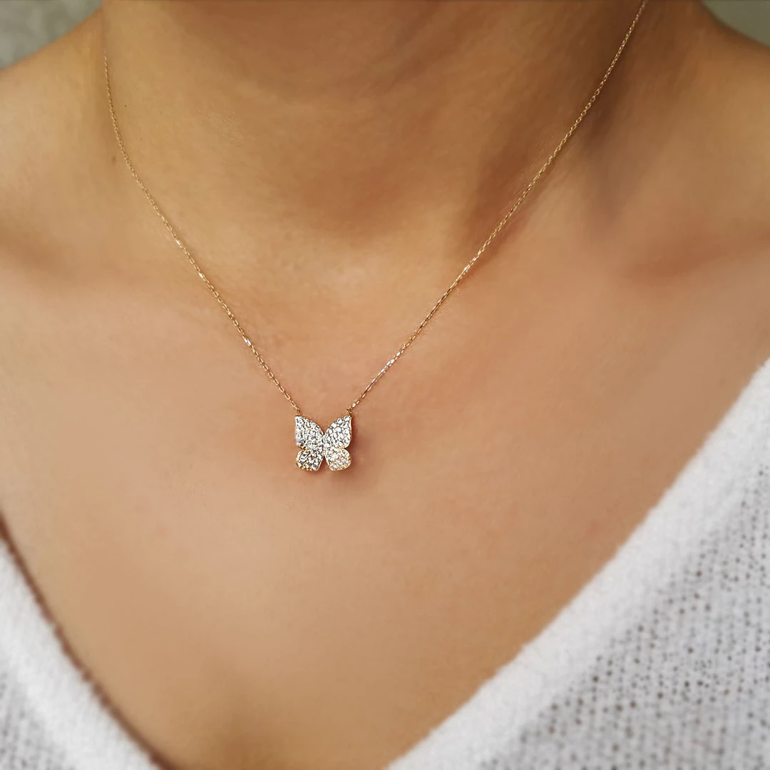 45 Cm zincirli 1,8 gr. 1.2 cm boyutunda zirkon taşlı model 14 ayar altın şık ve minimal bir duruşa sahip kelebek kolye.
