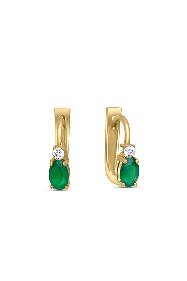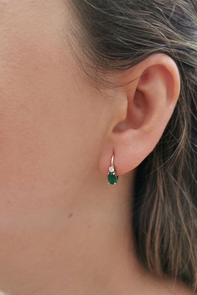 2.70 Gram Modern ve Minimal Zarif Tasarım 14 Ayar Altın Oval Zirkon Zümrüt Taşlı Kadın Günlük Küpe.