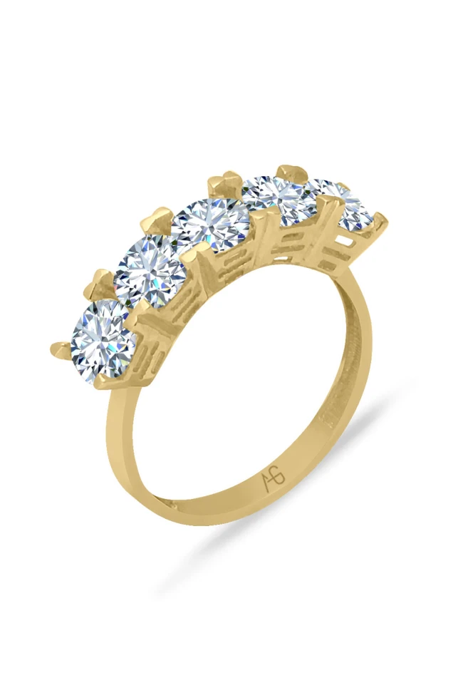 14 Ayar 2.90 gram ağırlığında zevkinize göre sarı yada beyaz altın tercihiyle satın alabileceğiniz zirkon taşlı beştaş yüzük.