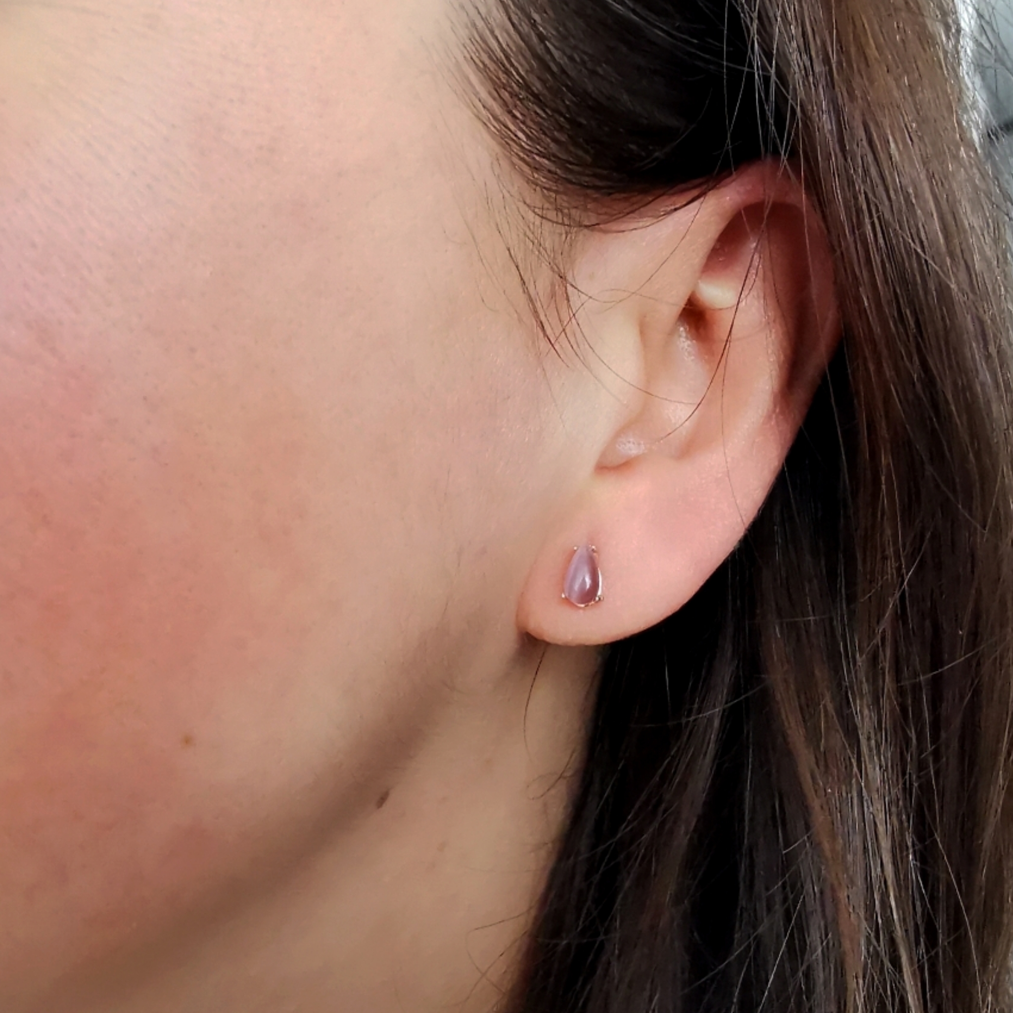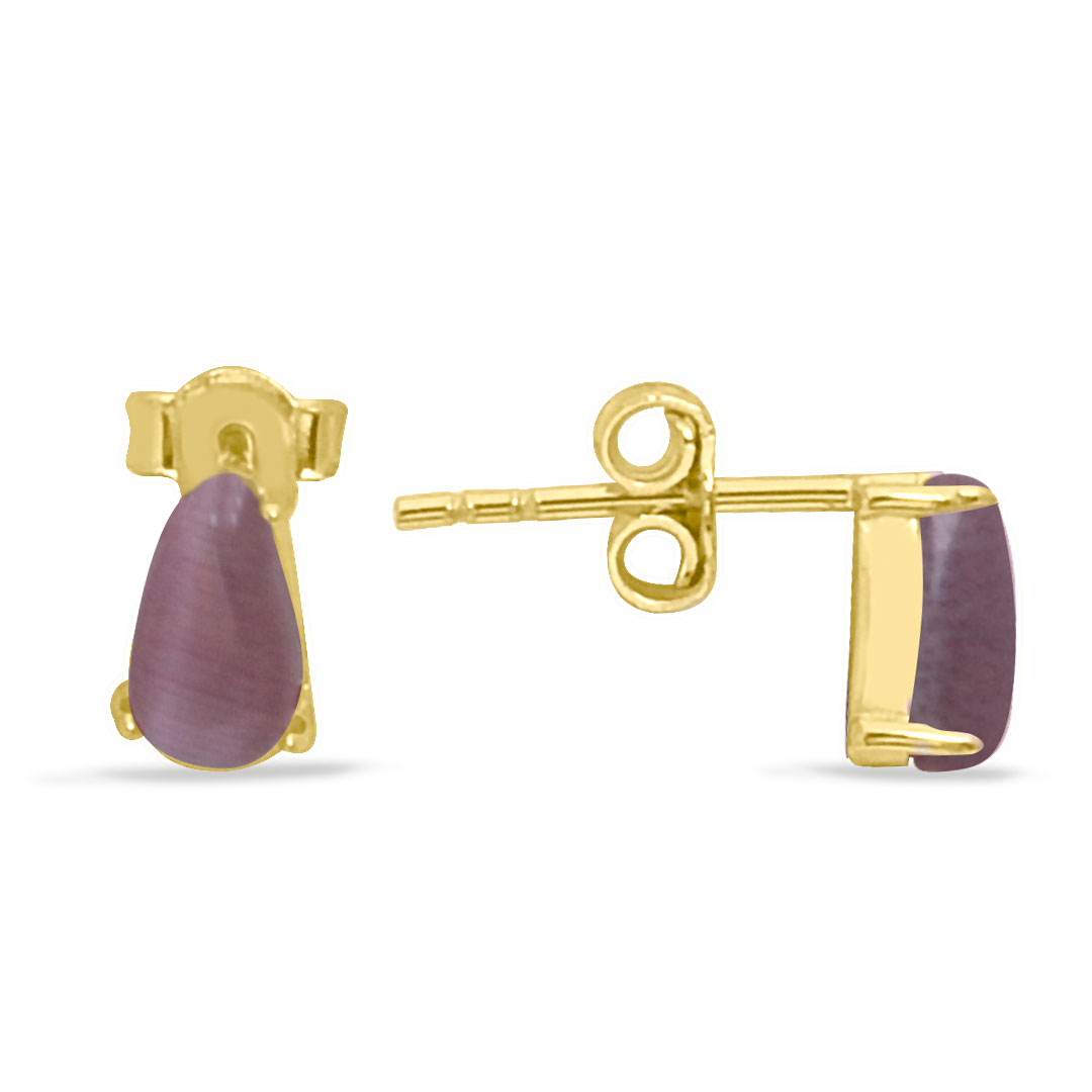 14 Ayar 1.20 gram ağırlığında minimal tasarımıyla gece gündüz kulağınızdan çıkarmak istemeyeceğiniz mor taşlı altın su damlası küpe.