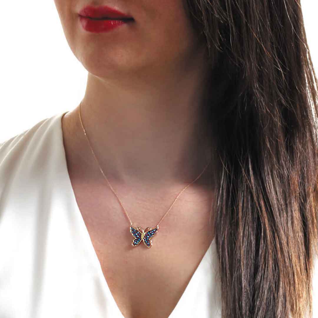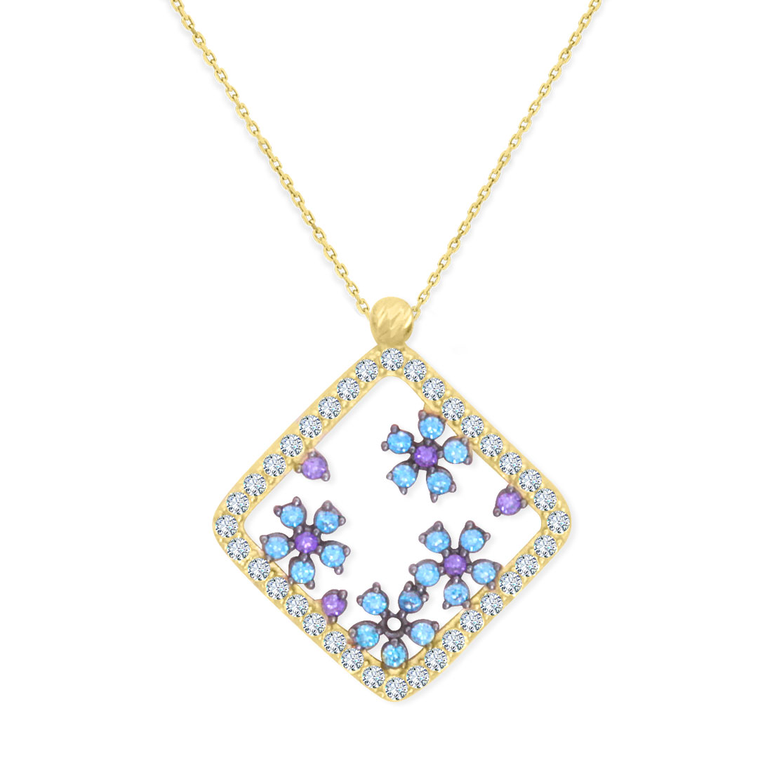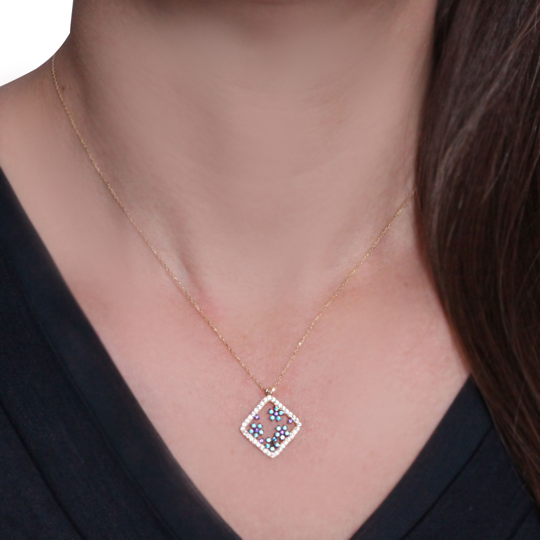 Mavi ve mor tonlarının enerji dolu zirkon taş kombinasyonu ile oldukça şık ve havalı bir duruşa sahip altın kolyeyle günlük stiline ışıltı katmaya hazır mısın?