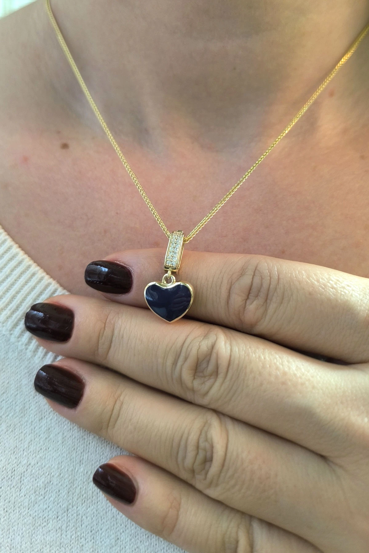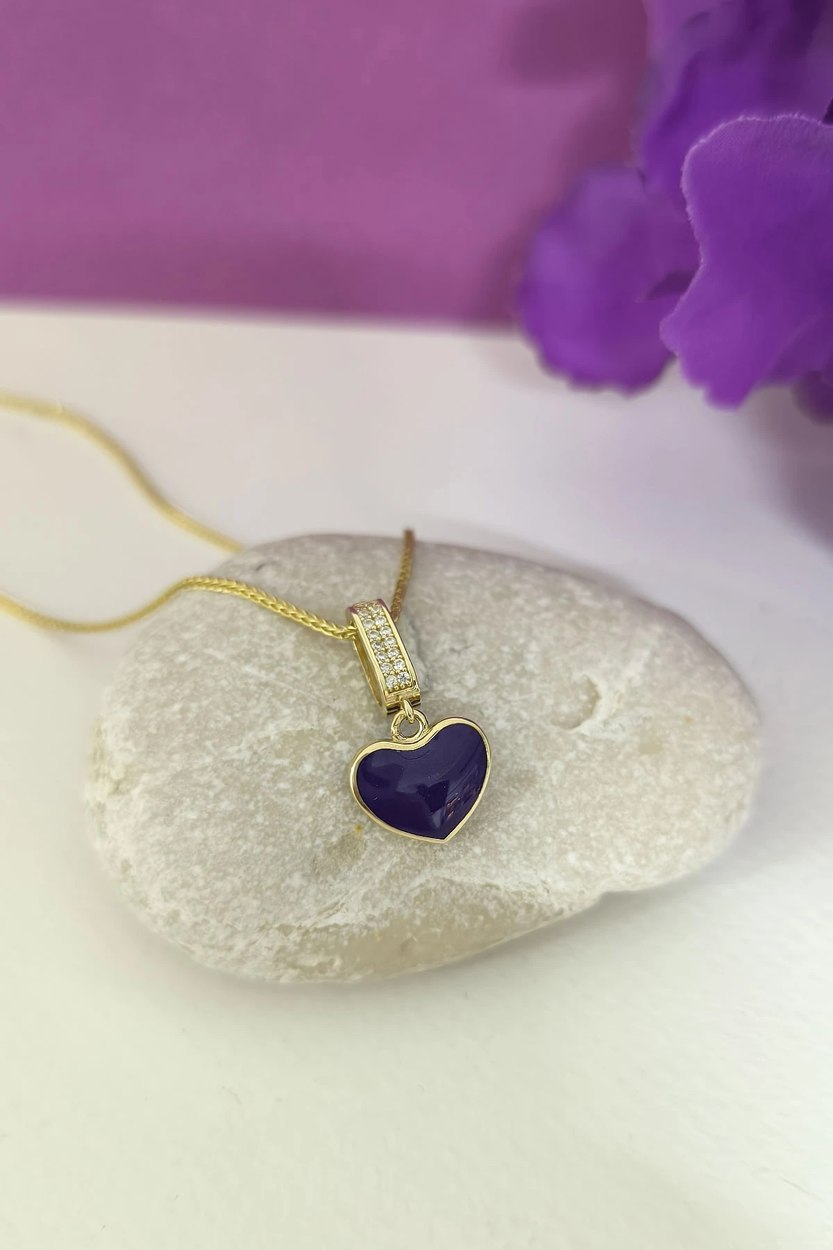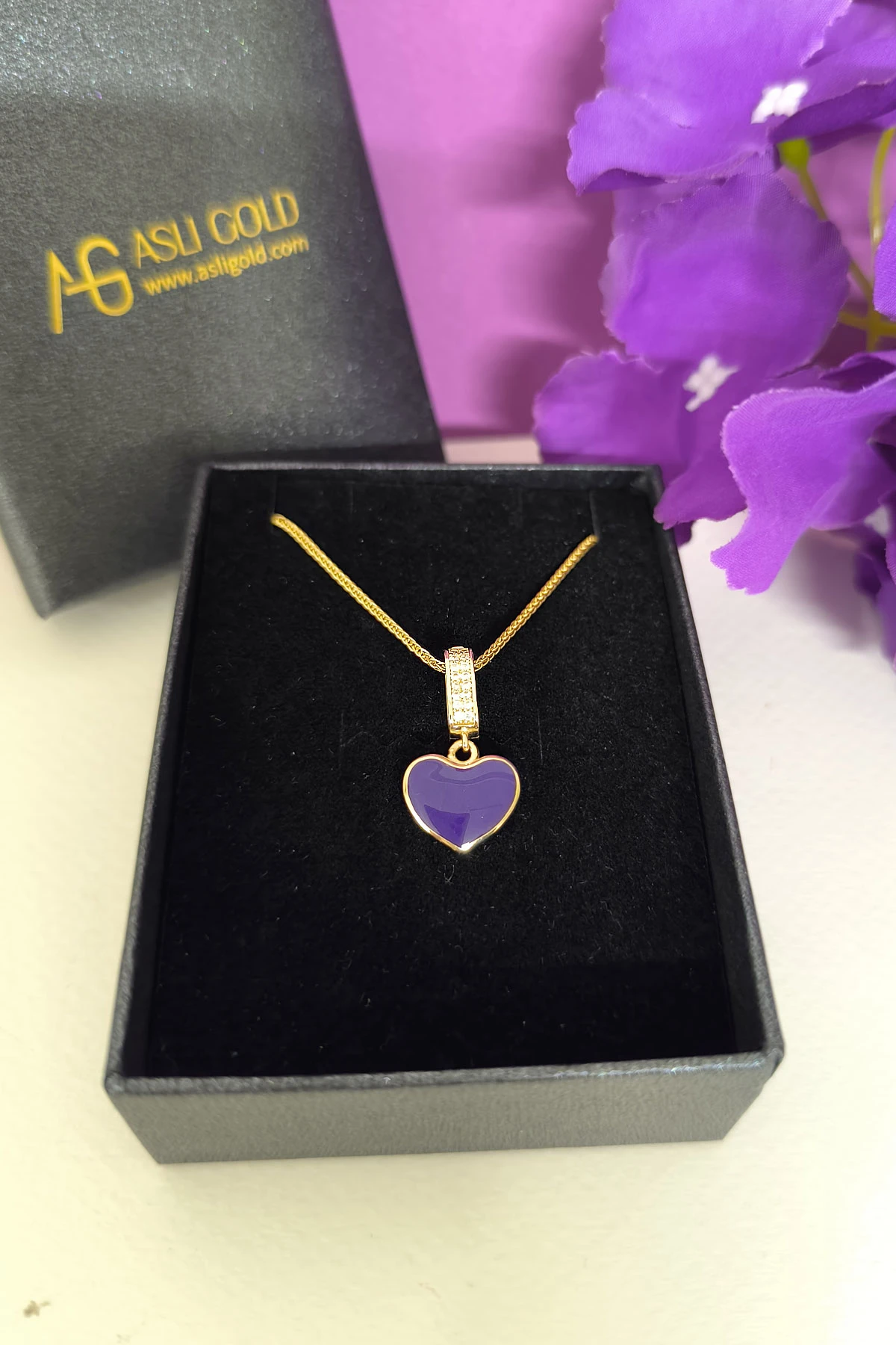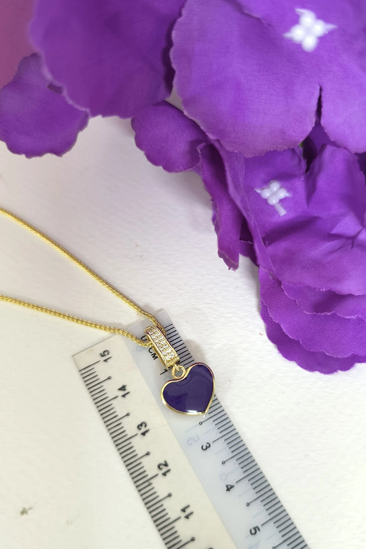 2.5 Cm Boyunda Kendinden 45 Cm Zincirli 14 Ayar Mor Mineli Renkli Spor Tasarıma Sahip Işıl Işıl Günlük Kullanıma Uygun 4.00 Gr. Ağırlığında Altın Kalpli Kolye.