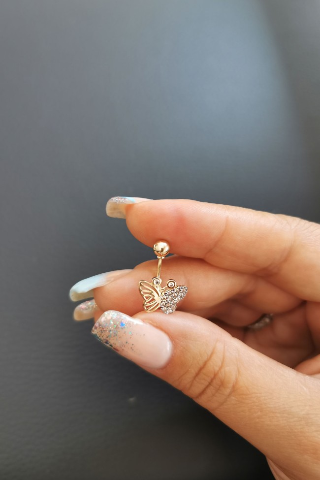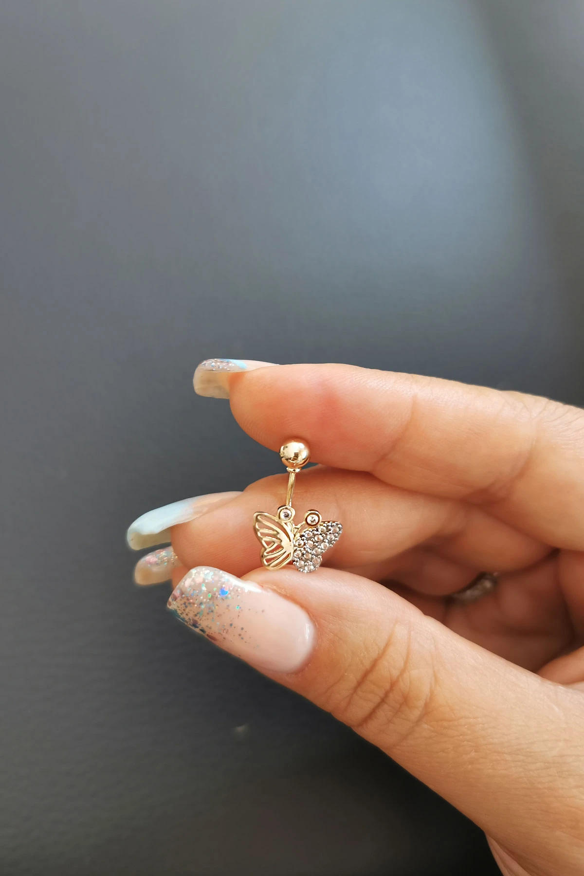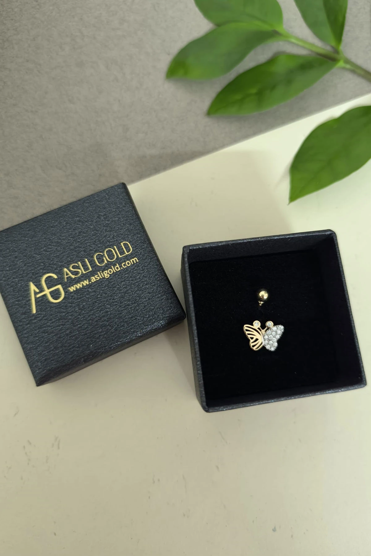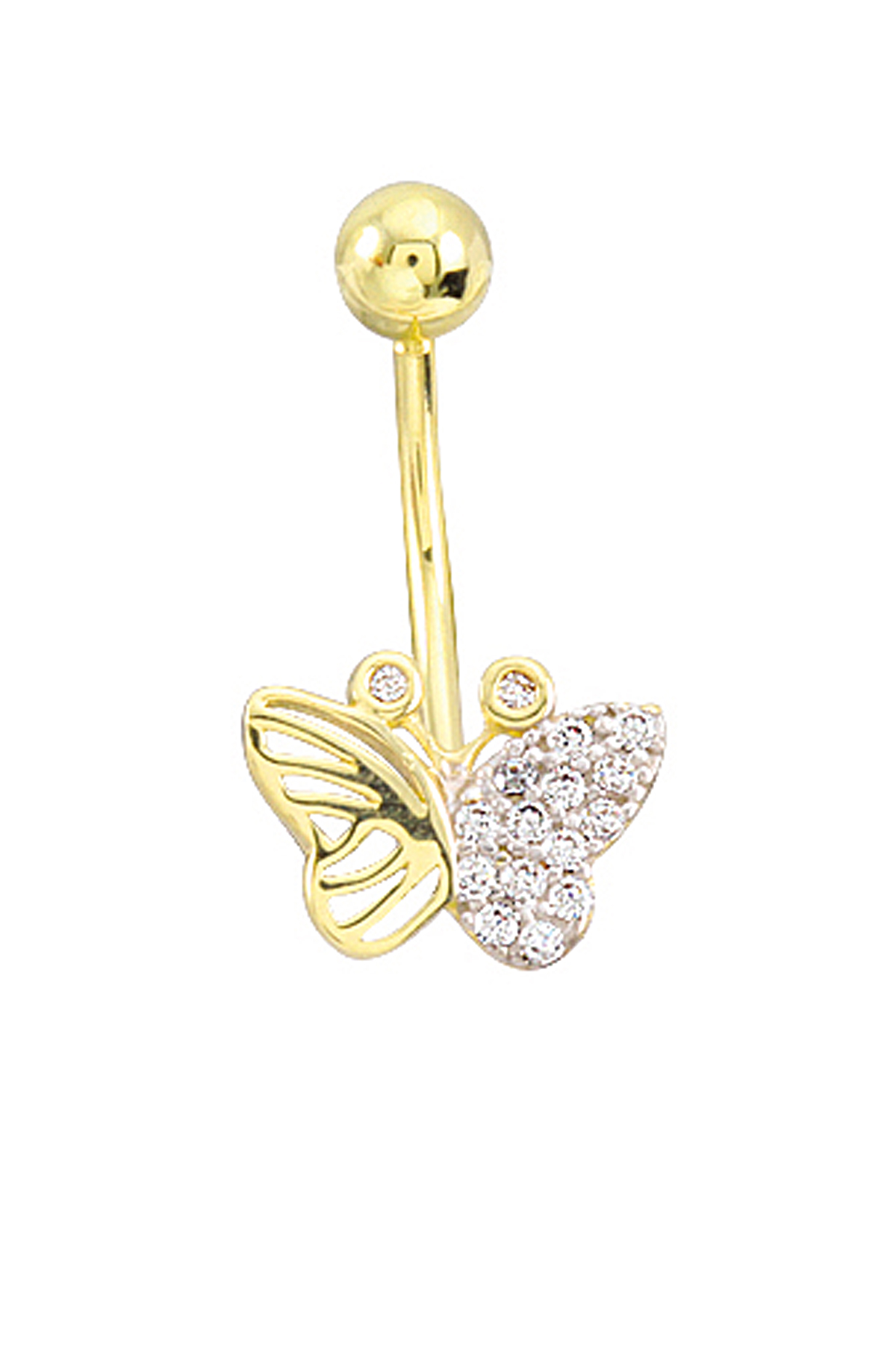 Motif Kelebek Model Işıl Işıl Zirkon Taşlı 14 Ayar Altın Göbek Piercingi. İnsan vücuduna en uyumlu değerli maden olan altın göbek piercinglerini sağlıkla ve güvenle uzunca seneler kullanabilirsiniz.