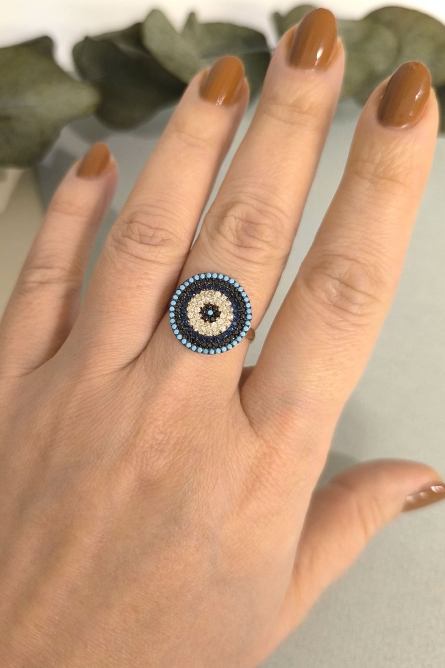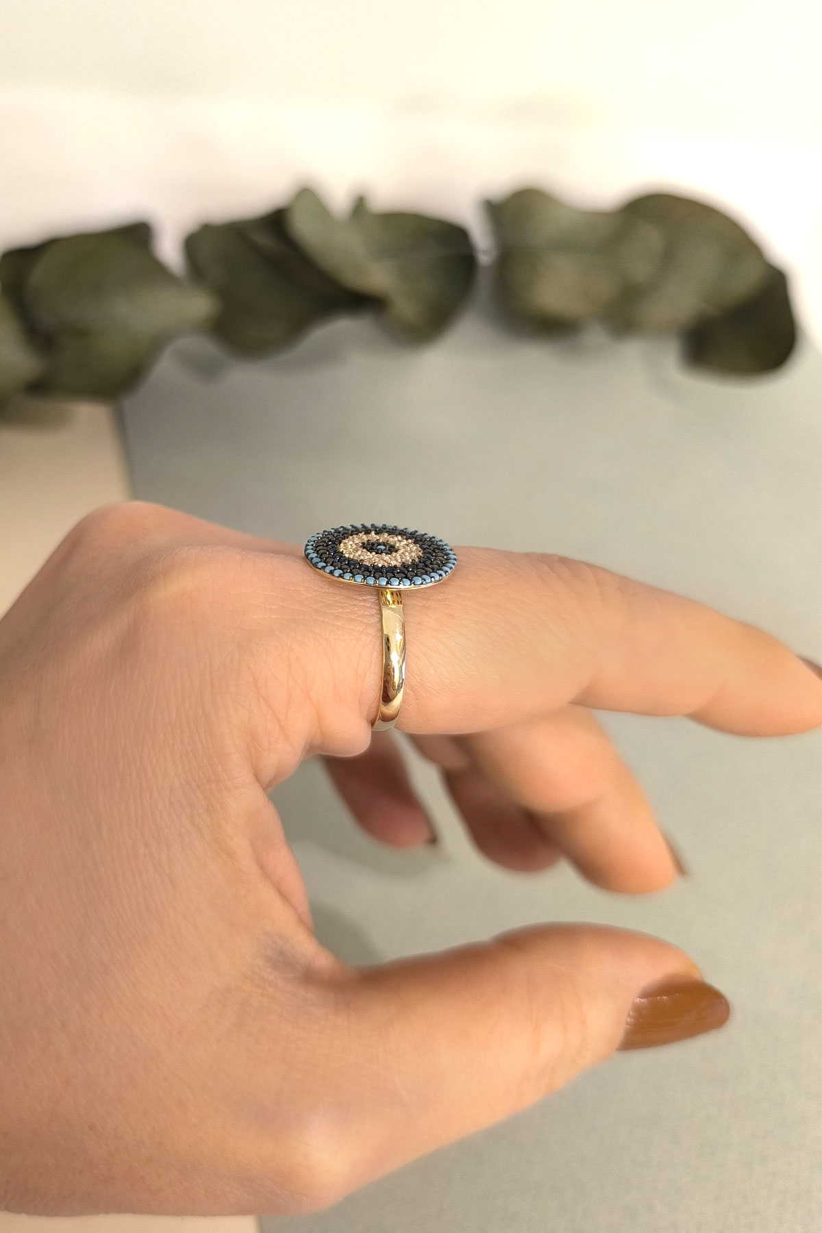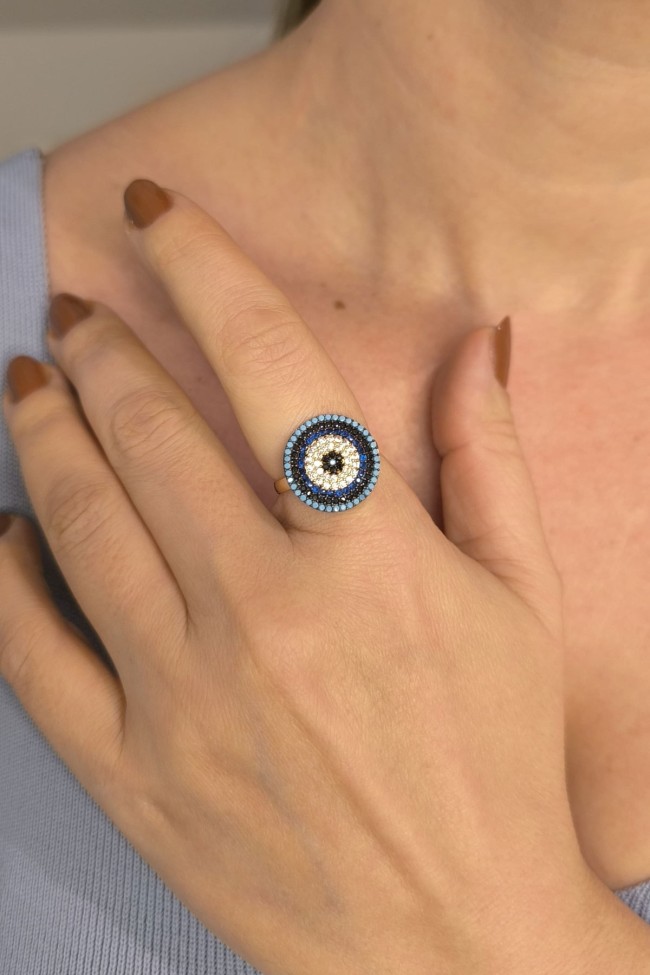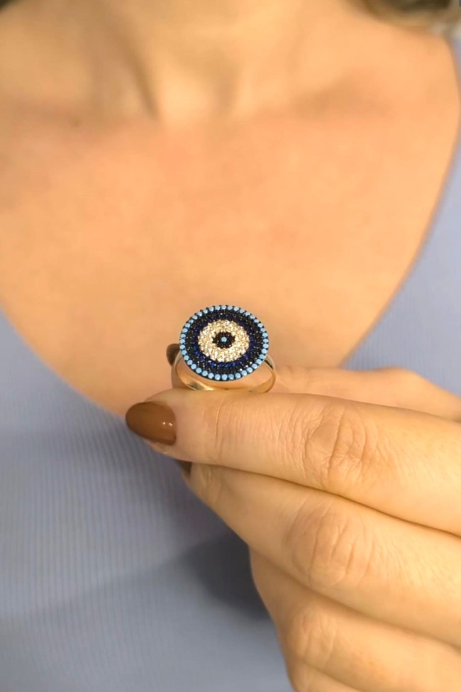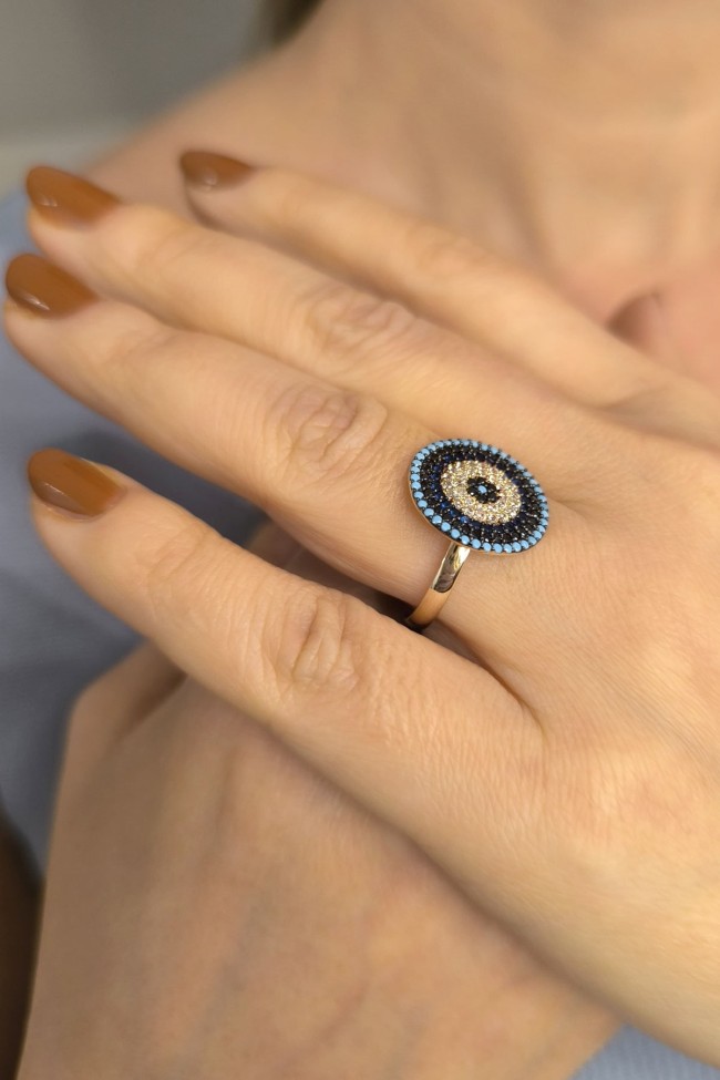 2.80 Gram Ağırlığında Nazar Boncuk Tasarımıyla Oldukça Şık Bir Duruşa Sahip 14 Ayar Altın Zirkon Taşlı Spor Yüzük.