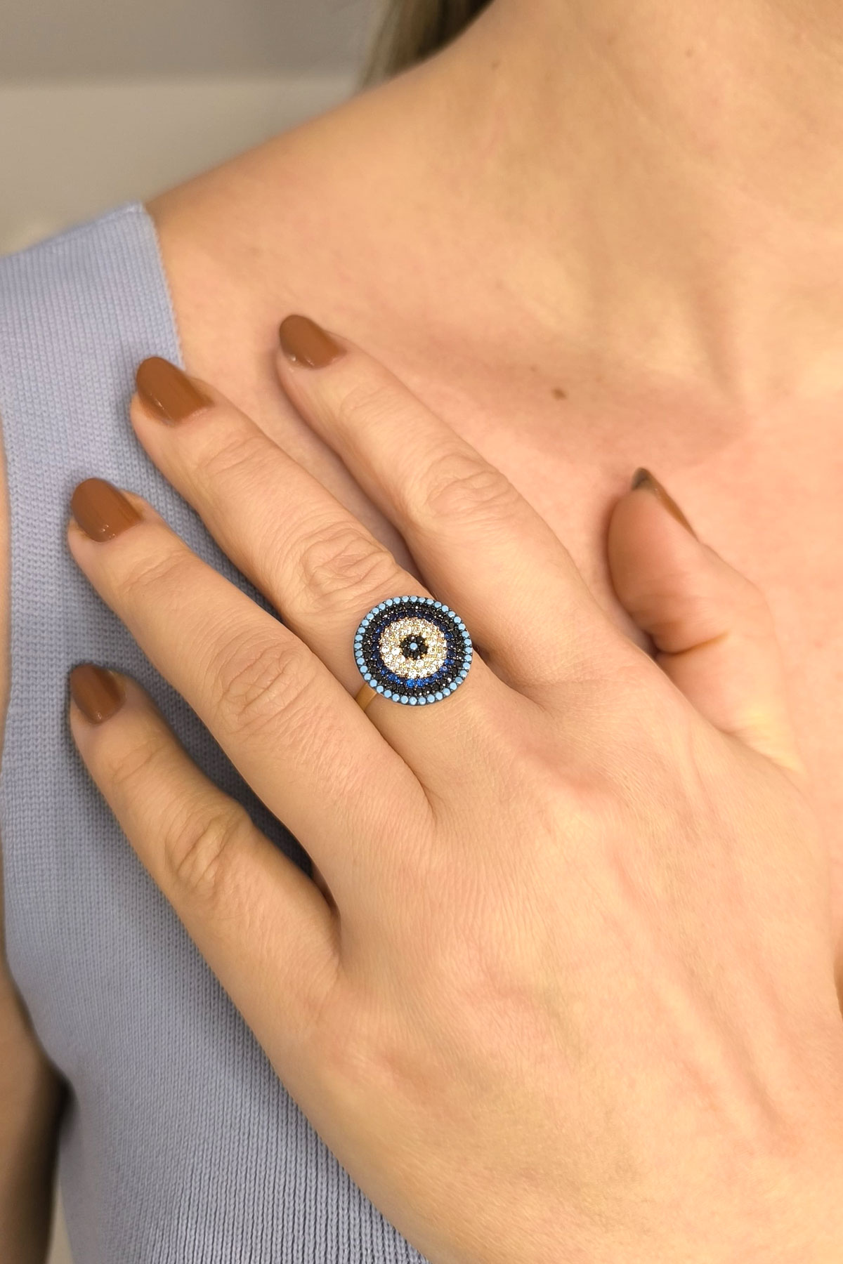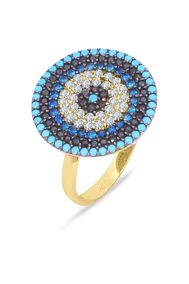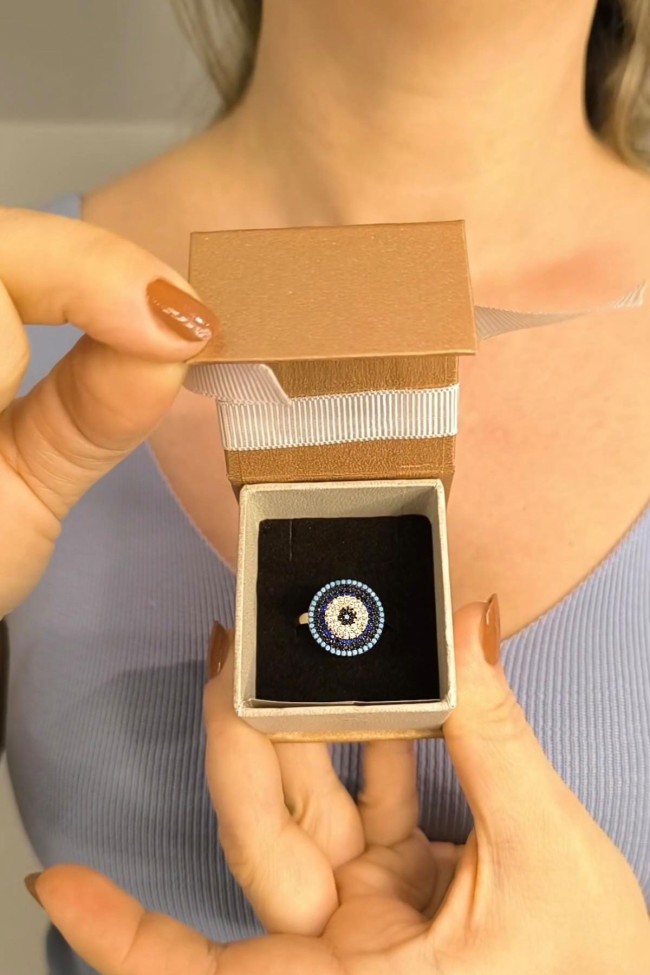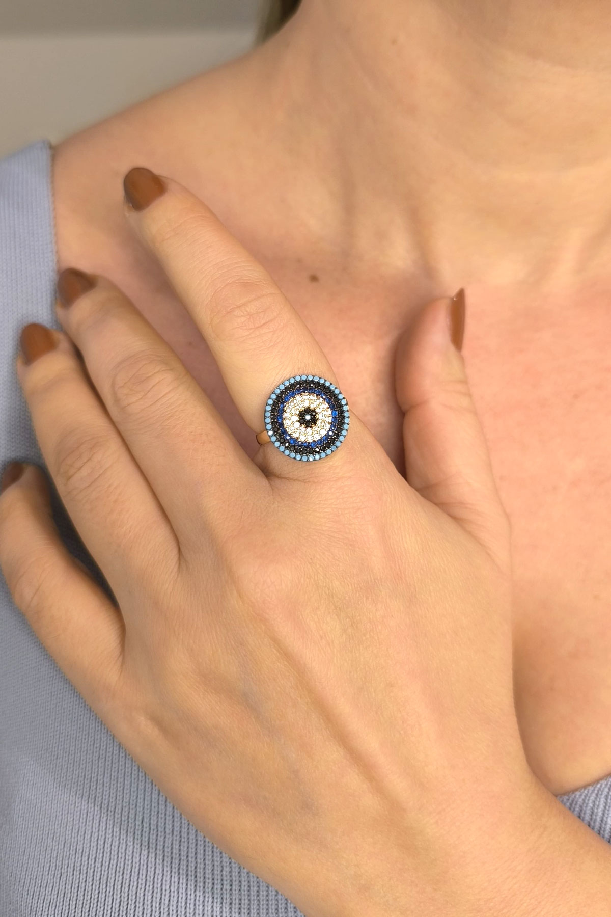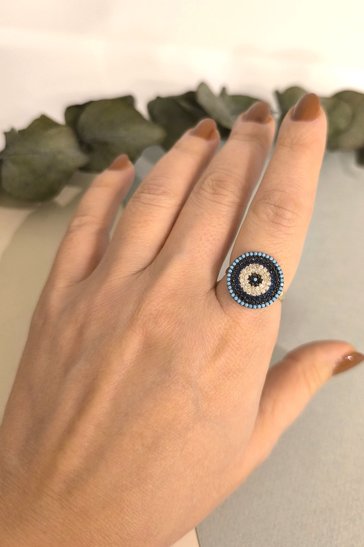 2.80 Gram Ağırlığında Nazar Boncuk Tasarımıyla Oldukça Şık Bir Duruşa Sahip 14 Ayar Altın Zirkon Taşlı Spor Yüzük.
