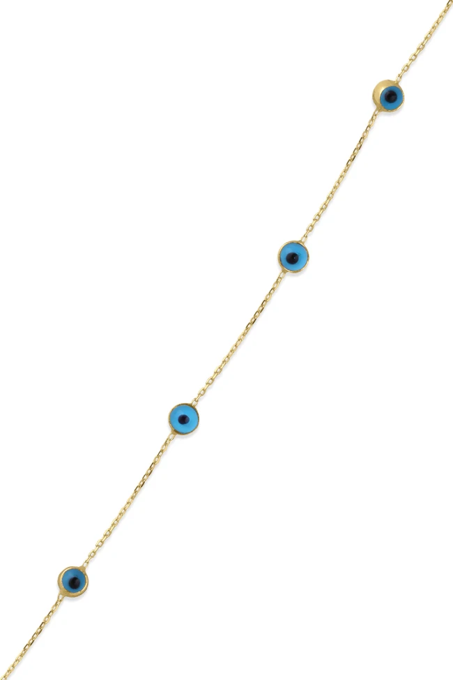 Spor Ve Günlük Kullanıma Uygun 19 Cm Boyunda  Işıl Işıl 2.00 Gr. Ağırlığında Altın Nazar Boncuklu Minimal Tasarım Hediyelik Bileklik.