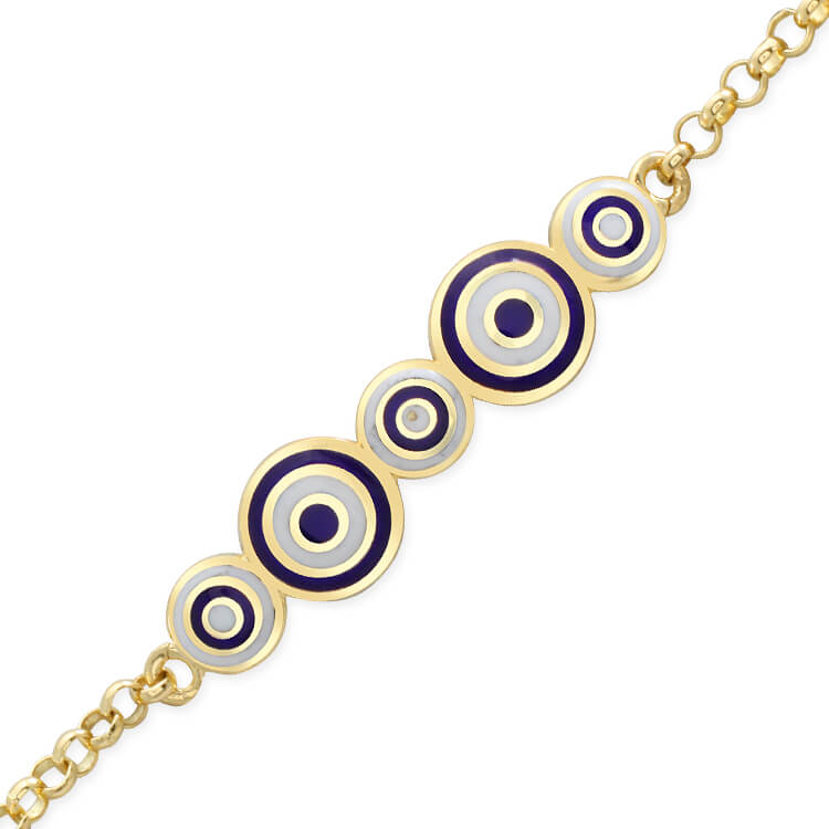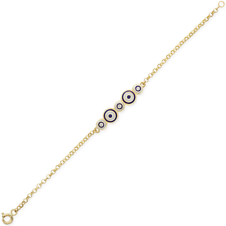 15 Cm boyunda günlük olarak da kullanıma uygun halka zincirli 14 ayar 2.25 gr ağırlığında altın nazar boncuğu detaylı çocuk bilekliği.
