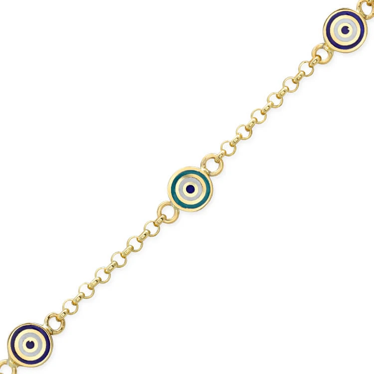 15 Cm boyunda günlük olarak da kullanıma uygun halka zincirli 14 ayar 2.5 gr ağırlığında altın nazar detaylı çocuk bilekliği.