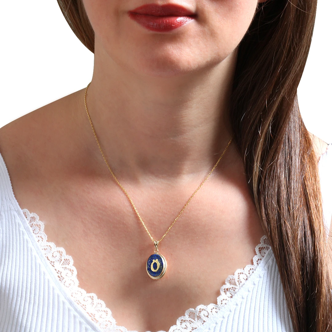 Lapis, lazunili diğer adı lacivert taşı üzerinde harfli trend sezon modası Ö harfi kolyeyi günlük olarak takabilirsiniz. Lapis taşı bir çeşit bakır cevheridir, kristal yapısı birbirine dik ama farklı uzunlukta eksenlere sahiptir. İçerisinde gece gökyüzüne dağılmış yıldızlar gibi altın rengi prit parçaları bulunur, evrenin gücünü ve enerjisini alıp beynimize yönlendirir.