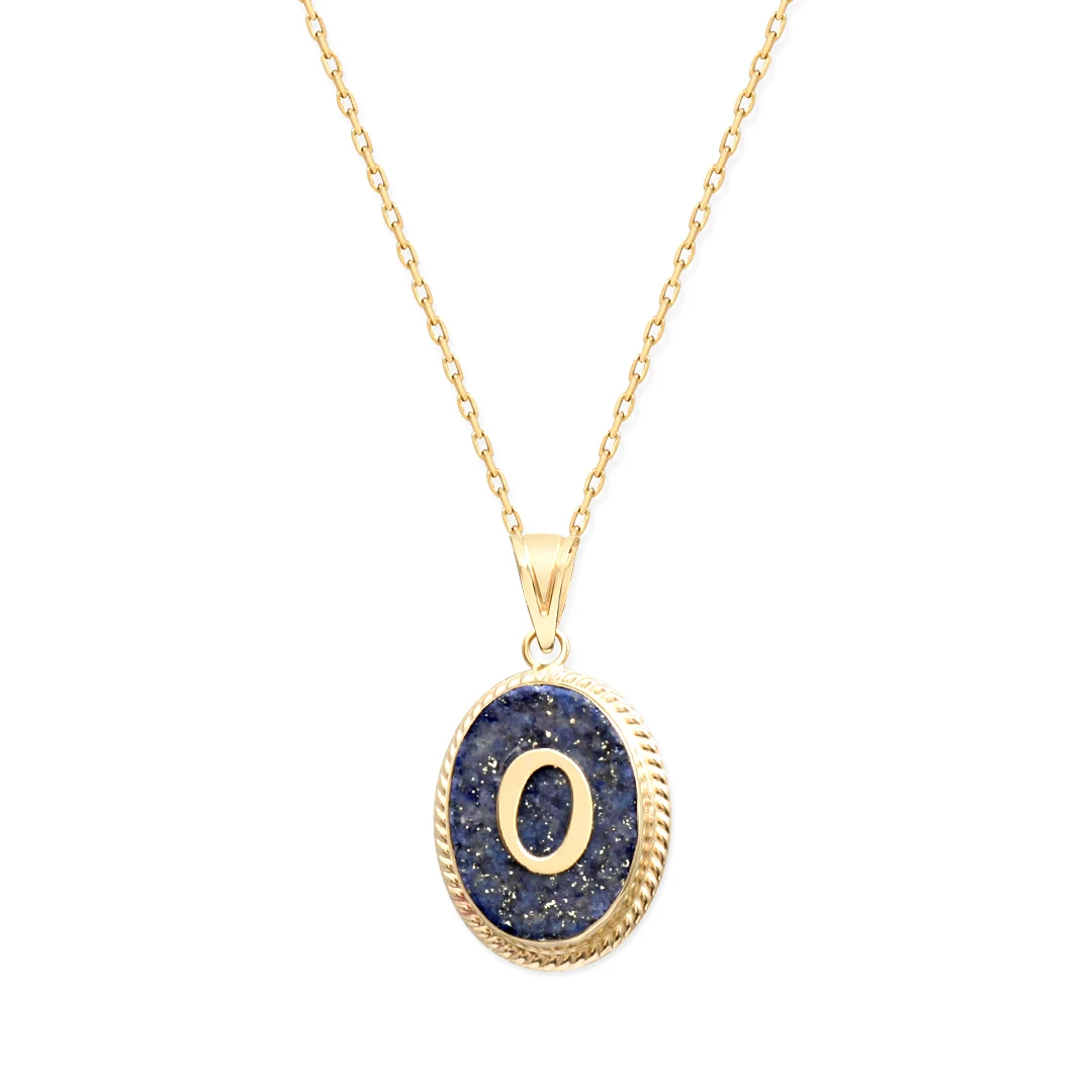 Lapis, lazunili diğer adı lacivert taşı üzerinde harfli trend sezon modası O harfi kolyeyi günlük olarak takabilirsiniz. Lapis taşı bir çeşit bakır cevheridir, kristal yapısı birbirine dik ama farklı uzunlukta eksenlere sahiptir. İçerisinde gece gökyüzüne dağılmış yıldızlar gibi altın rengi prit parçaları bulunur, evrenin gücünü ve enerjisini alıp beynimize yönlendirir.