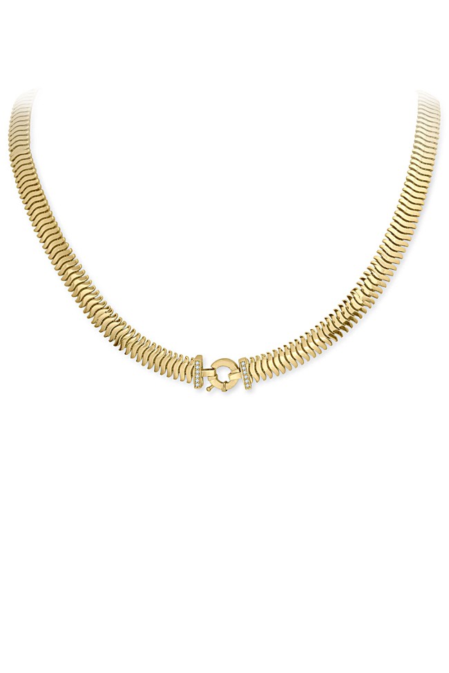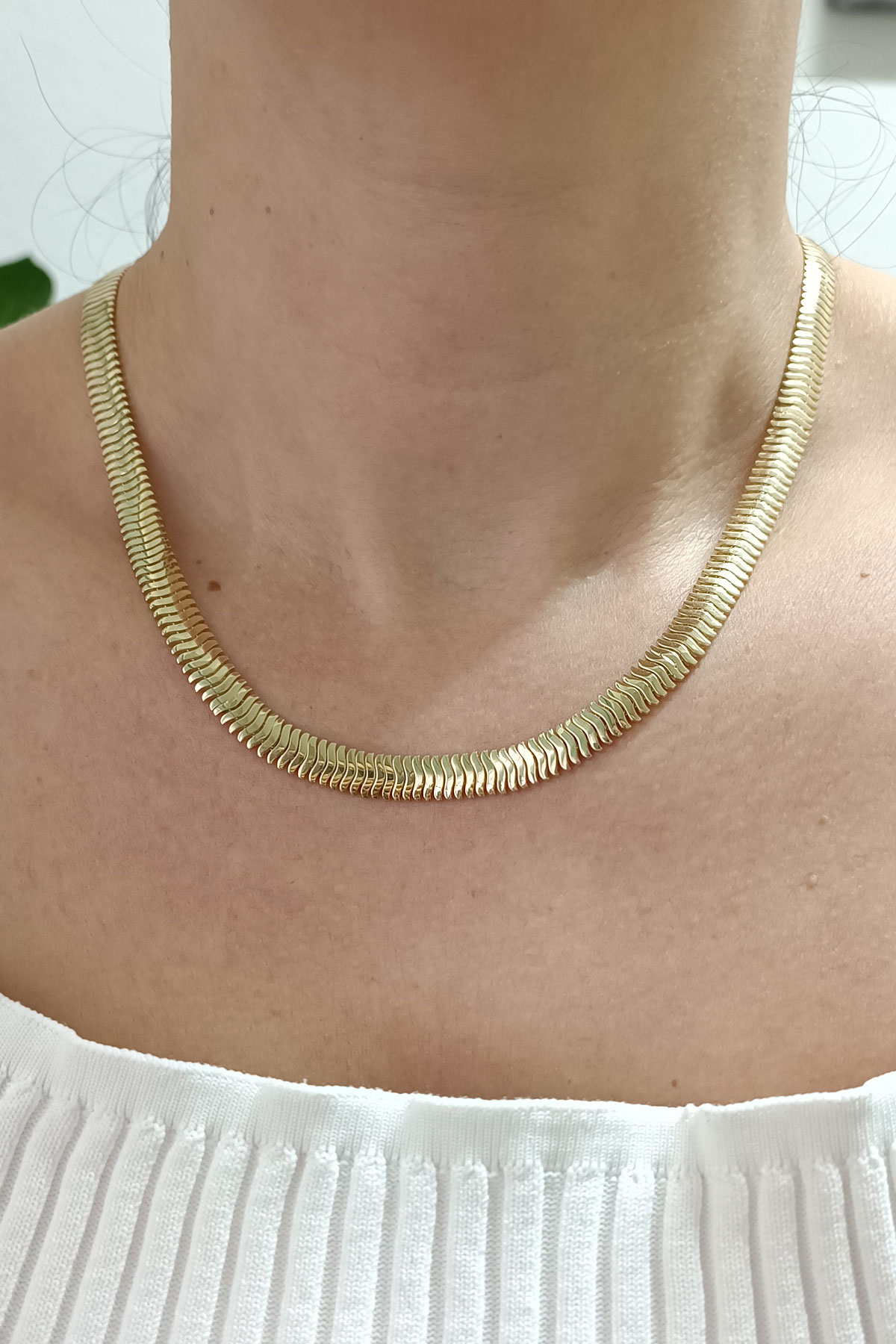 14 Ayar geniş şık ve modern tasarım günlük kullanıma uygun taşsız ışıl ışıl özel taş detay tokalı kilidi ile oldukça iddialı bir model 21.70 gram ağırlığında altın omega gerdanlık & kolye.