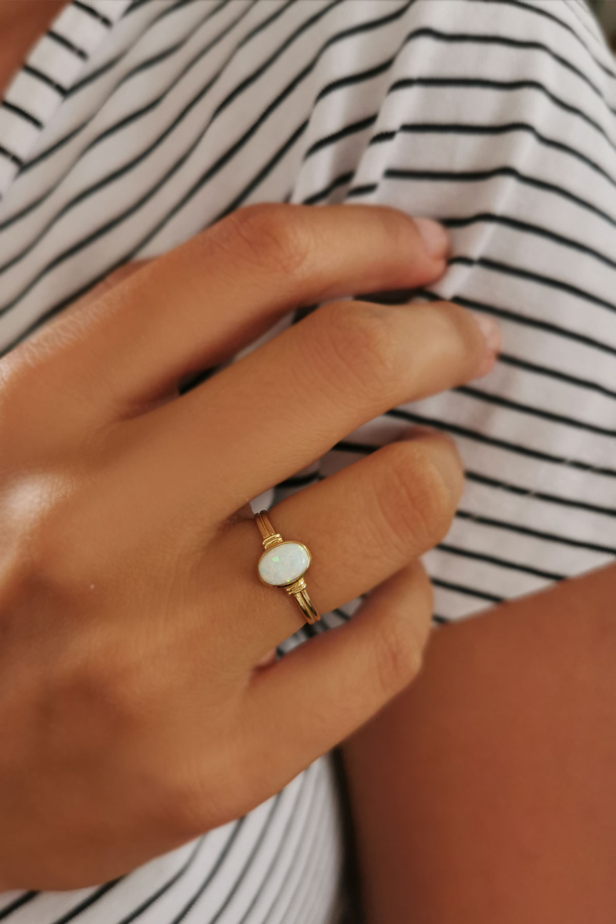 Dilediğiniz parmağınızda farklı yüzüklerinizle bir arada kullanabileceğiniz tüm gün gözleri sadeliği ile üzerine toplayacak modern ve kullanışlı bir model. Terazi burcunun taşı olan opal taşı sevgi umut ve şefkati simgeler. Kişide öz güveni arttırması ve kendini daha iyi ifade edebilme özelliklerini taşır.