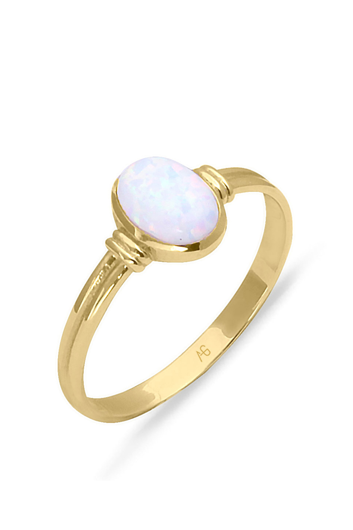 1.30 Gram Ağırlığında Opal TaşDetaylı Günlük Kullanıma Uygun 14 Ayar Altın Sade Yüzük.