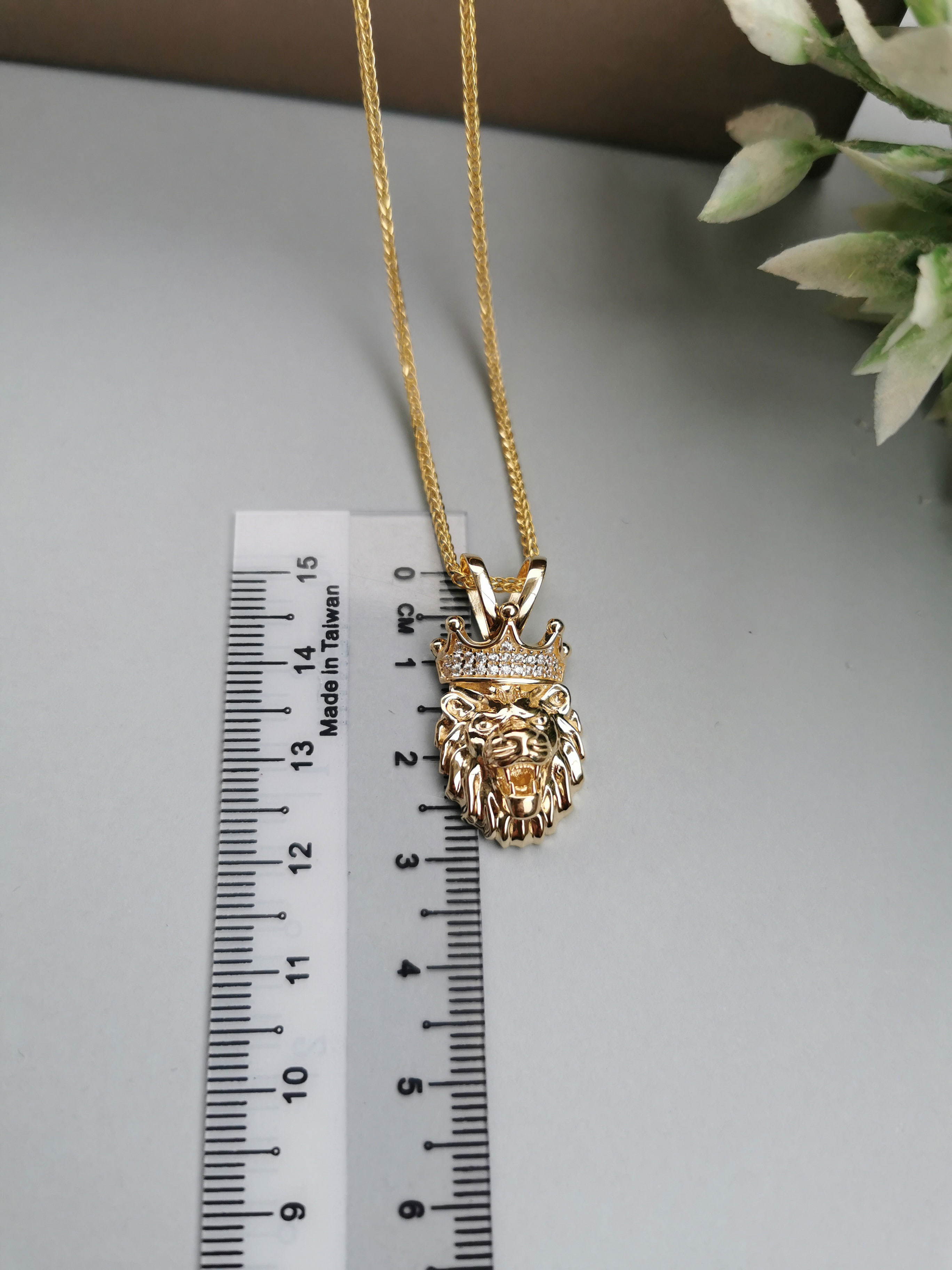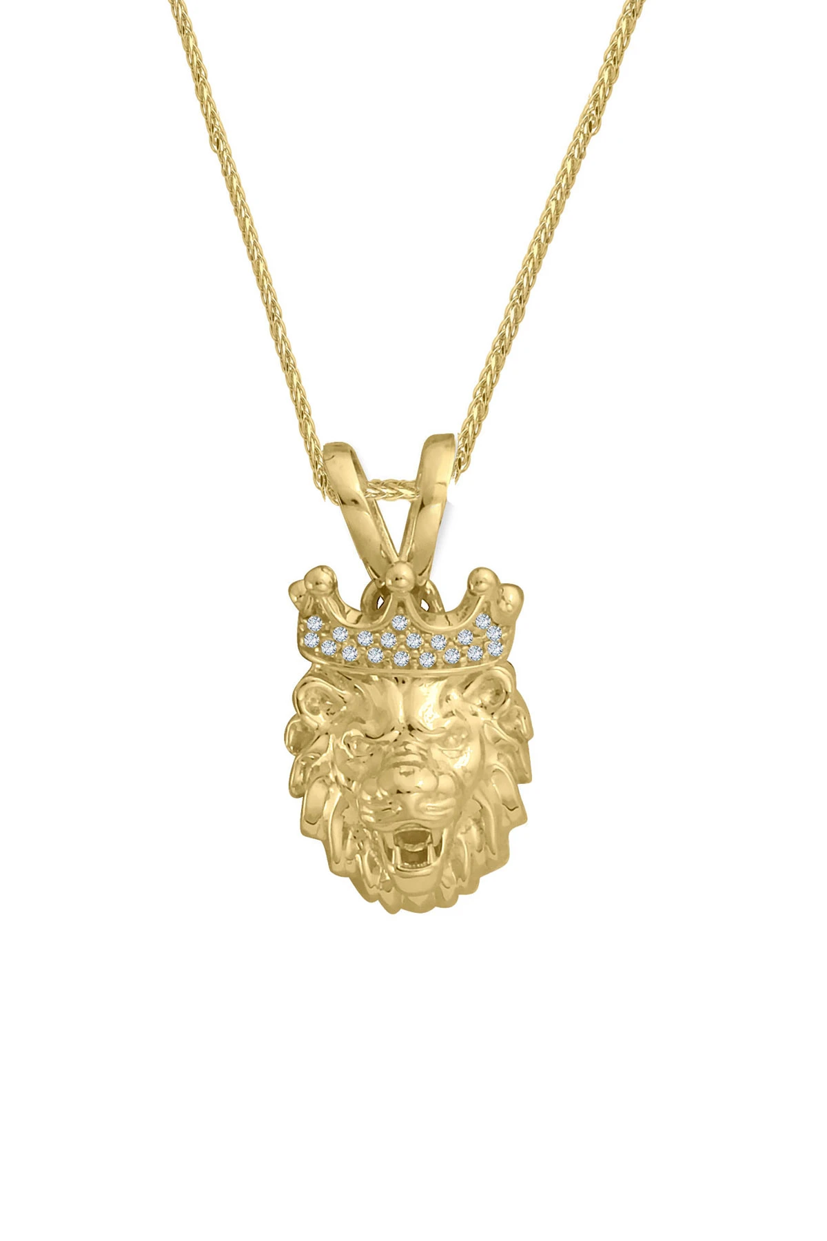 Modern Şehirli Tarz 60 Cm Boyunda Spiga Zinciri İle Oldukça Şık Bir Modele Sahip 7.00 Gr. Ağırlığında 14 Ayar Altın Beyaz Zirkon Taşlı Aslan Erkek Kolye.