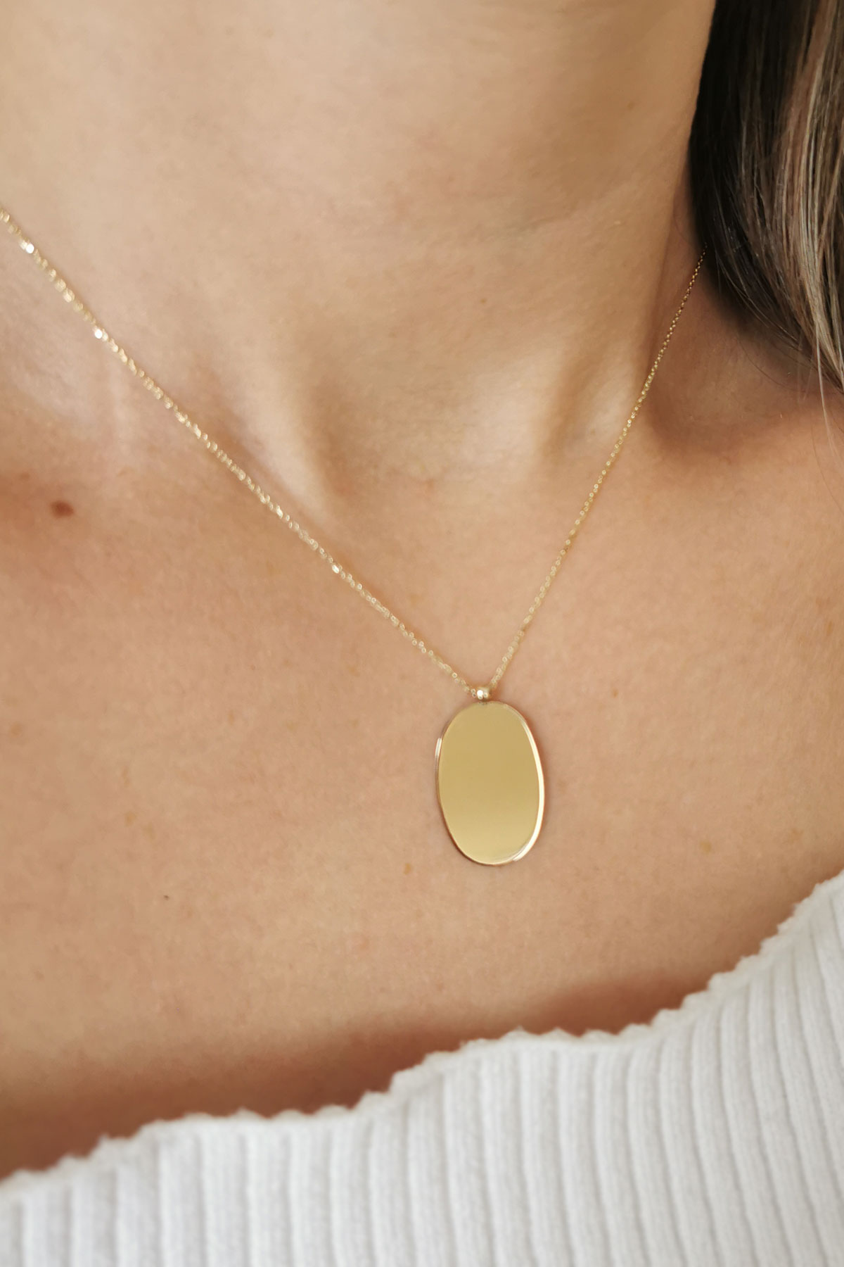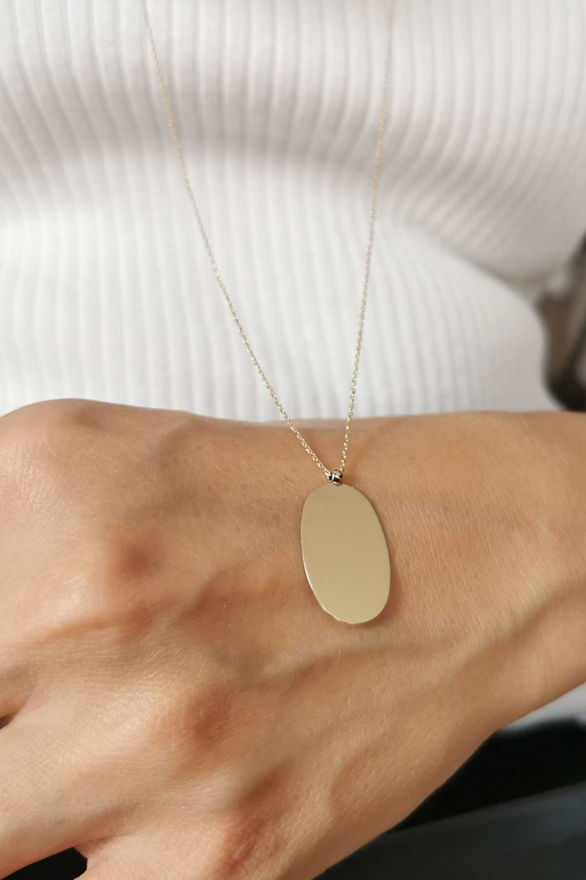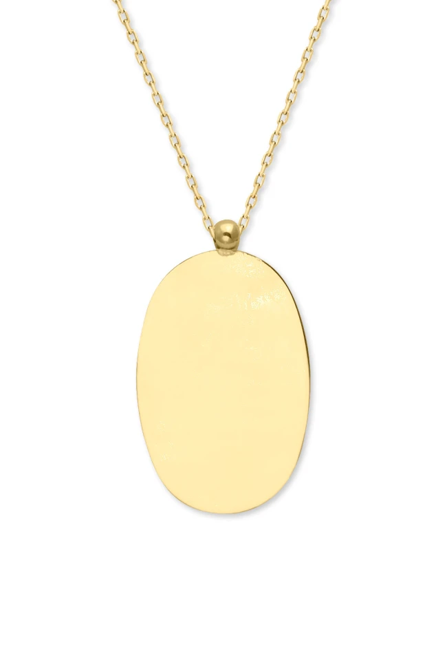 En 1.5 cm boy 2 cm boyutunda oval künye kolye ile ışıltınıza ve günlük stilinize renk katacak, farklı kolyelerinizle kombin olarak kullanmaya bayılacaksınız.