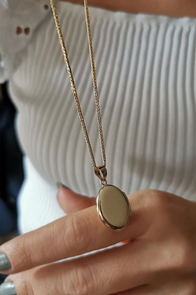 14 Ayar altın 5.90 gram ağırlığında şık ve gündelik kullanıma uygun 3 cm düz oval madalyon kolye.