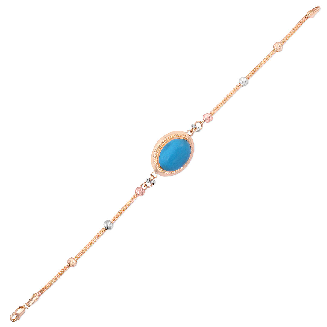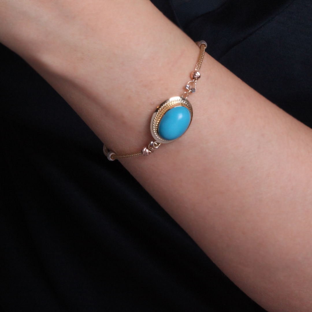 5.00 Gram Ağırlığında 14 Ayar Altın Firuze Taşlı Spor ve Günlük Kullanıma Uygun Model Yeni Sezon Bileklik.