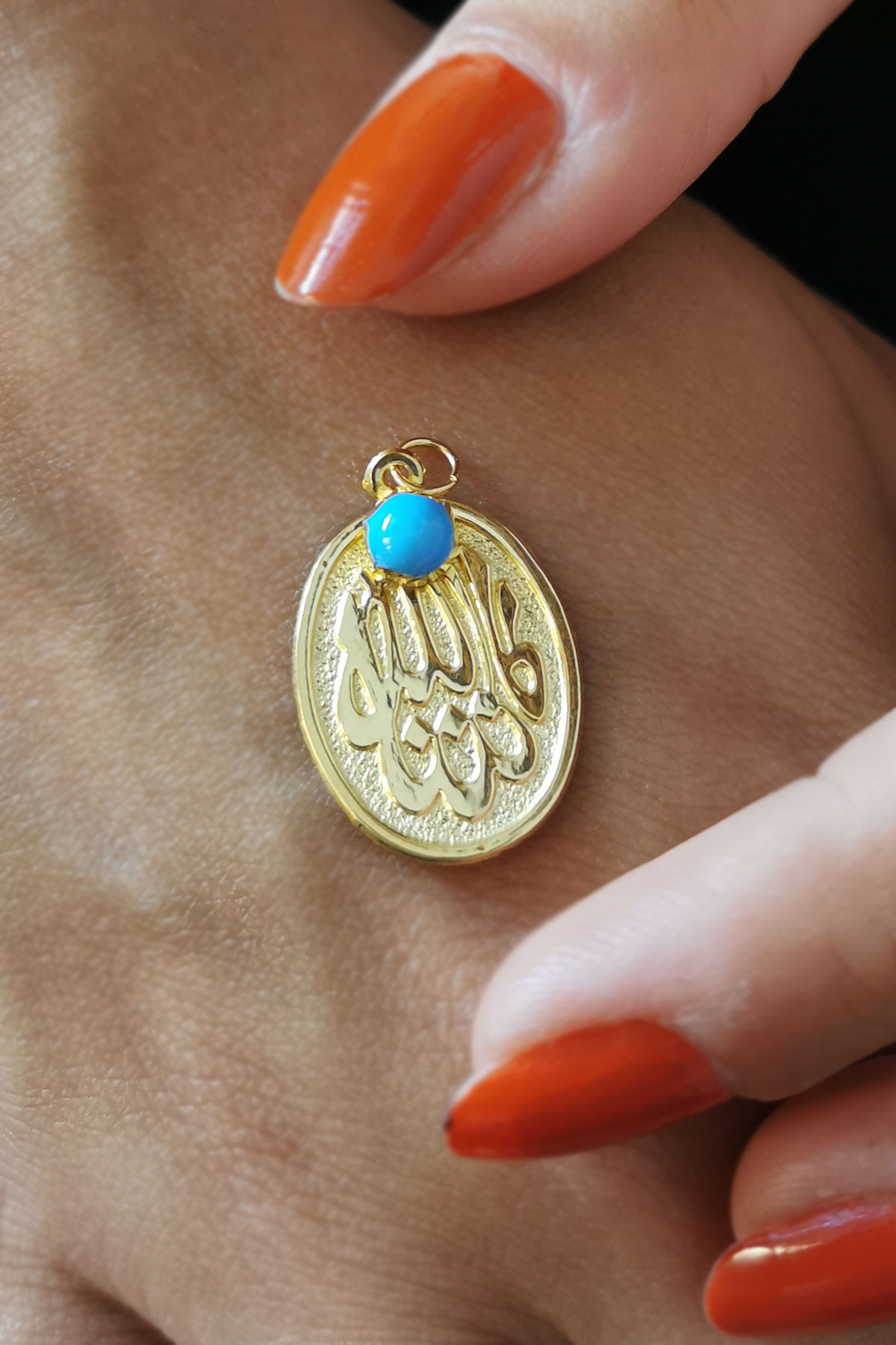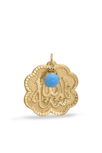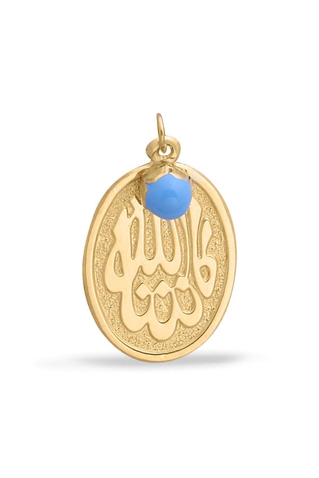 Yenidoğan bebeklerin iğne oyalı yüz örtülerine büyüdüklerinde de omuzlarına mini bir iğne ile takılan nostalji model 2.4 Cm boyunda yuvarlak kenarlı 14 ayar 0.70 gr ağırlığında Allah bebek altın nazarlık.