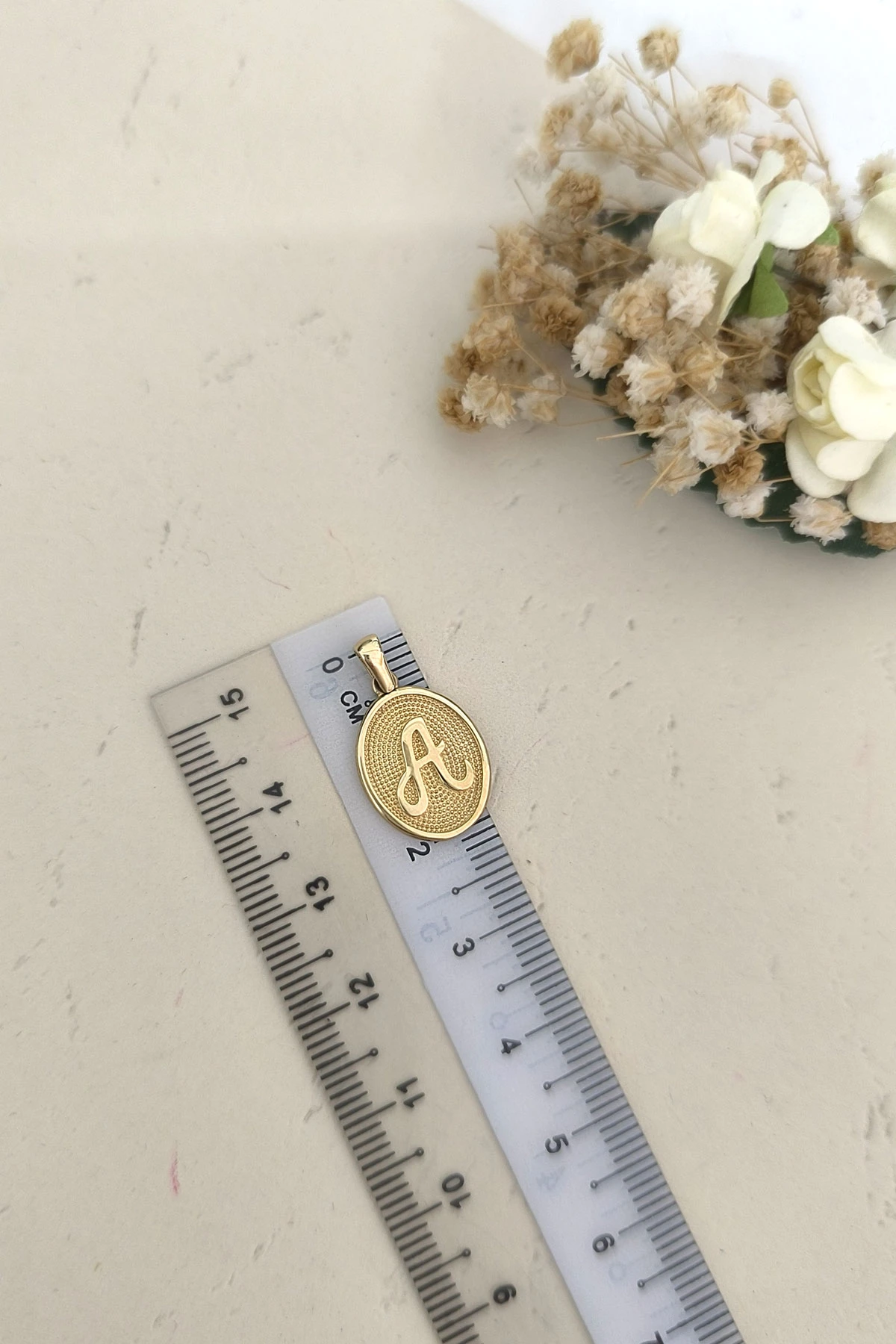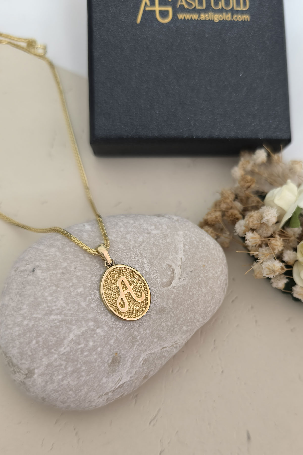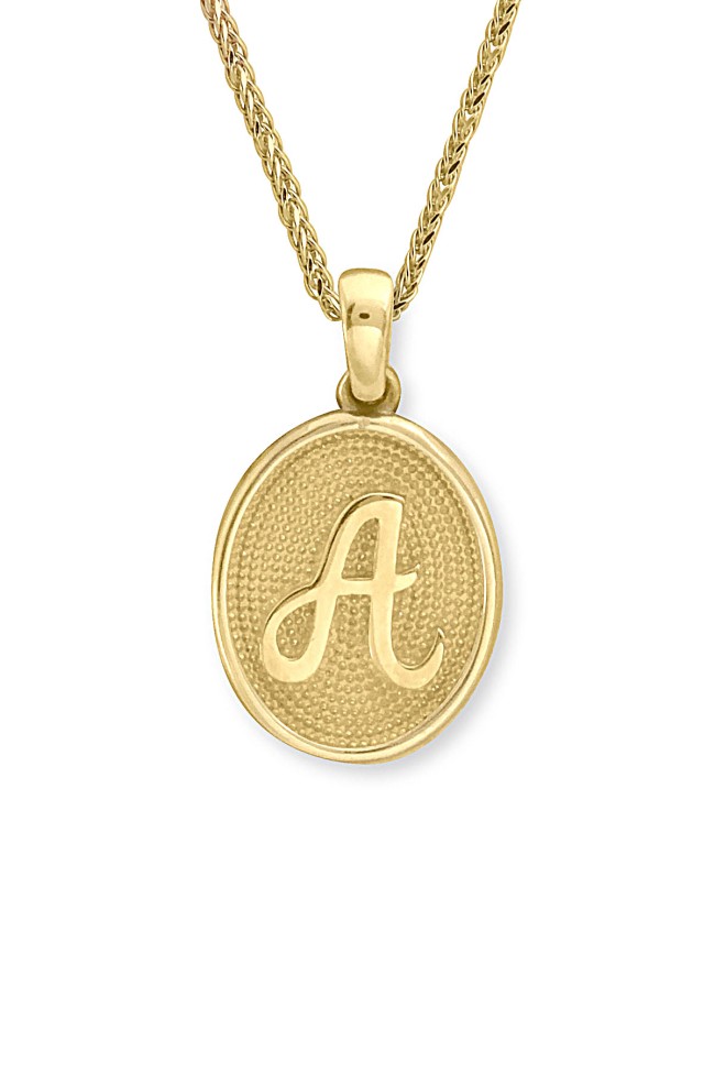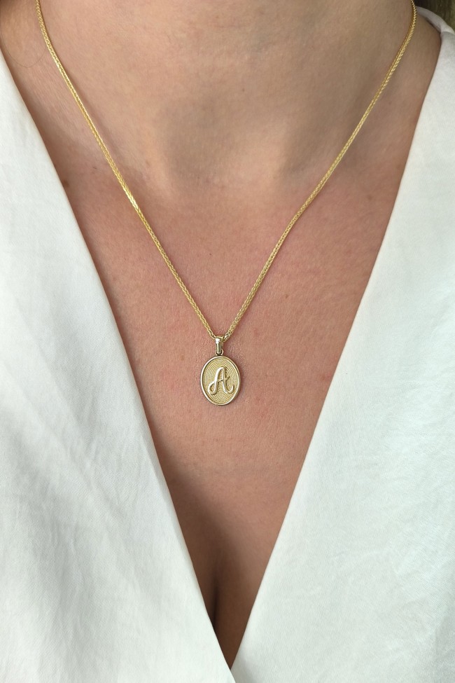 14 Ayar Altın Oval Spor Model A Harfi Tasarım Kolye.