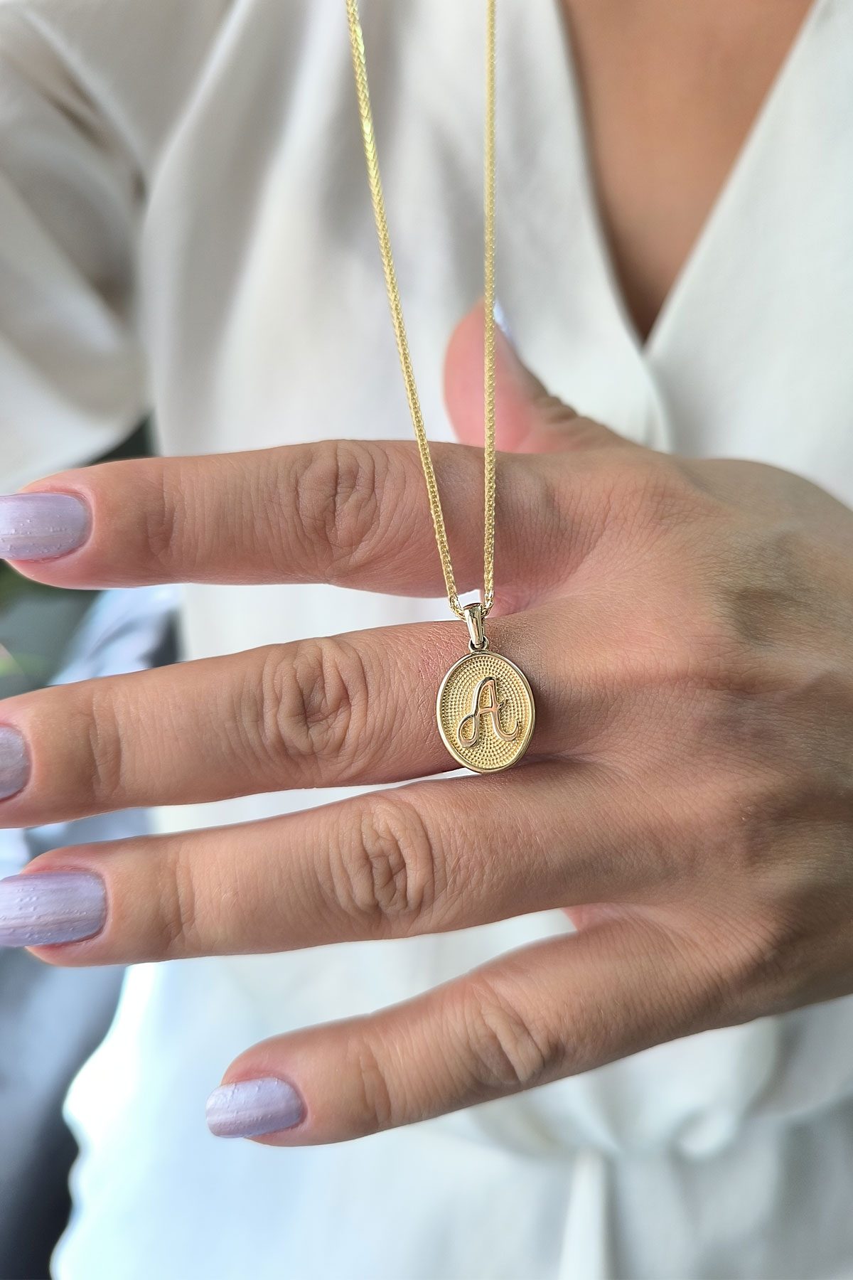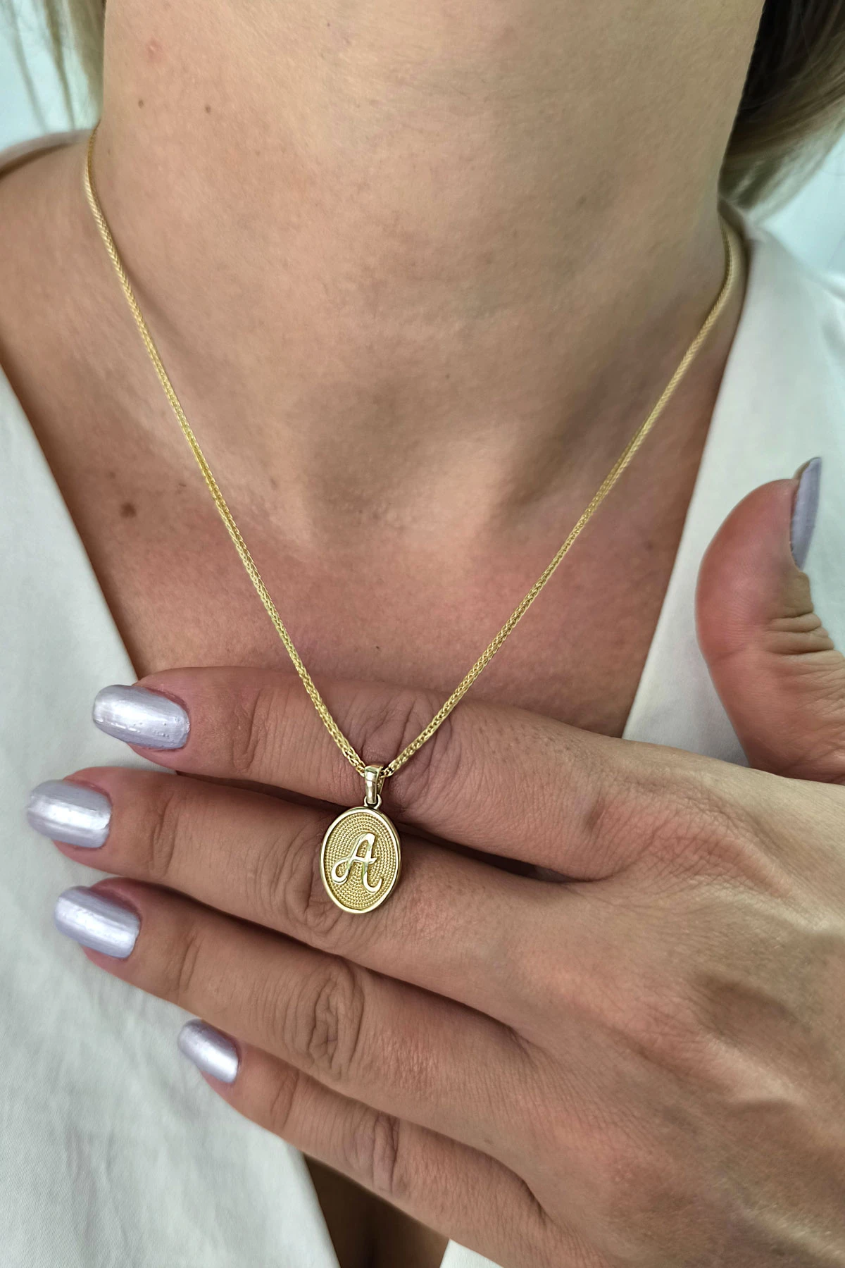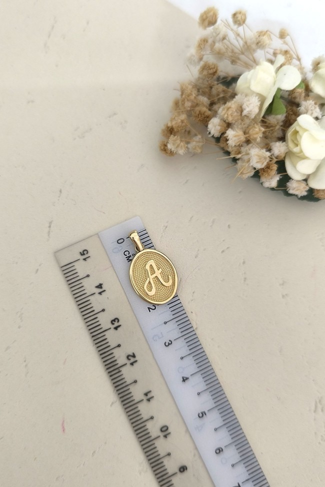 14 Ayar Altın Oval Spor Model A Harfi Tasarım Kolye Ucu.