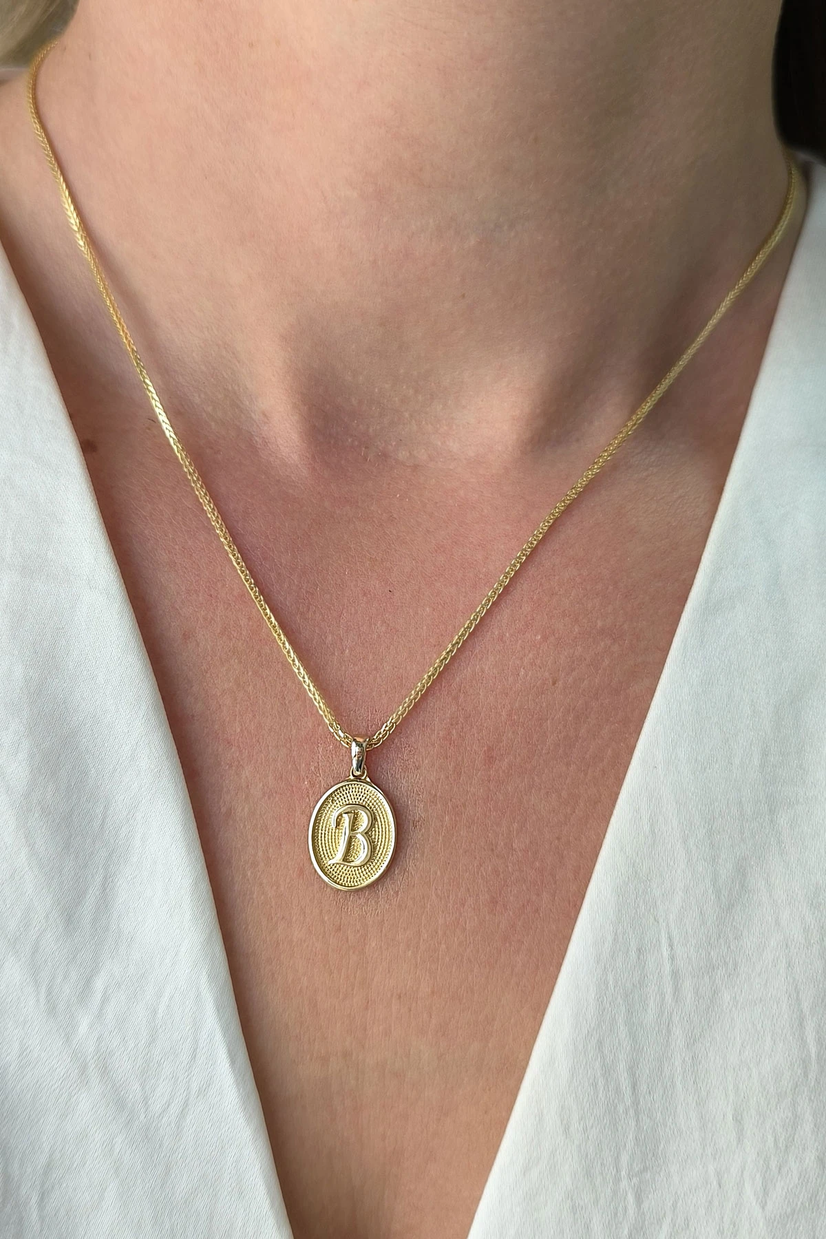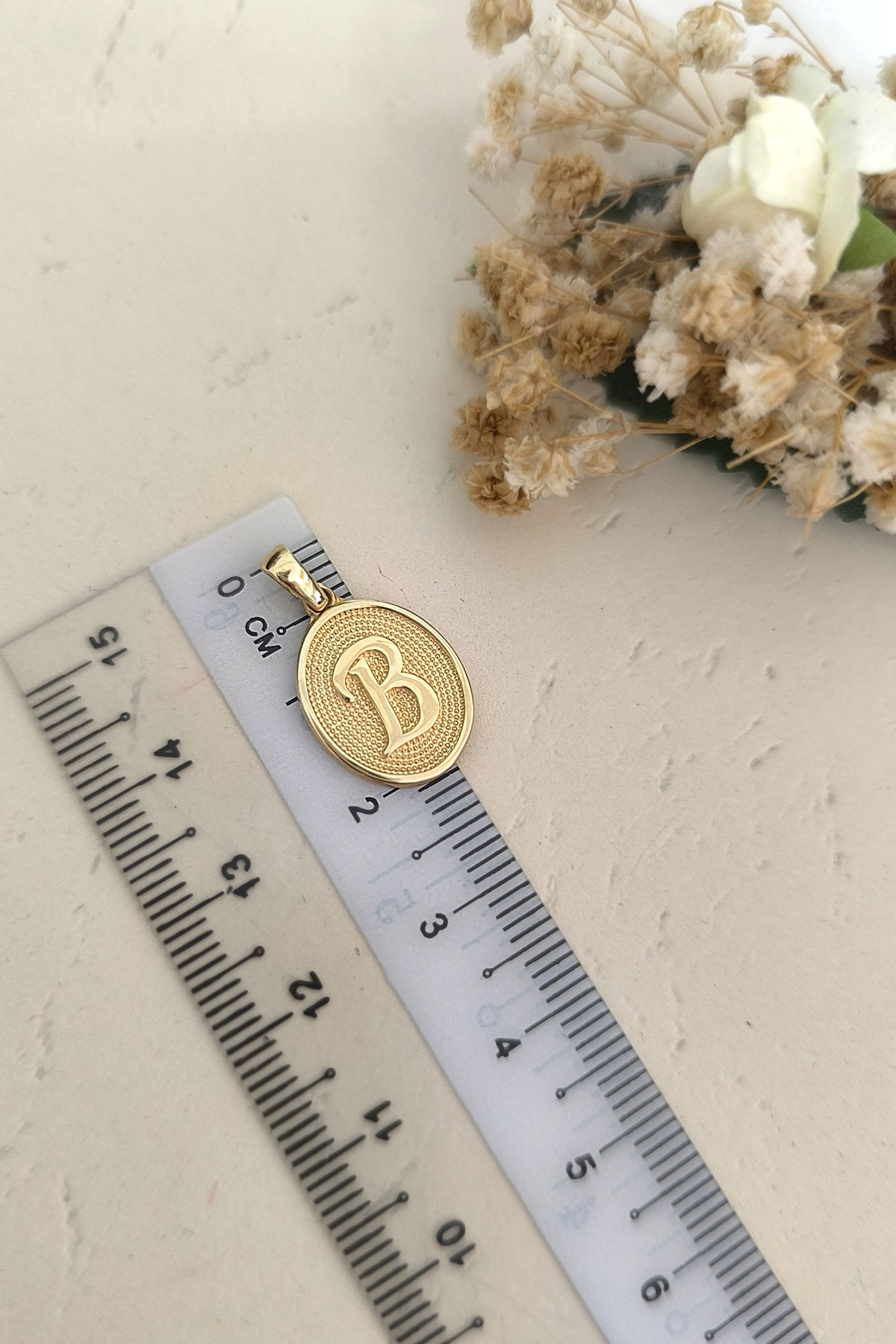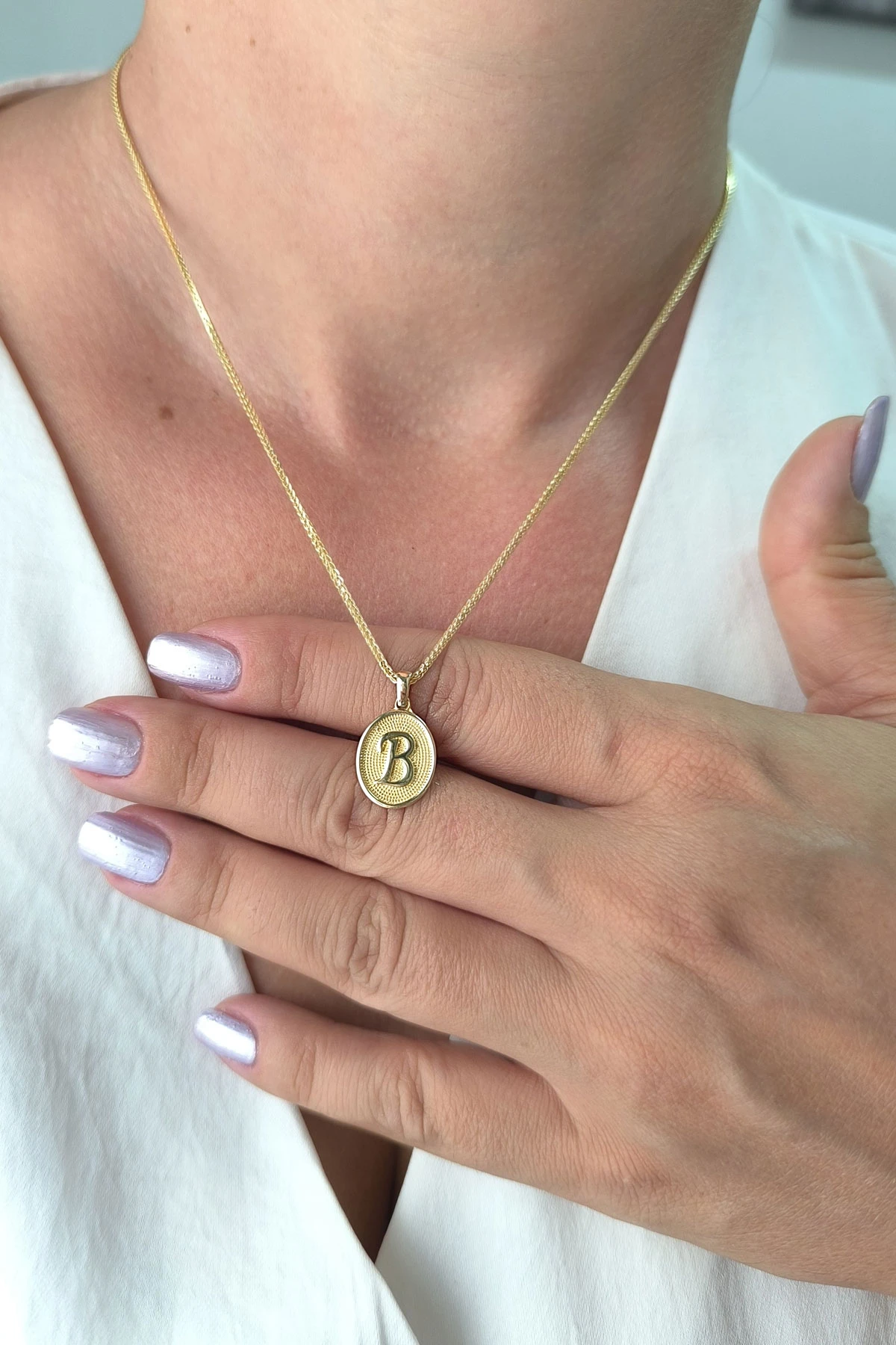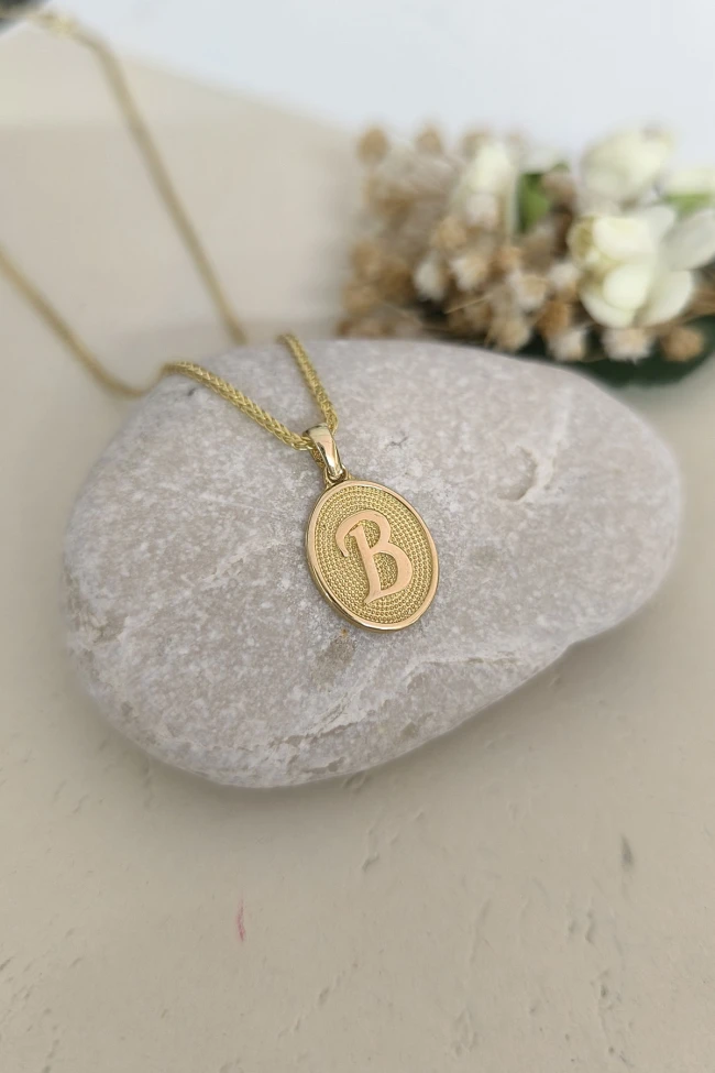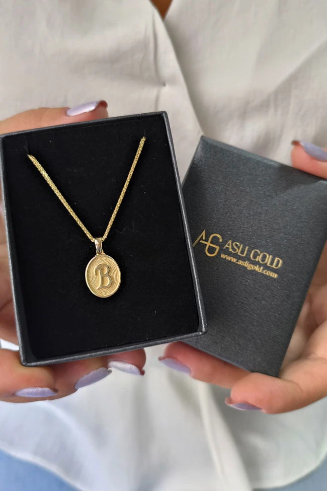 14 Ayar Altın Oval Spor Model B Harfi Tasarım Kolye.