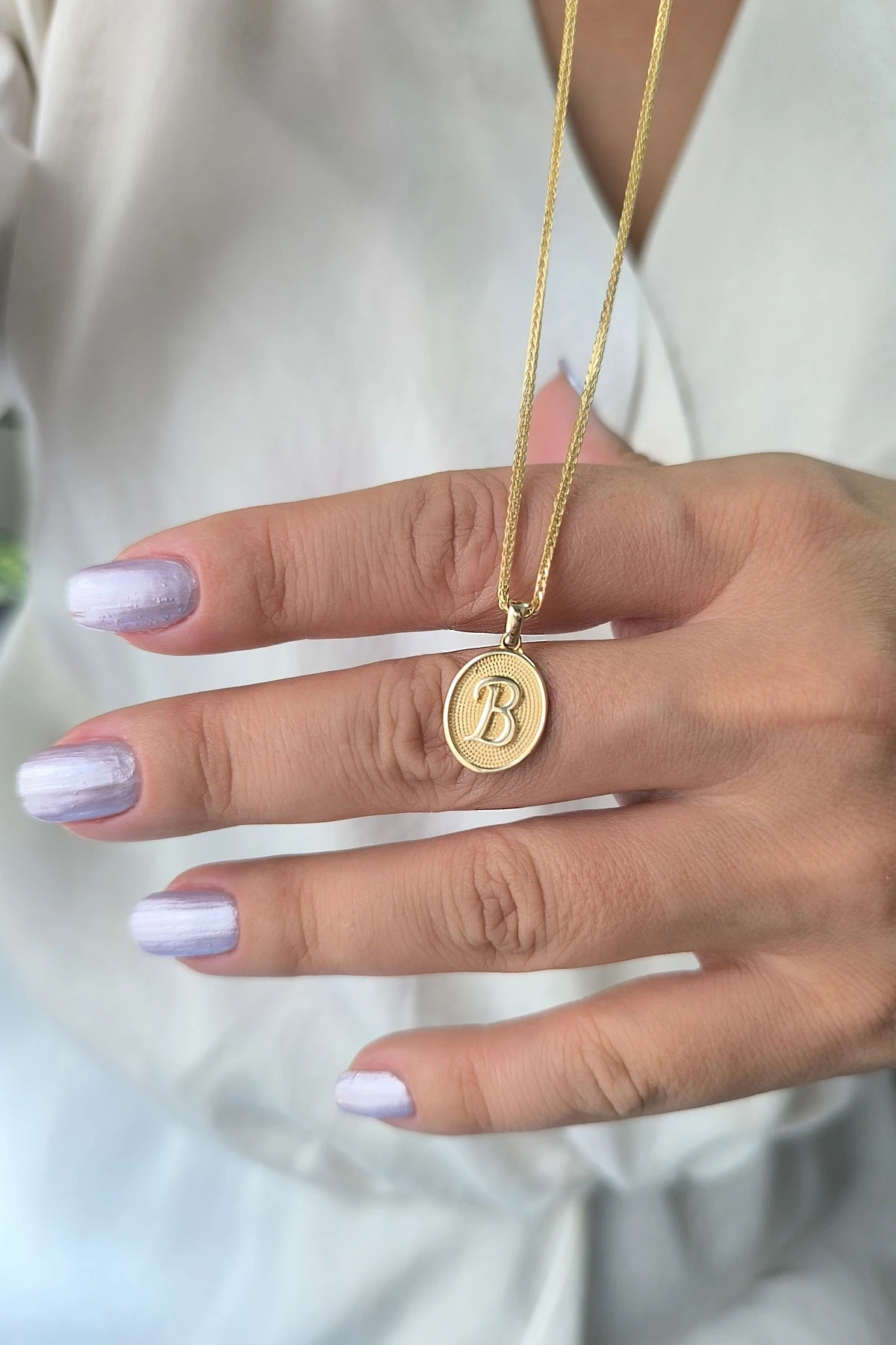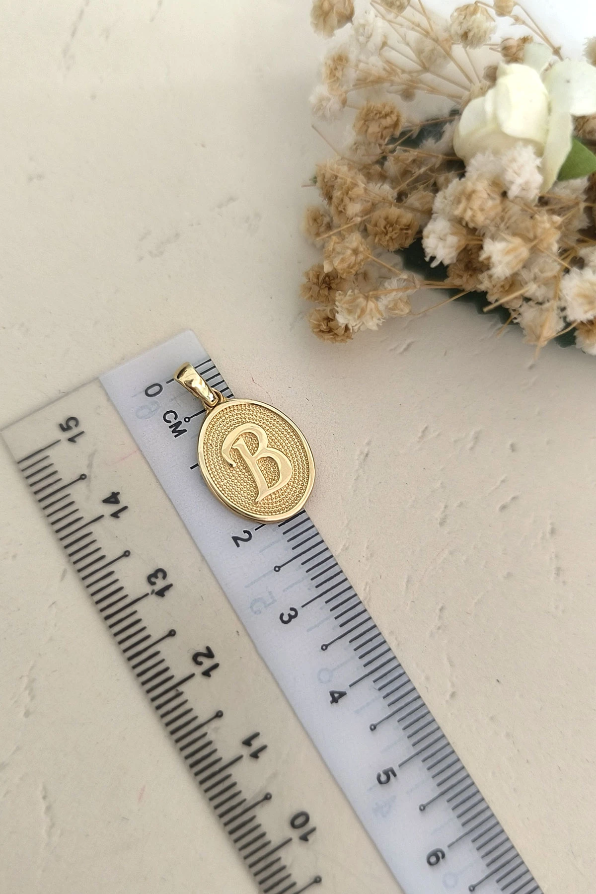 14 Ayar Altın Oval Spor Model B Harfi Tasarım Kolye Ucu.