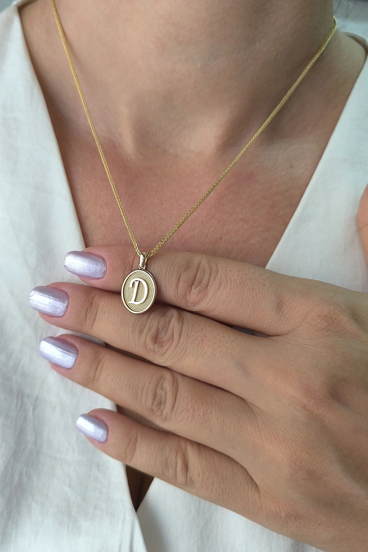 14 Ayar Altın Oval Spor Model D Harfi Tasarım Kolye Ucu.