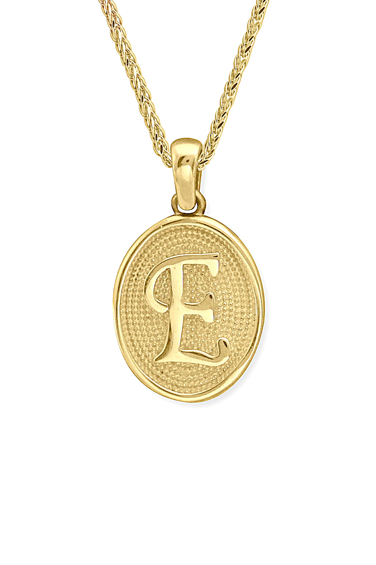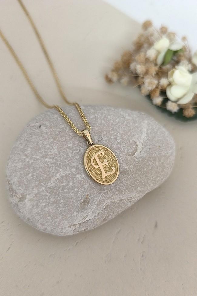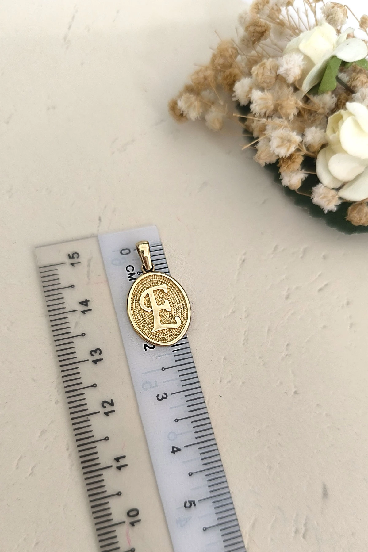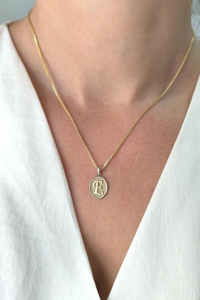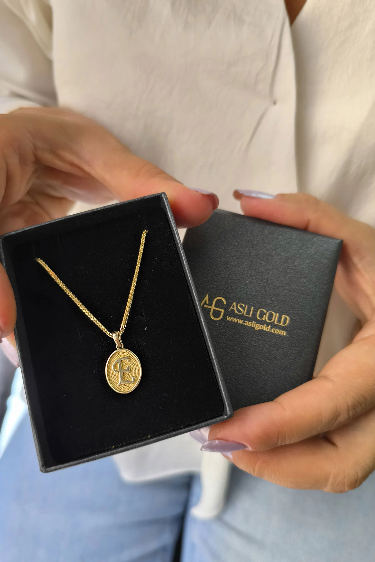 14 Ayar Altın Oval Spor Model E Harfi Tasarım Kolye.