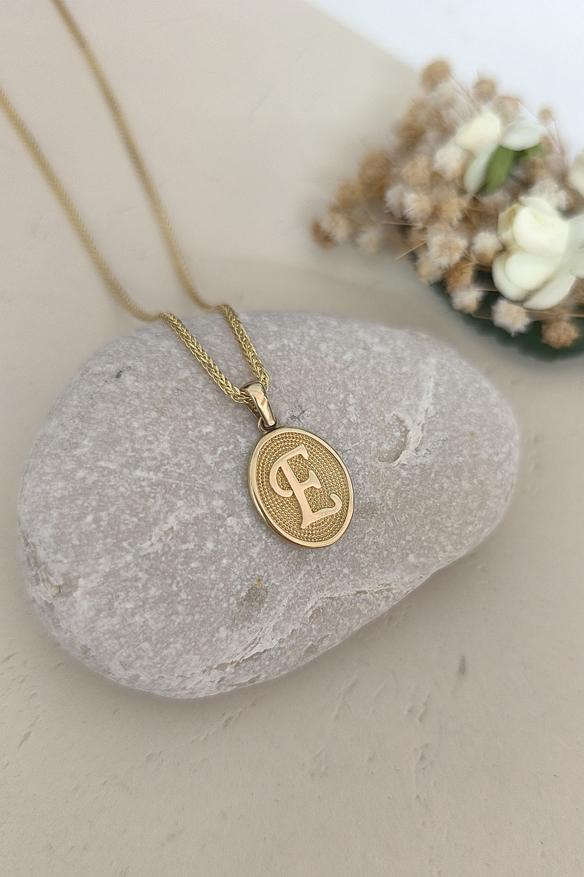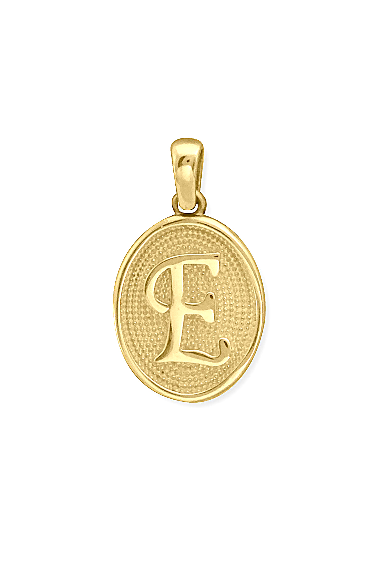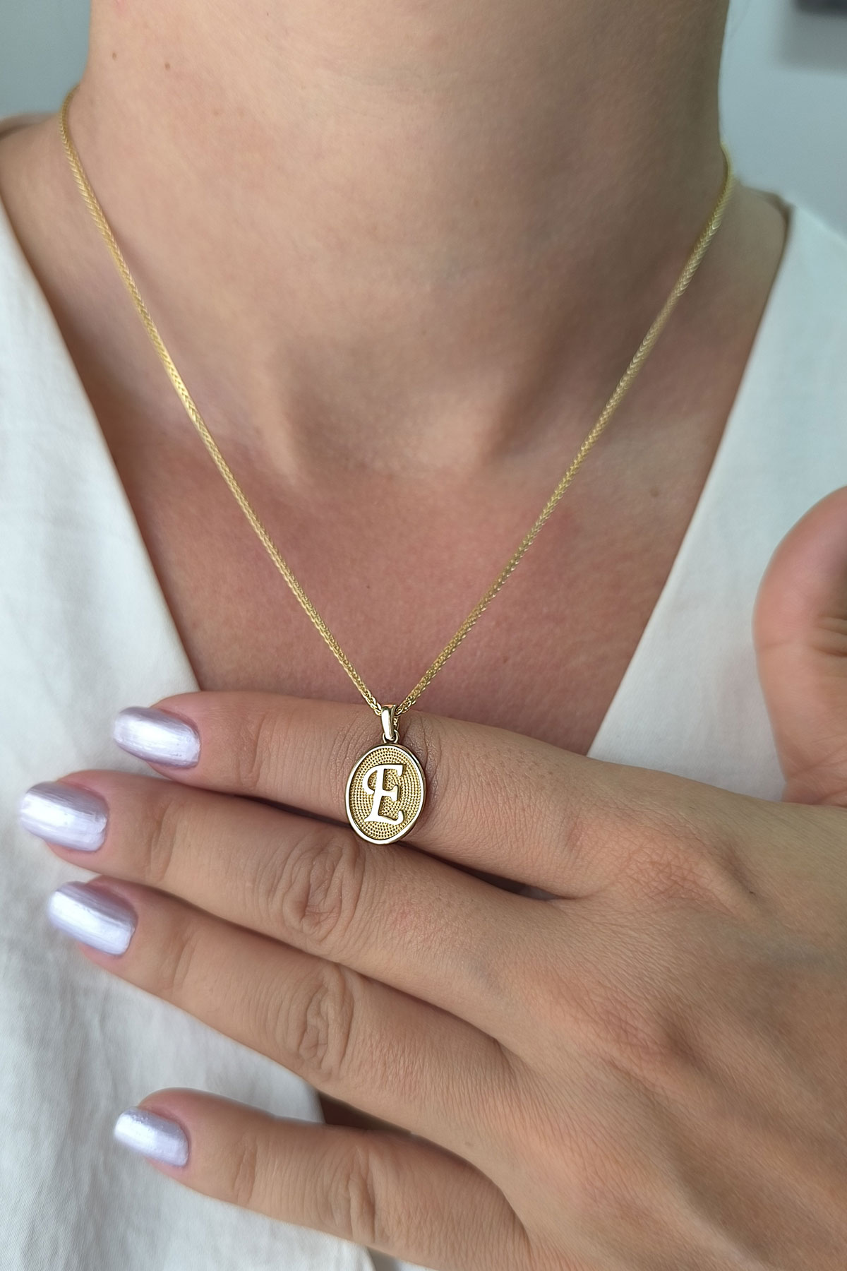 14 Ayar Altın Oval Spor Model E Harfi Tasarım Kolye Ucu.
