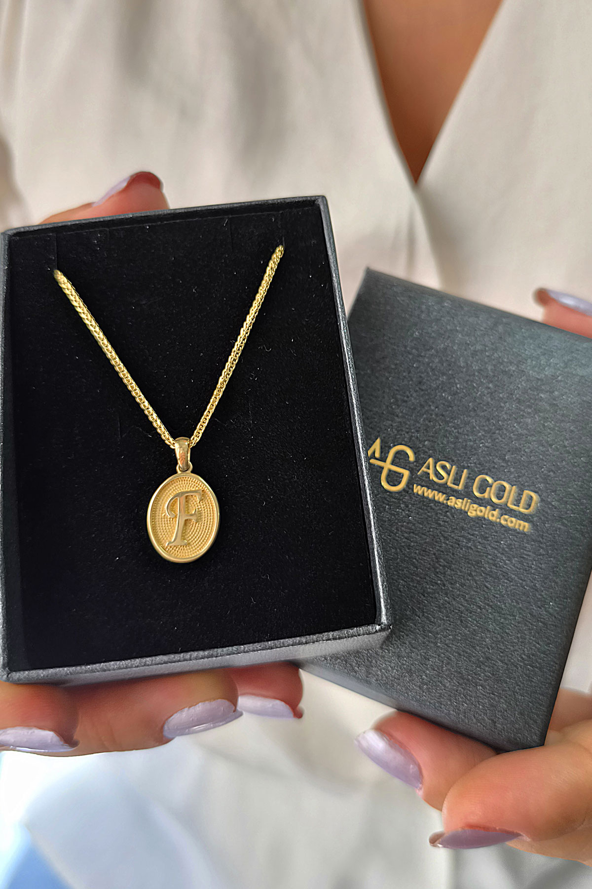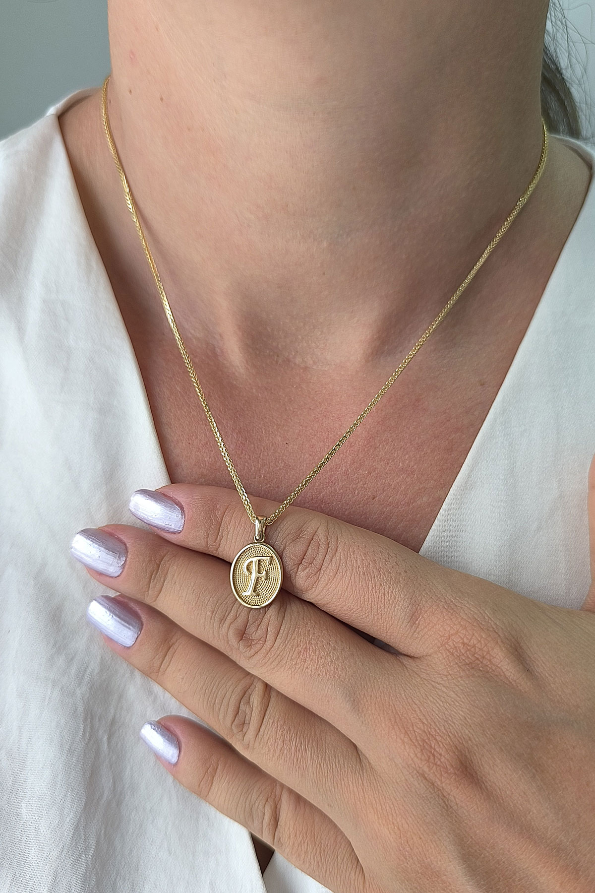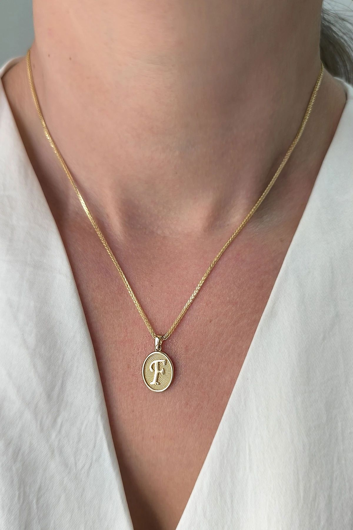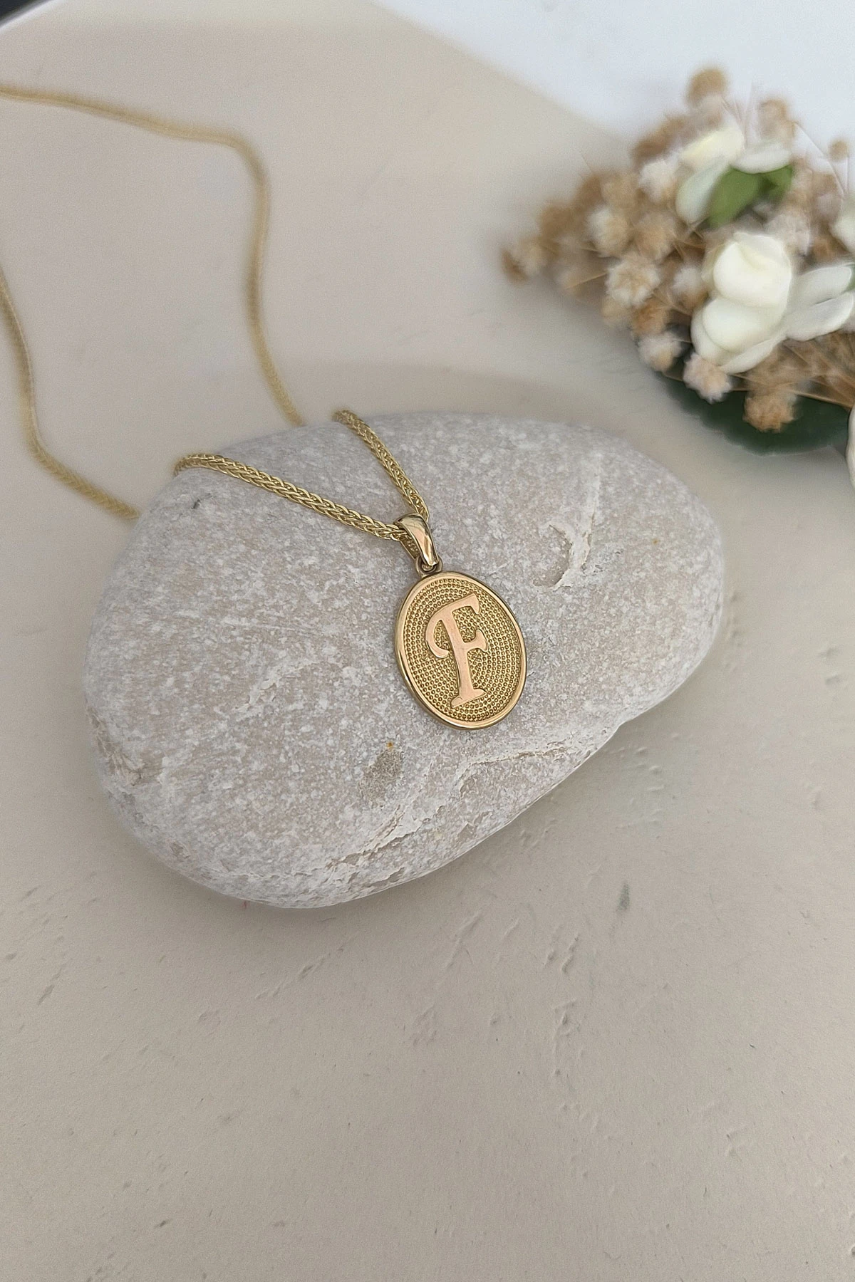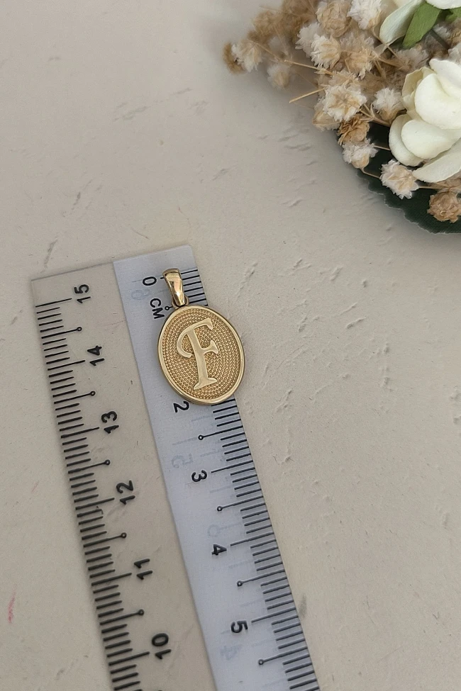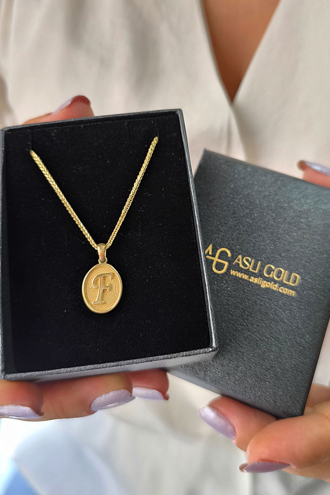 14 Ayar Altın Oval Spor Model F Harfi Tasarım Kolye.