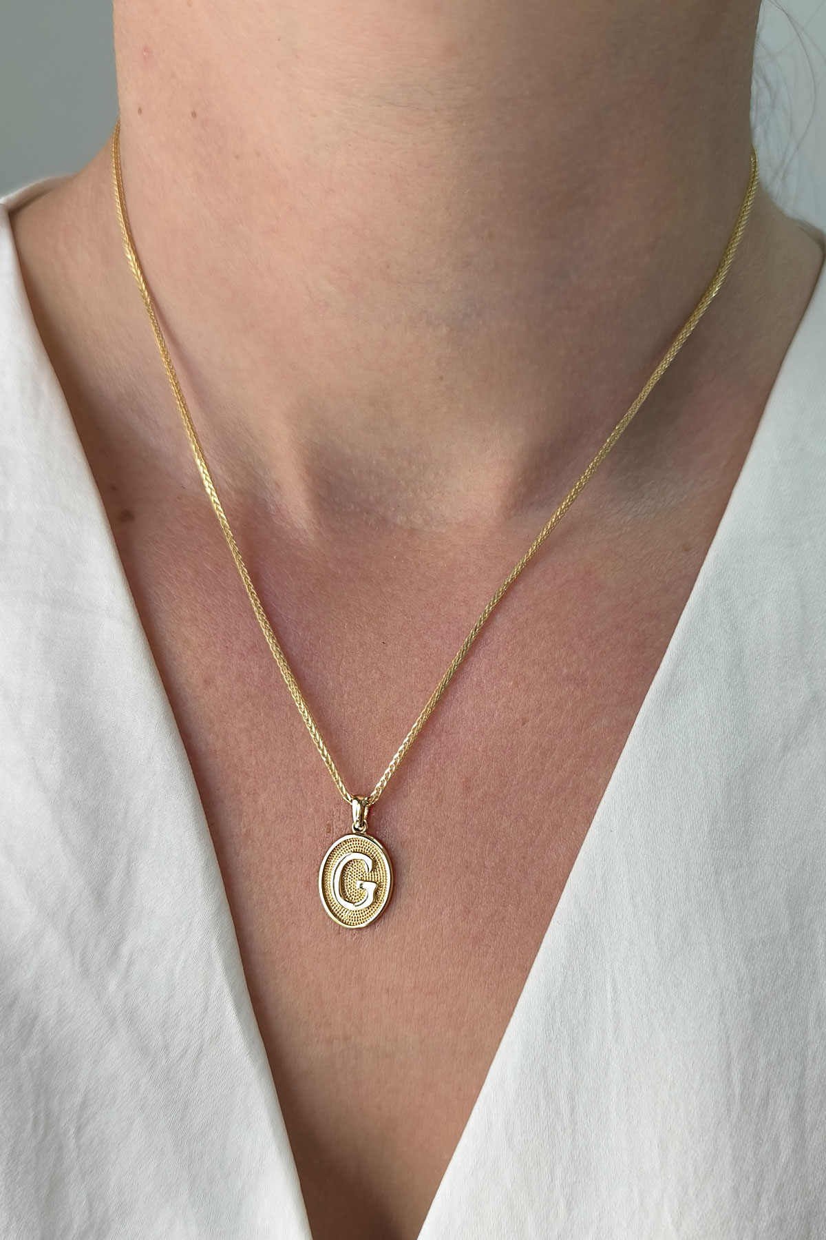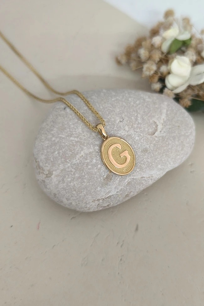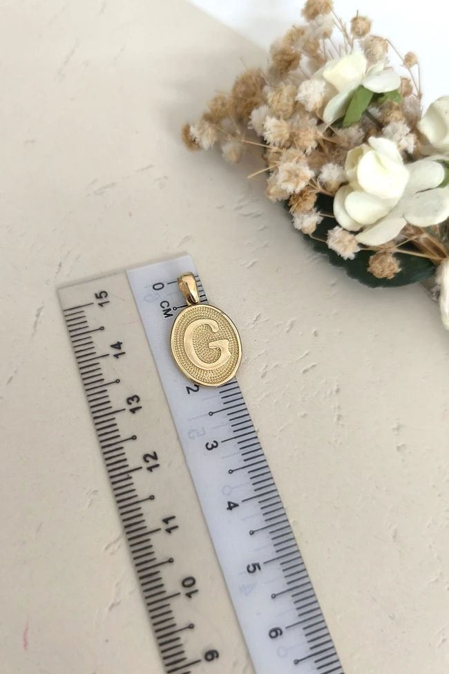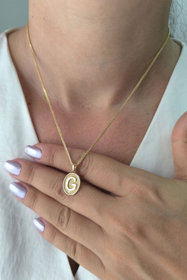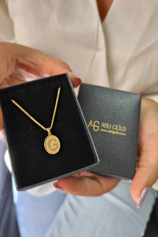 14 Ayar Altın Oval Spor Model G Harfi Tasarım Kolye.
