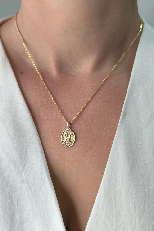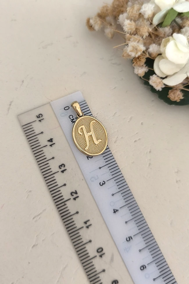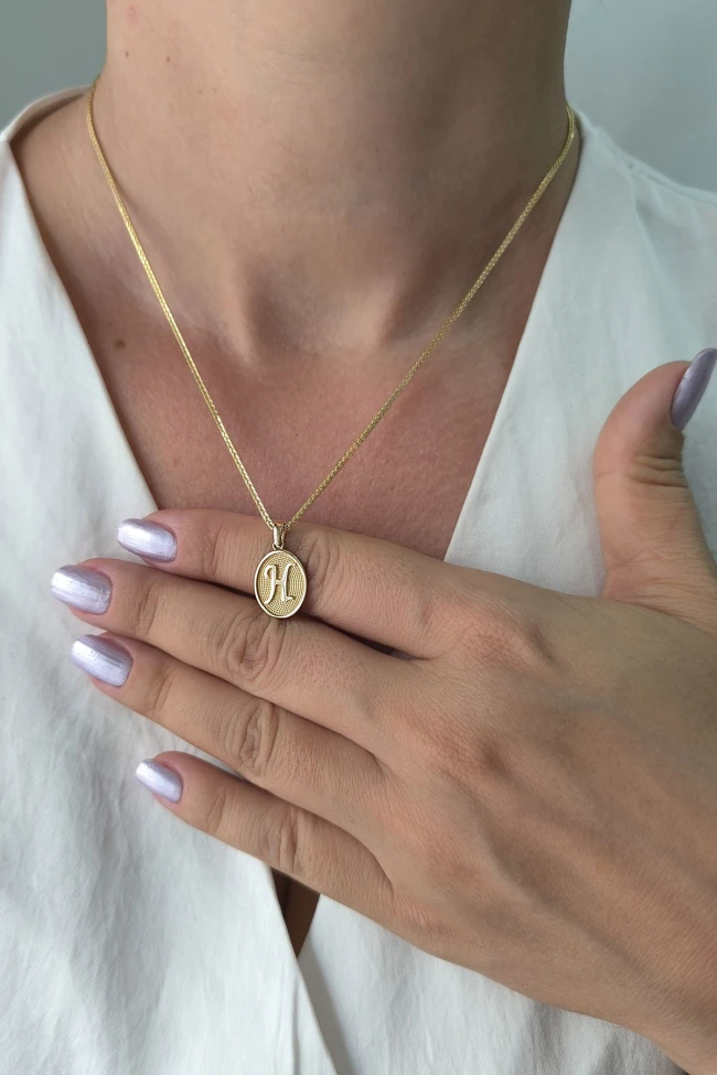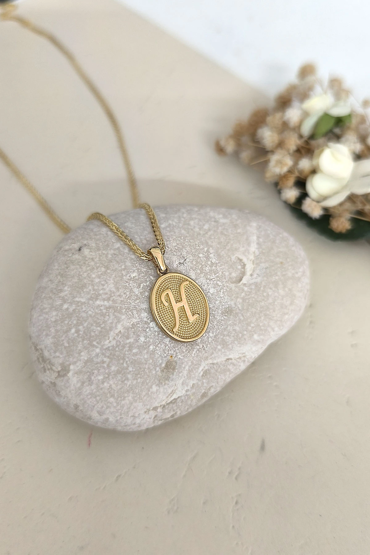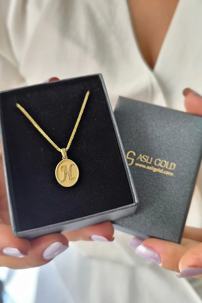 14 Ayar Altın Oval Spor Model H Harfi Tasarım Kolye.
