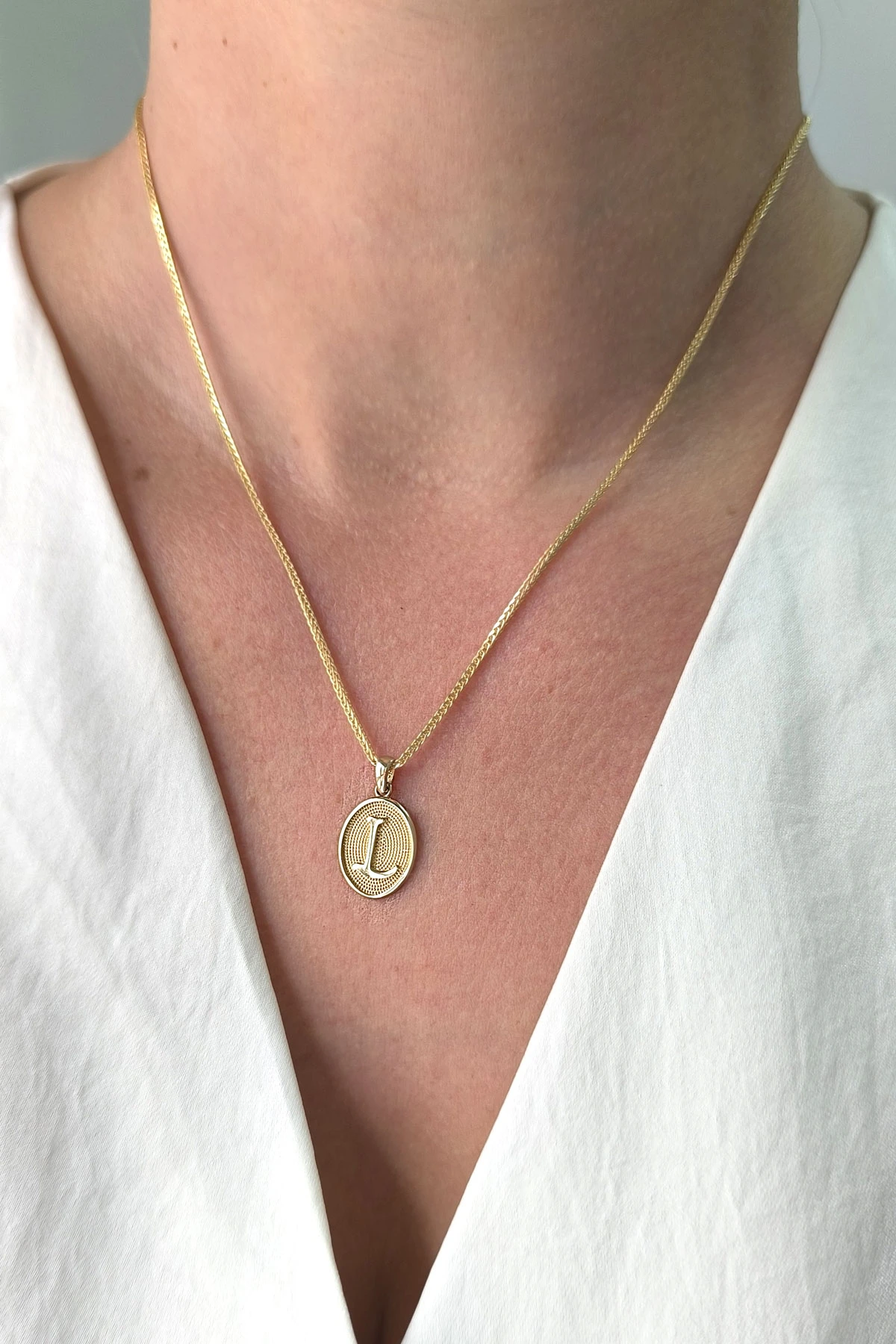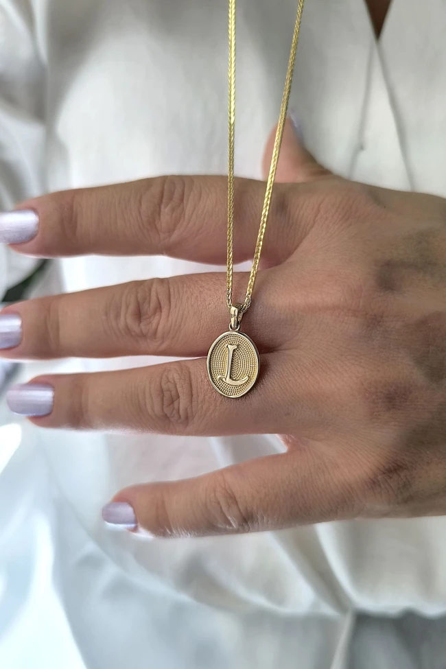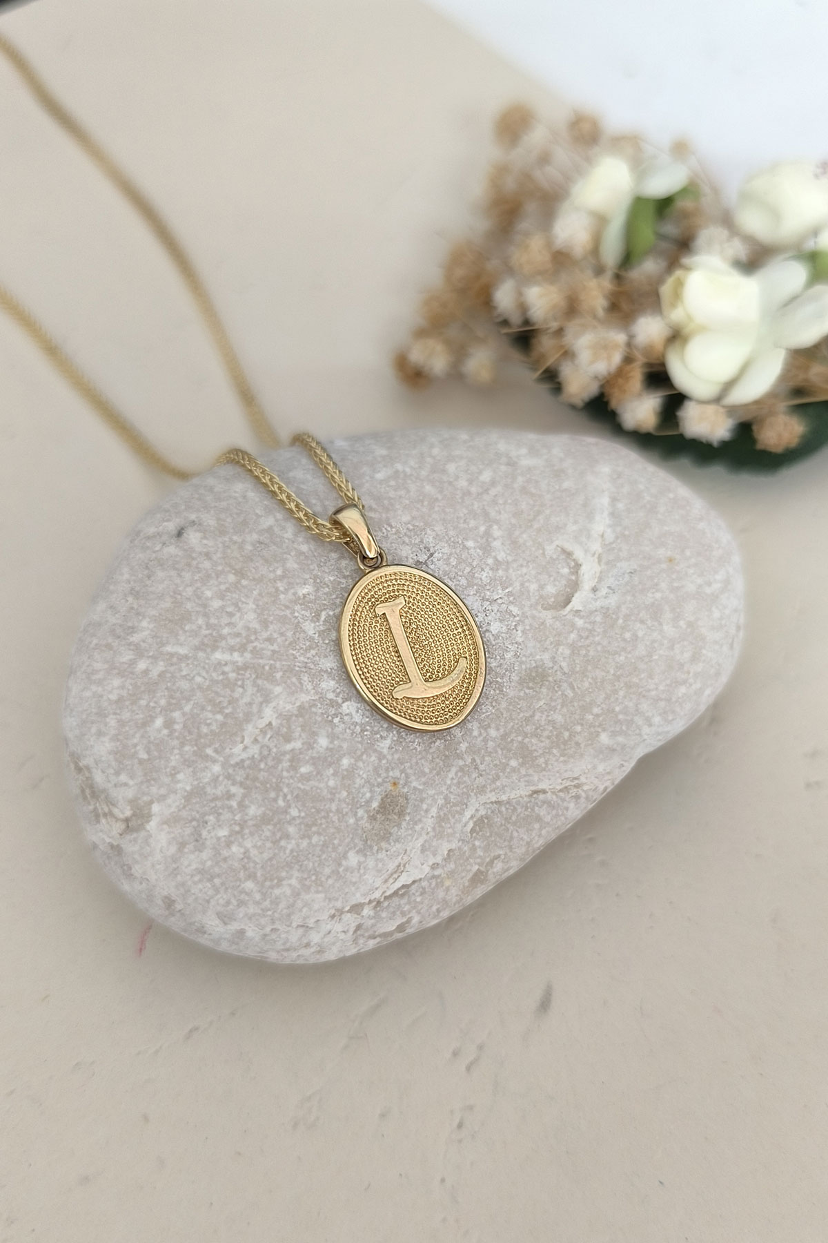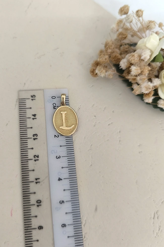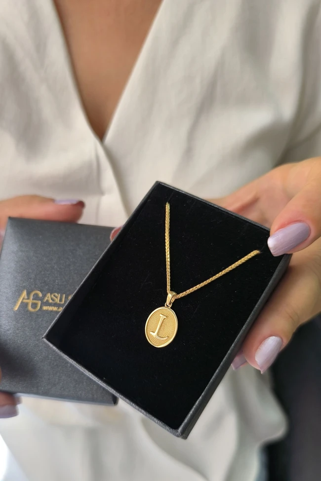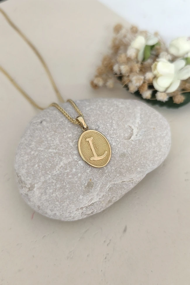 14 Ayar Altın Oval Spor Model L Harfi Tasarım Kolye.