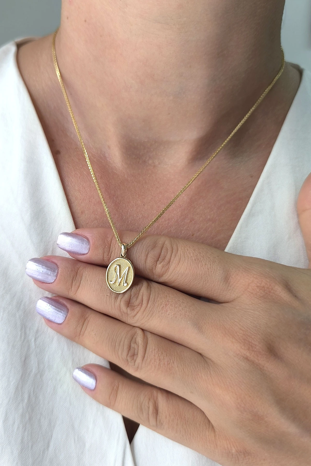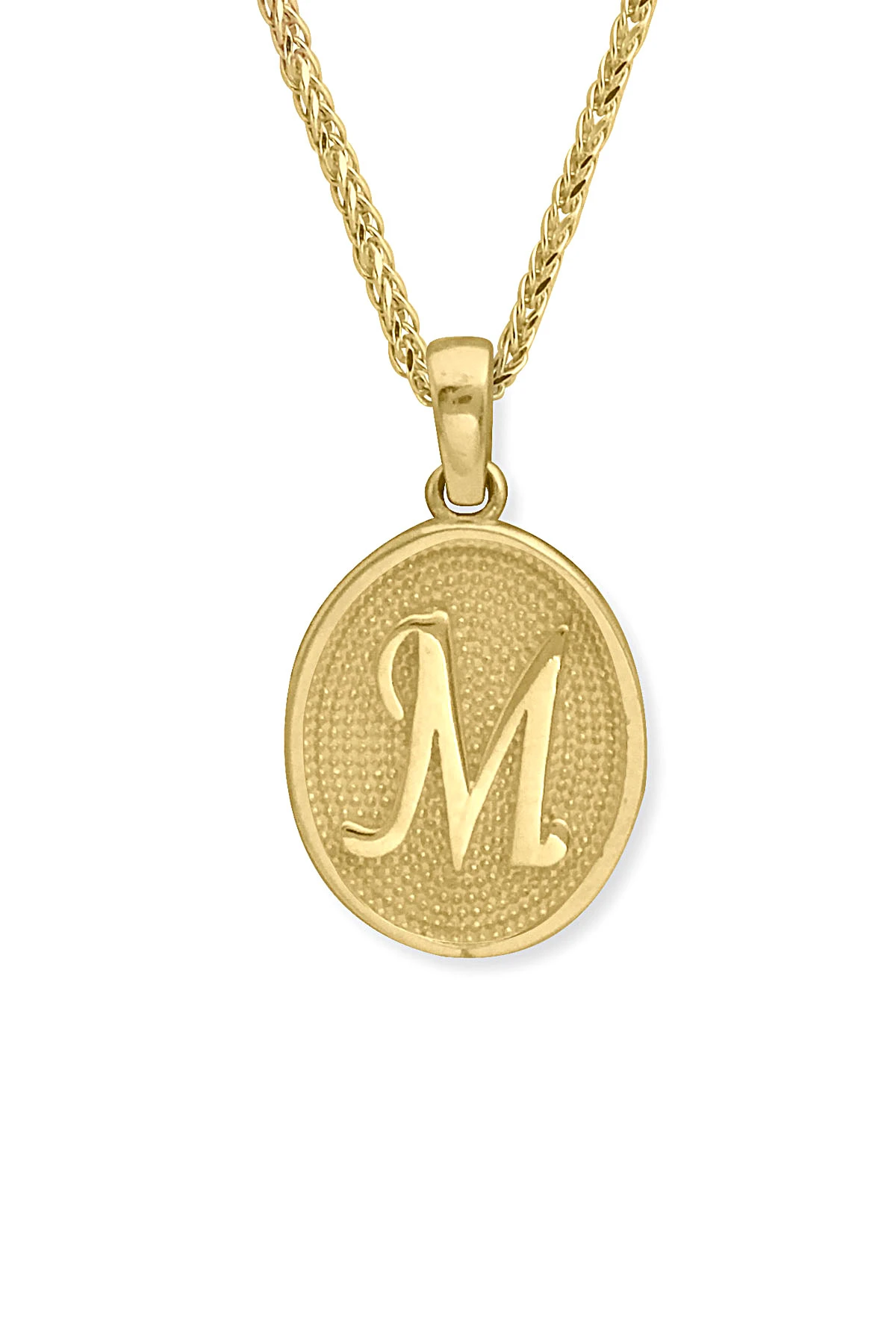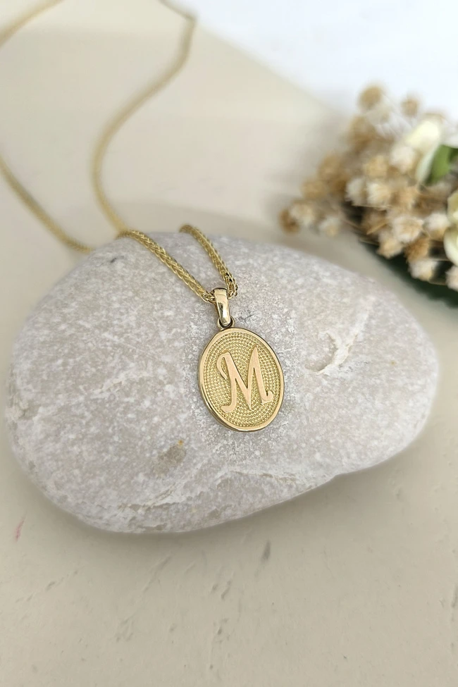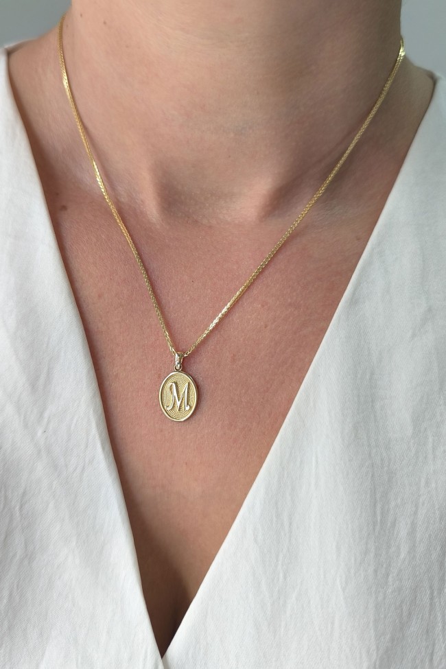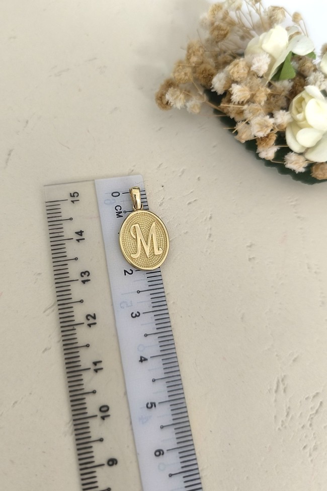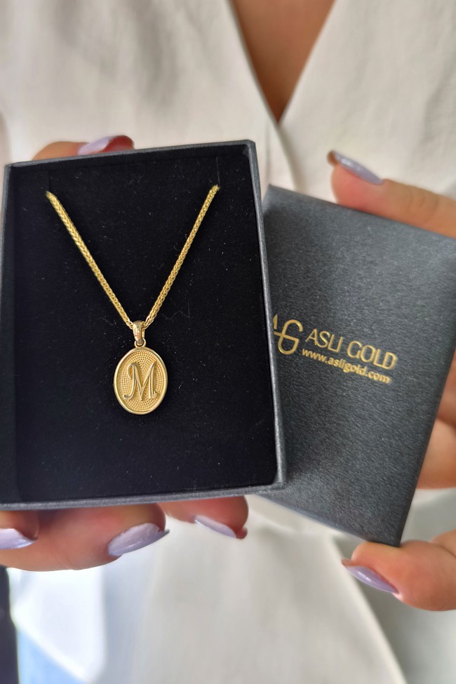 14 Ayar Altın Oval Spor Model M Harfi Tasarım Kolye.