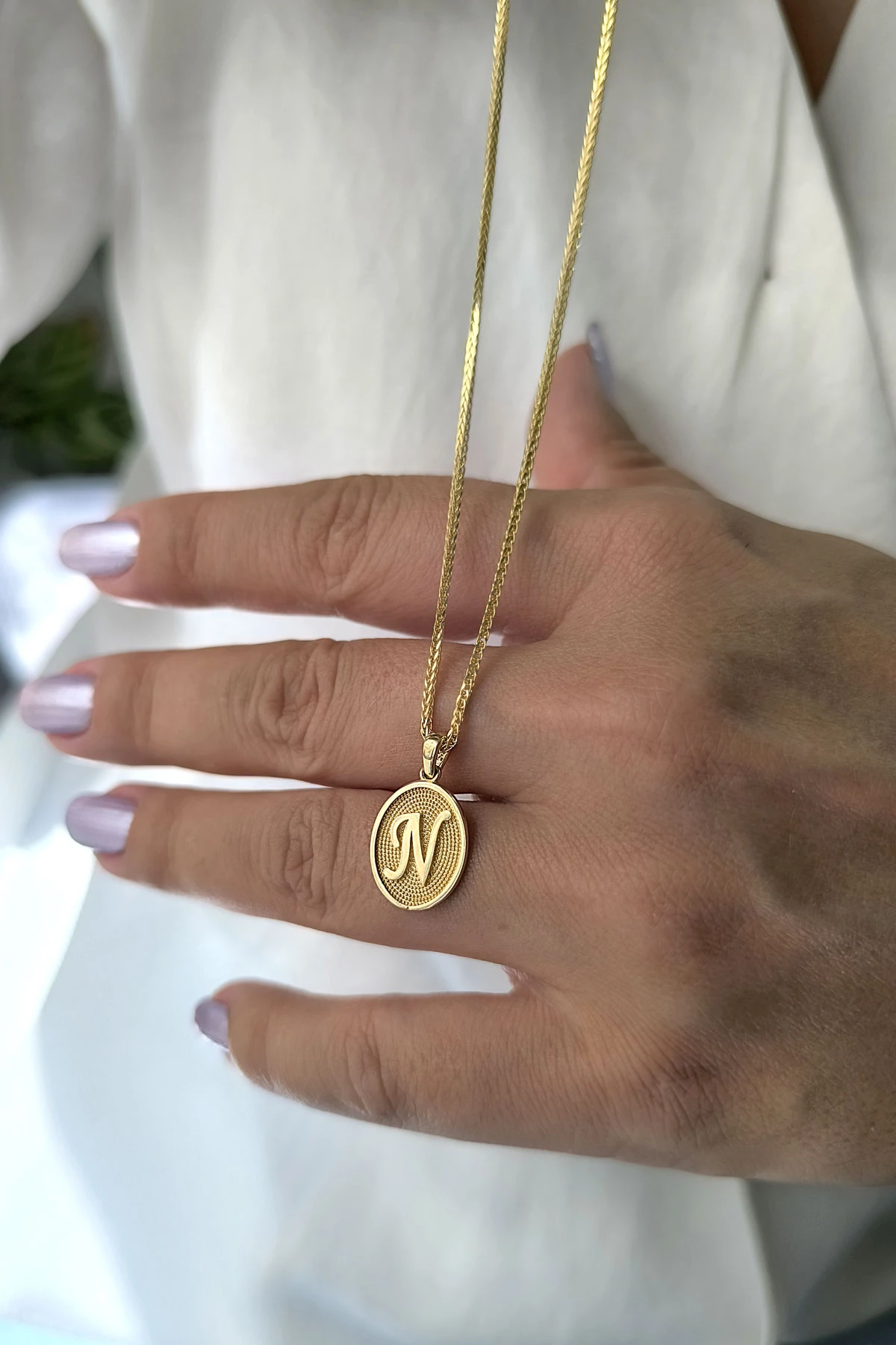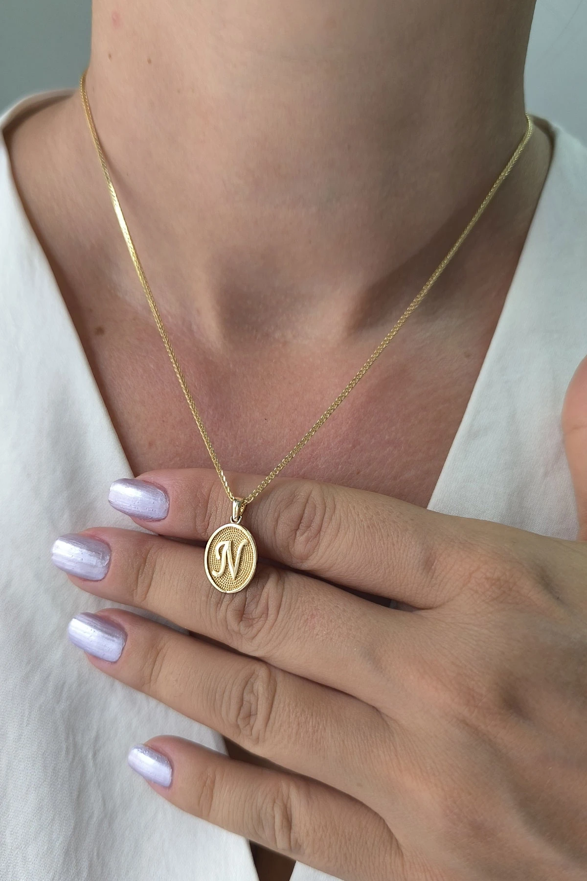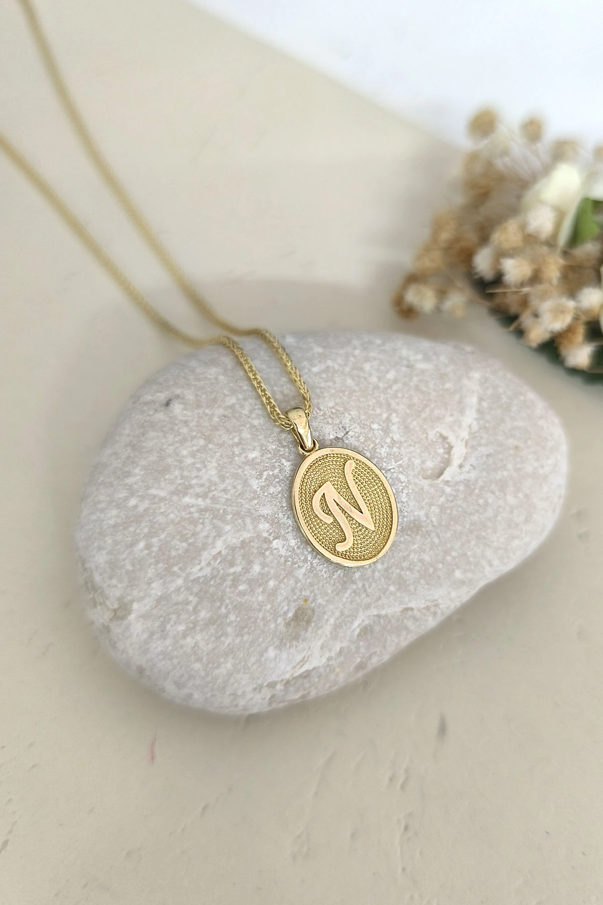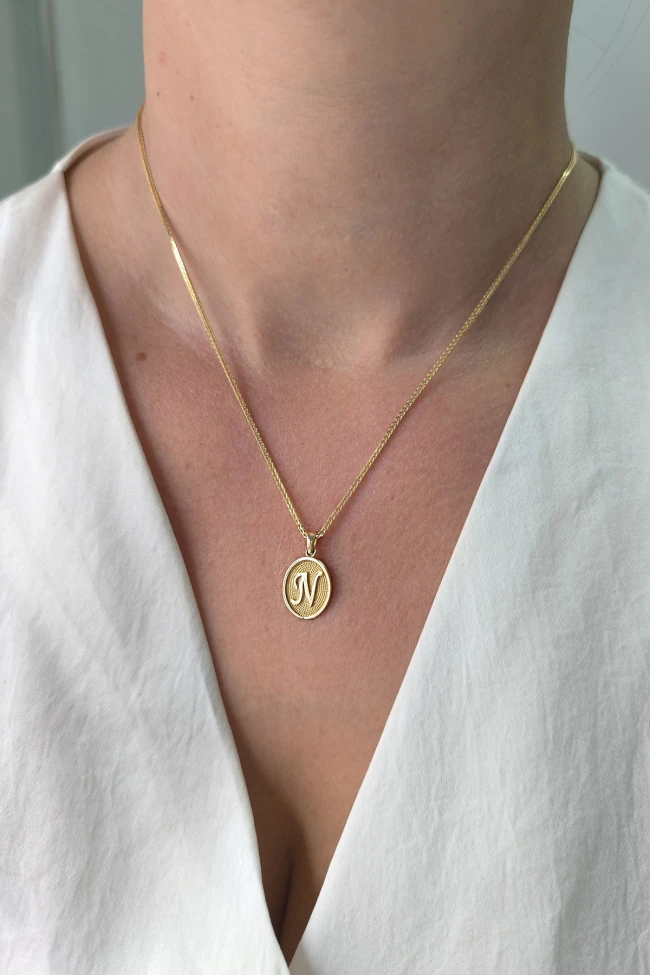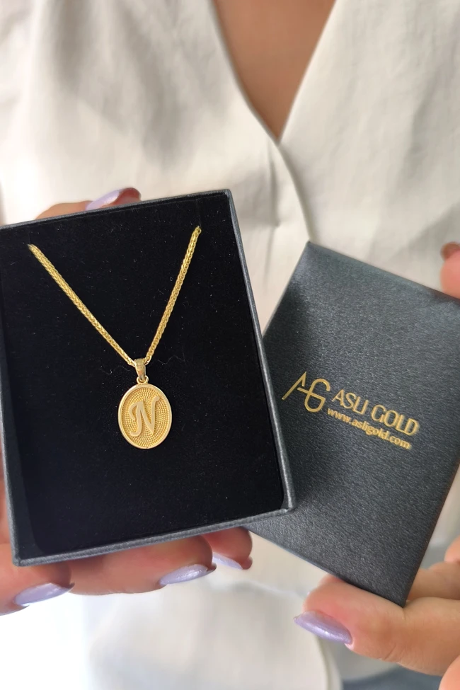14 Ayar Altın Oval Spor Model N Harfi Tasarım Kolye.