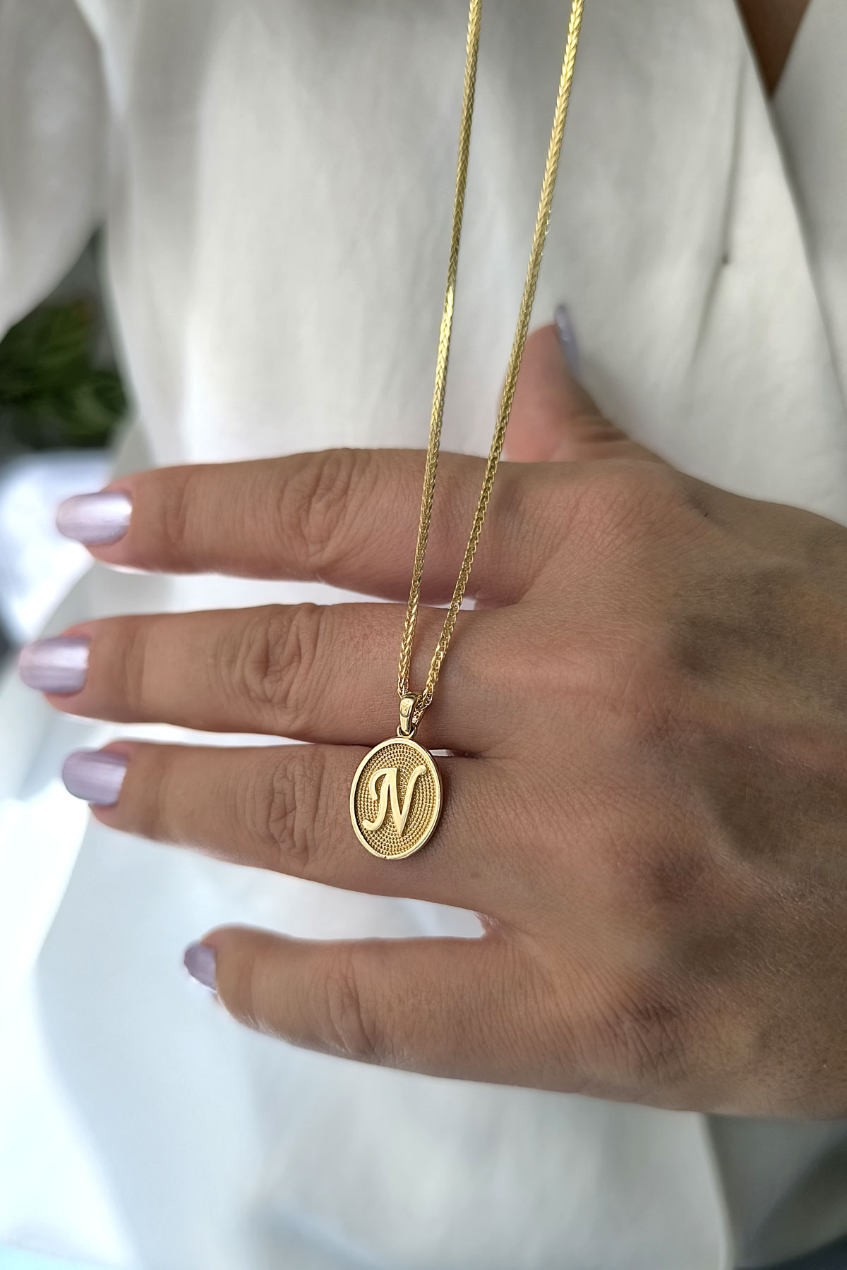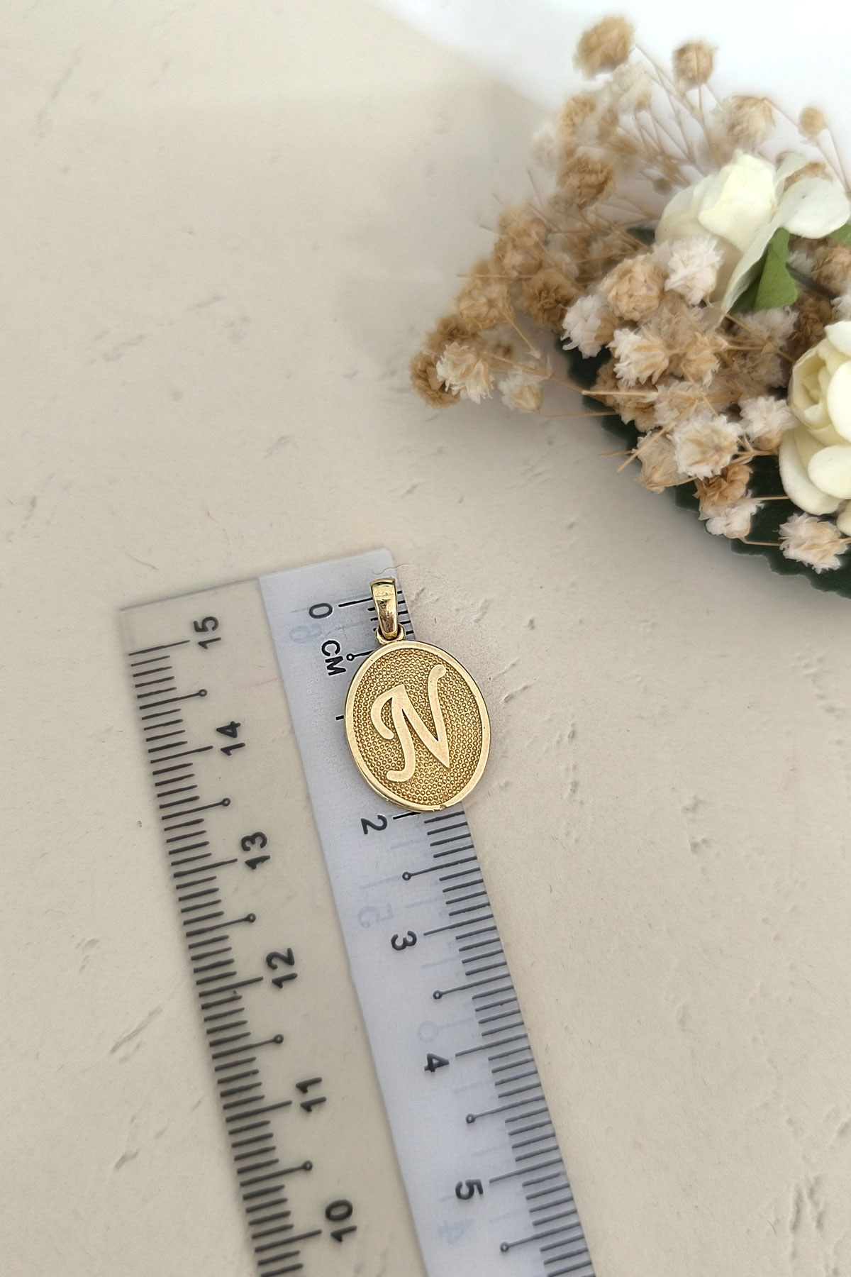 14 Ayar Altın Oval Spor Model N Harfi Tasarım Kolye Ucu.