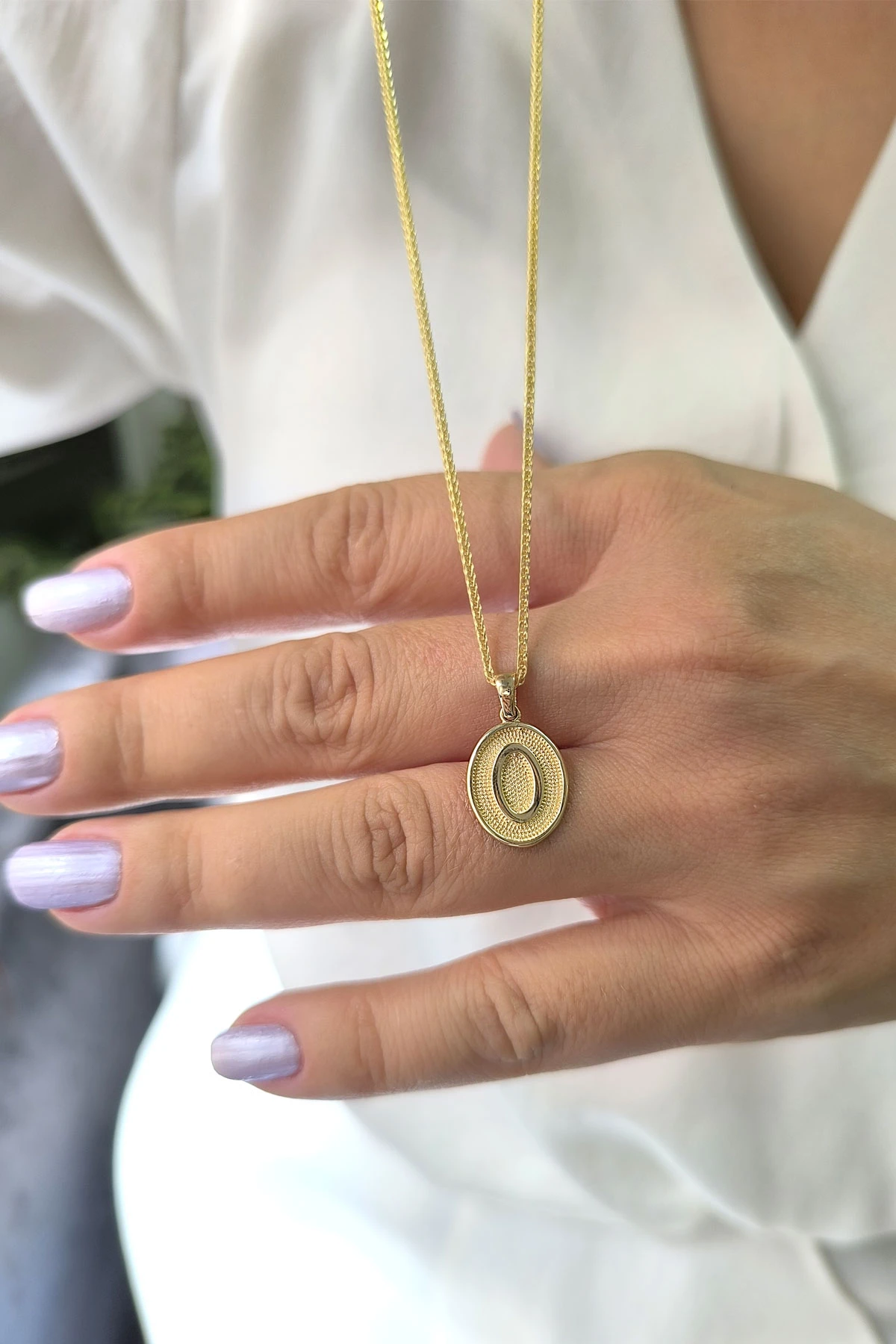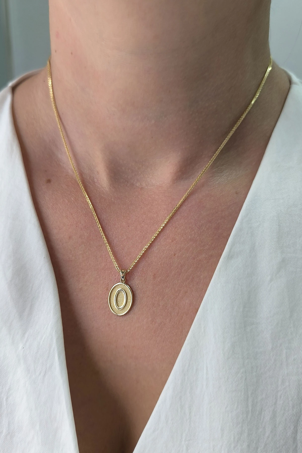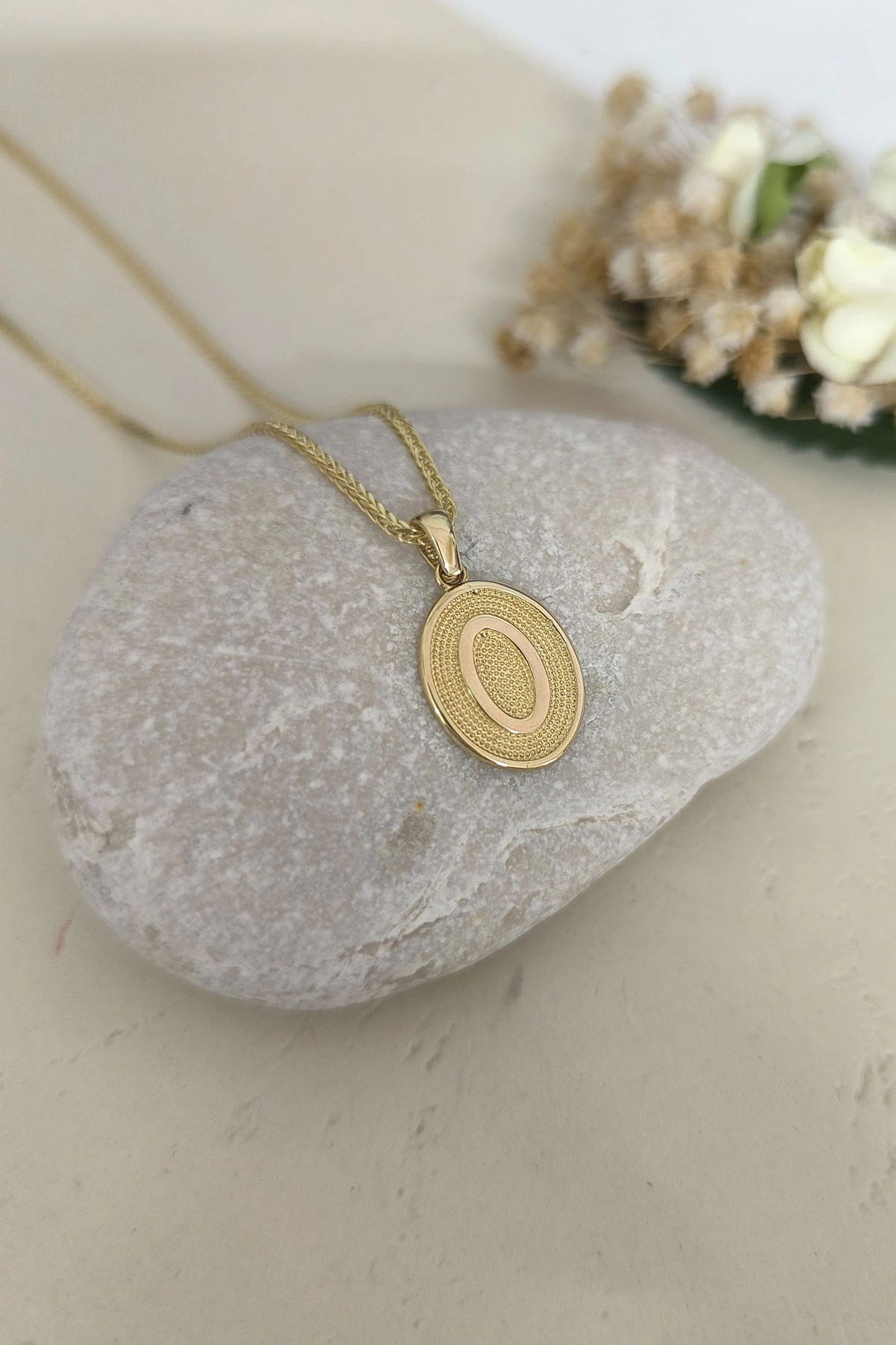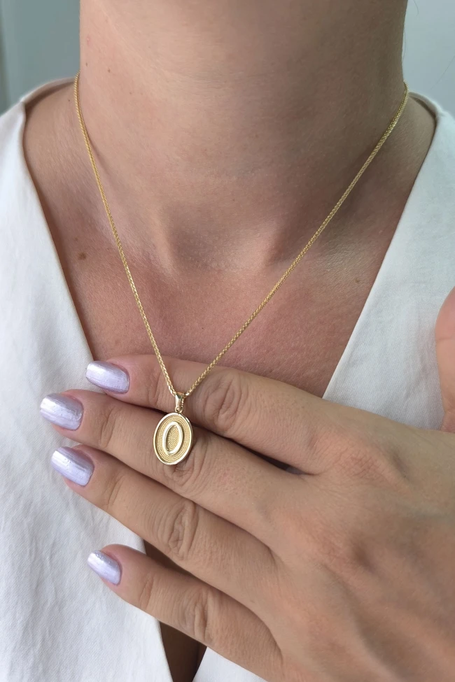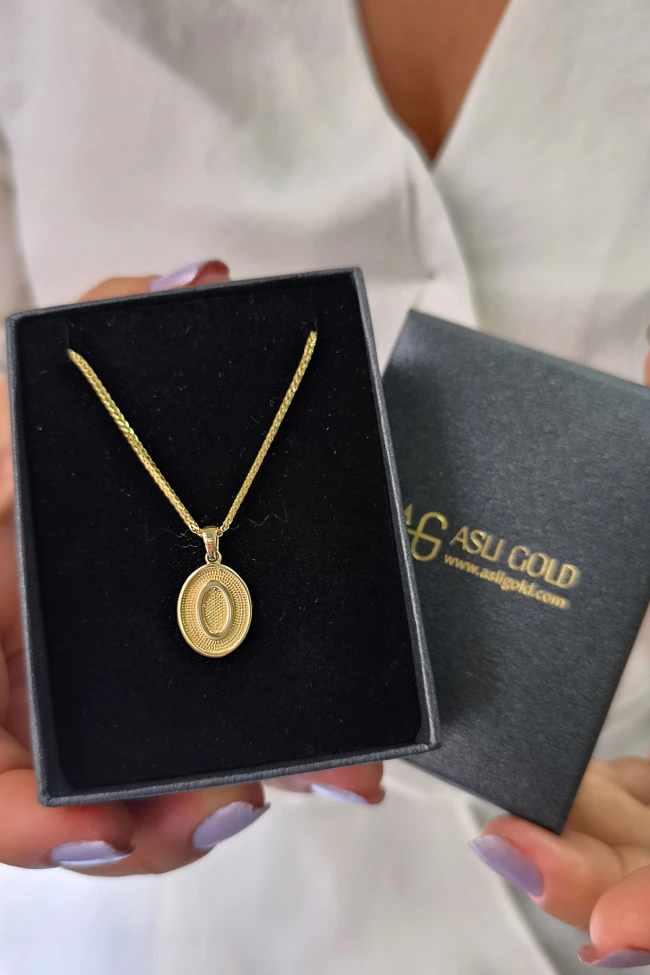 14 Ayar Altın Oval Spor Model O Harfi Tasarım Kolye.