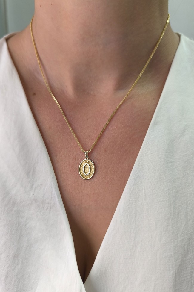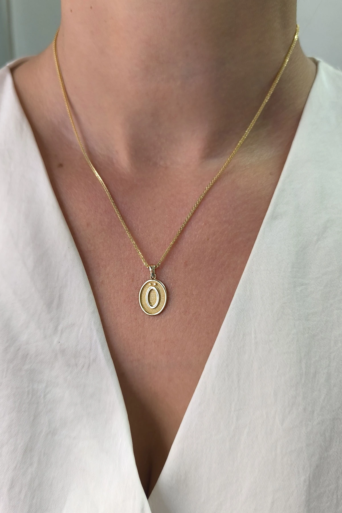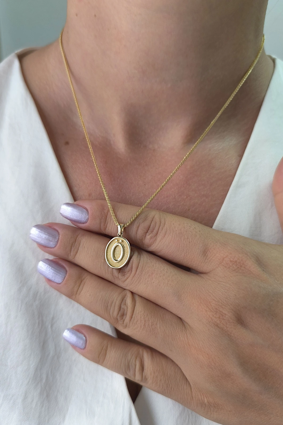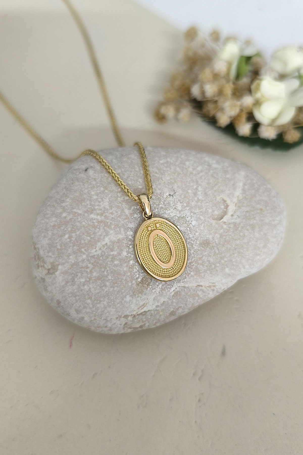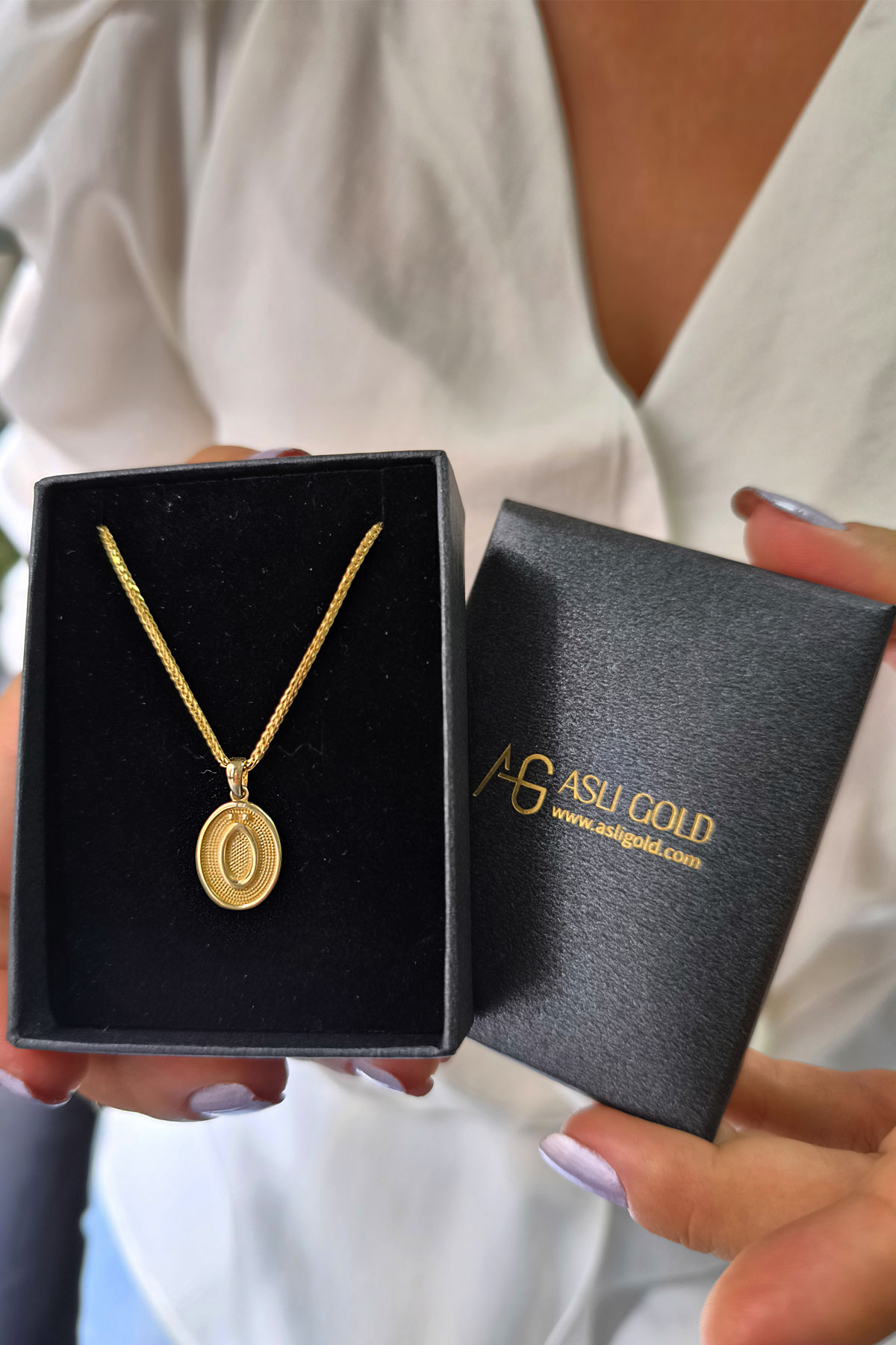 14 Ayar Altın Oval Spor Model ÖHarfi Tasarım Kolye.