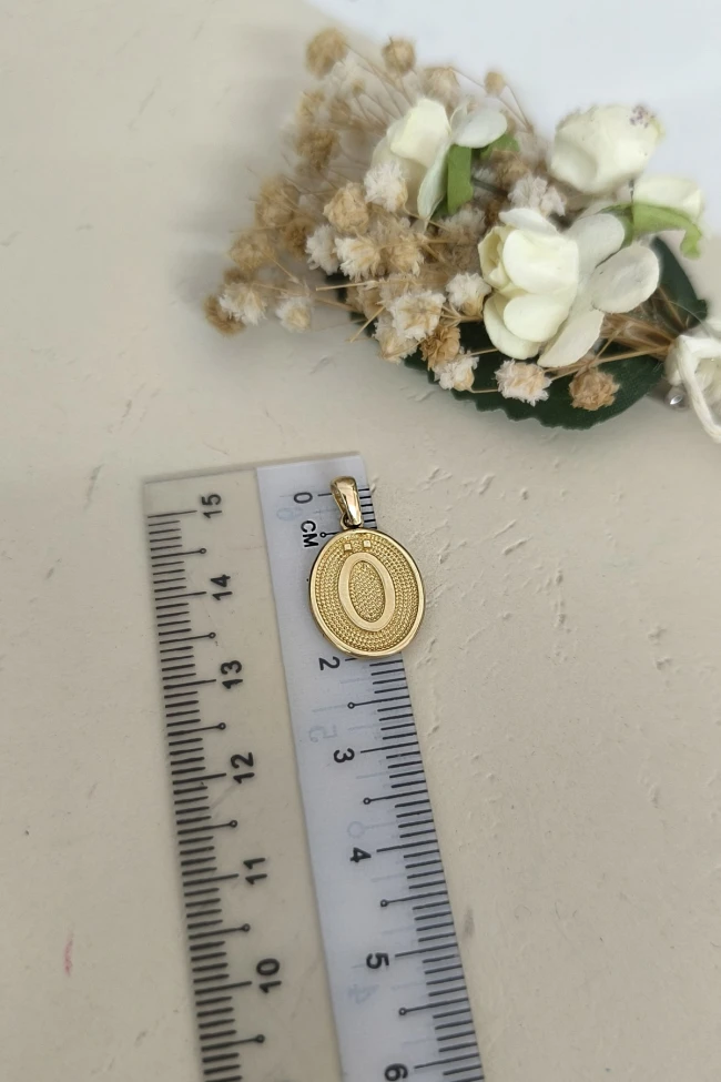 14 Ayar Altın Oval Spor Model Ö Harfi Tasarım Kolye Ucu.