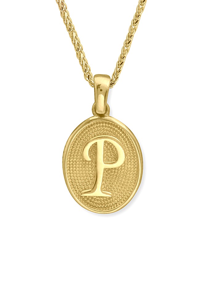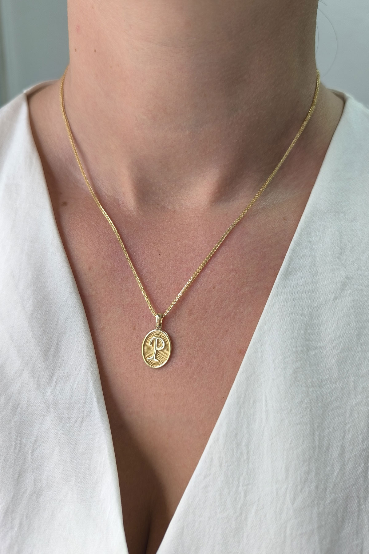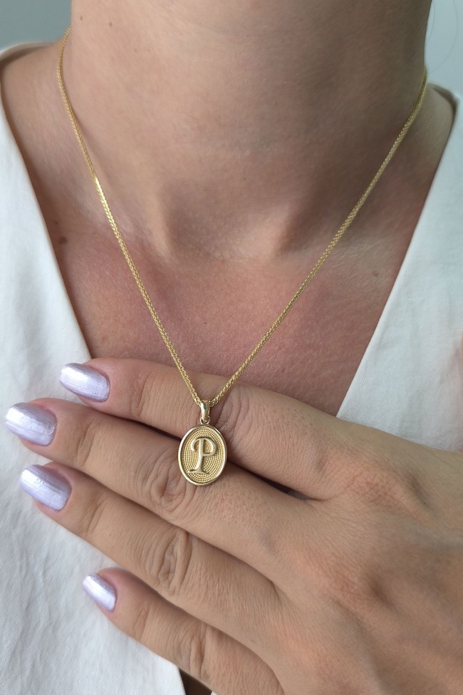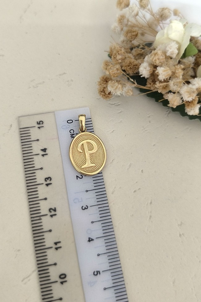 14 Ayar Altın Oval Spor Model P Harfi Tasarım Kolye.