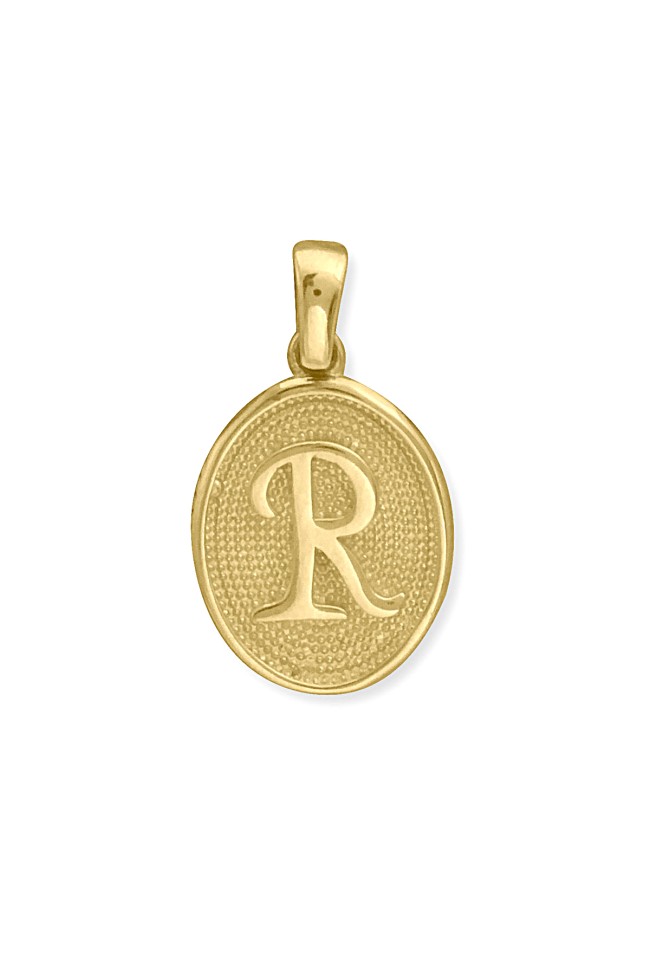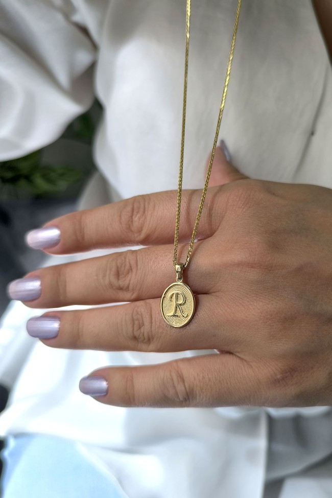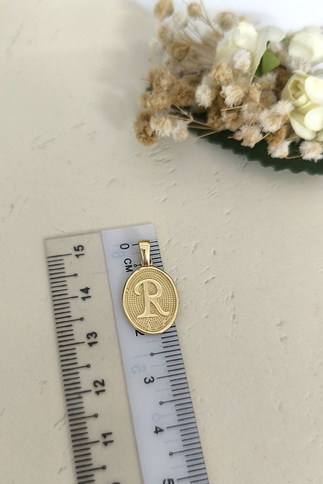 14 Ayar Altın Oval Spor Model R Harfi Tasarım Kolye Ucu.