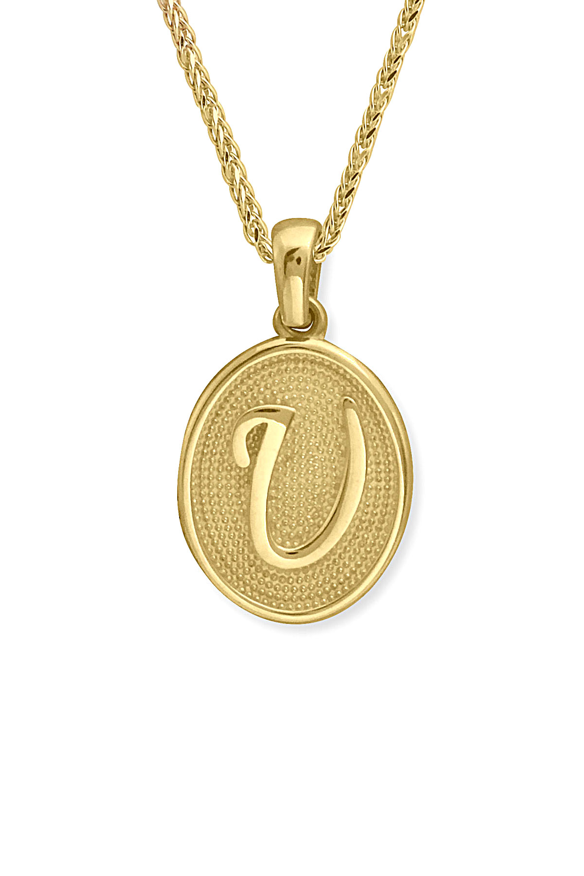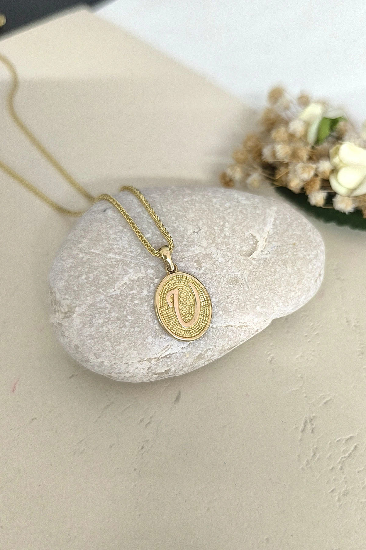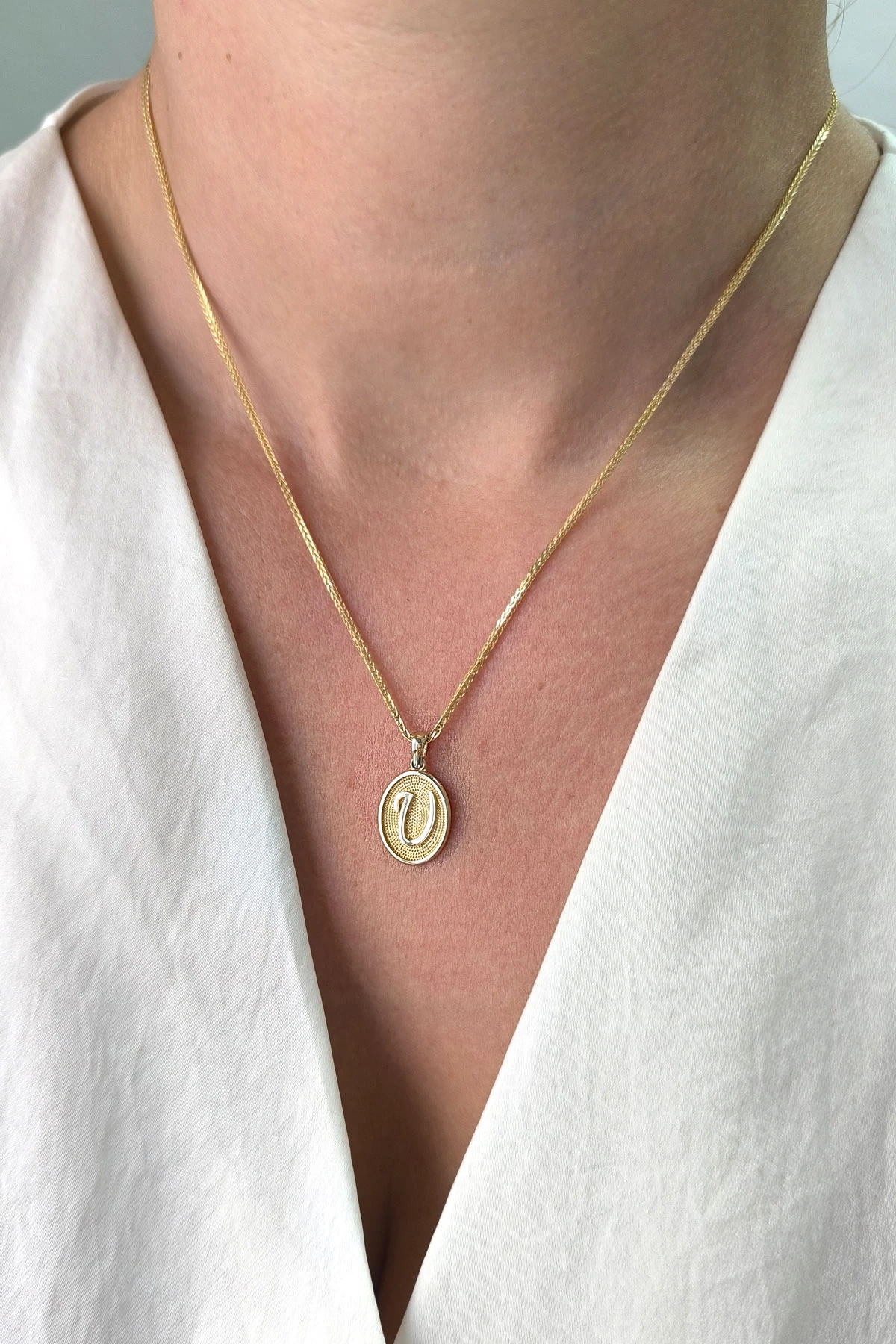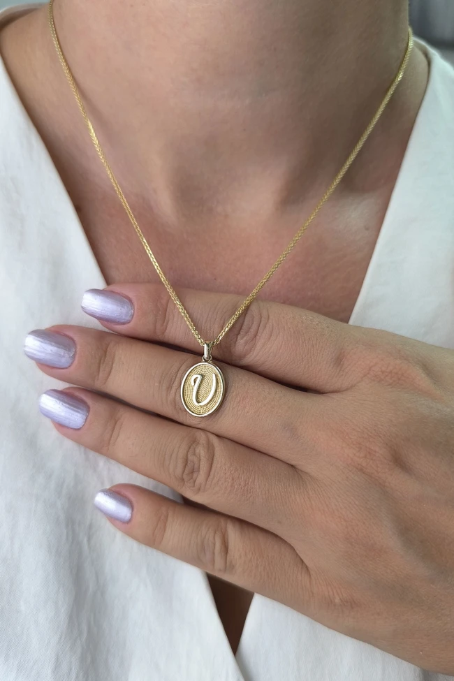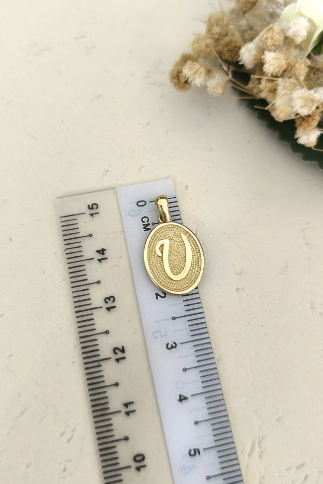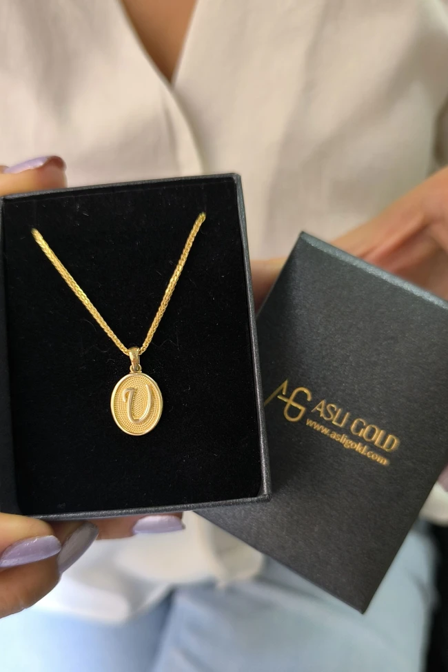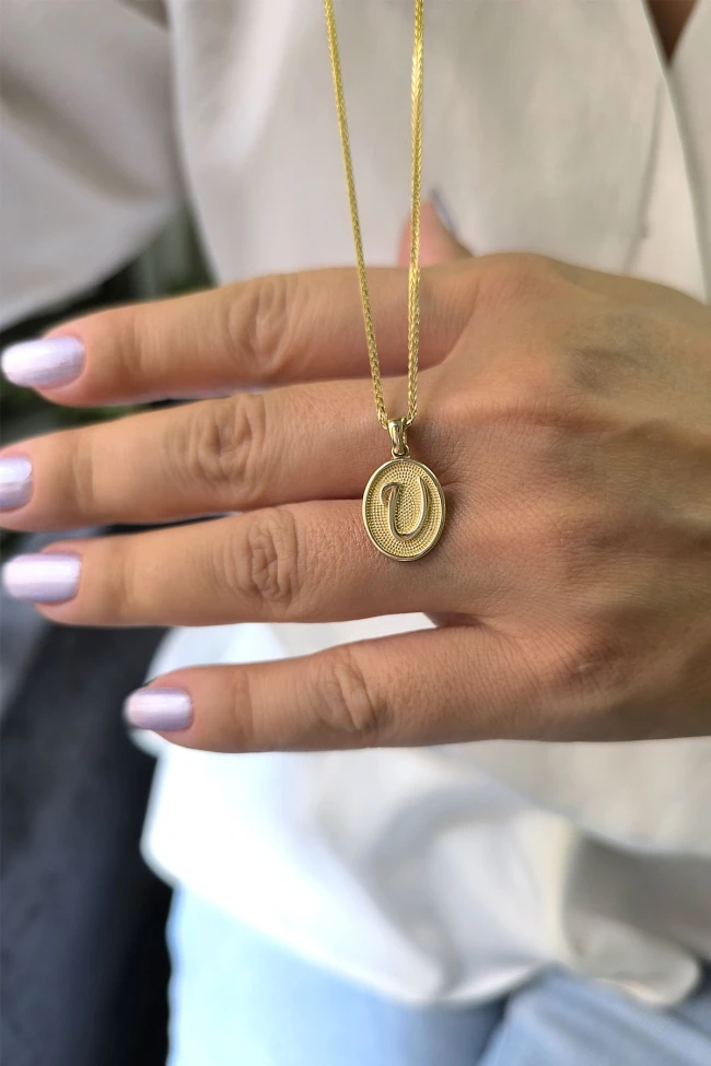 14 Ayar Altın Oval Spor Model U Harfi Tasarım Kolye.