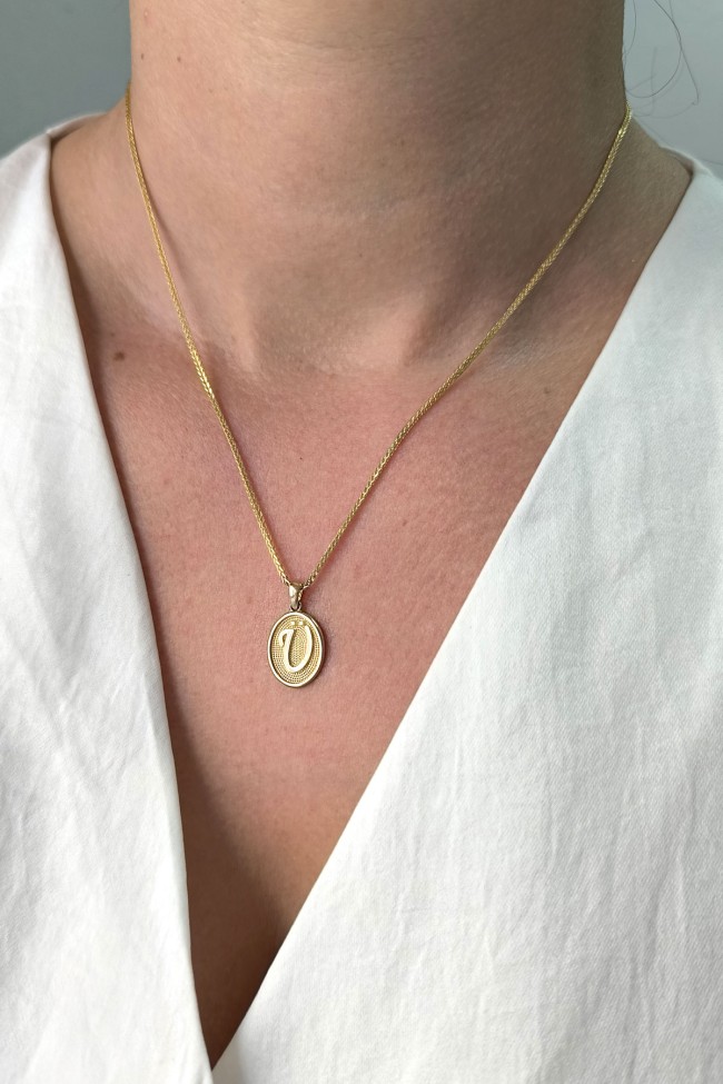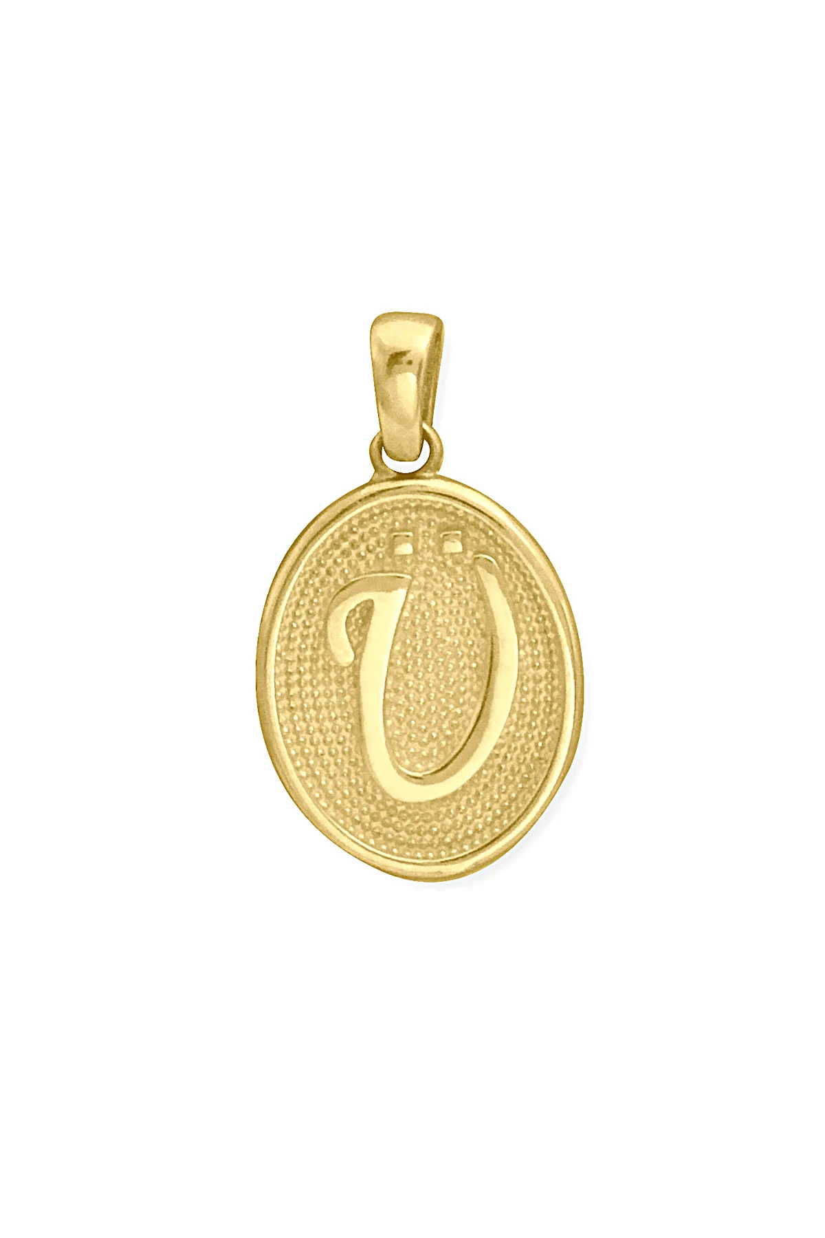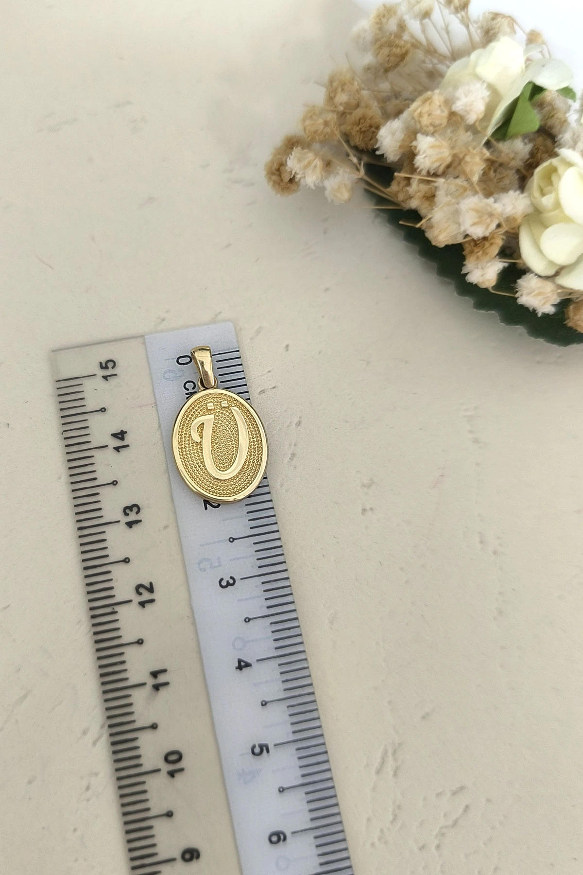 14 Ayar Altın Oval Spor Model Ü Harfi Tasarım Kolye Ucu.