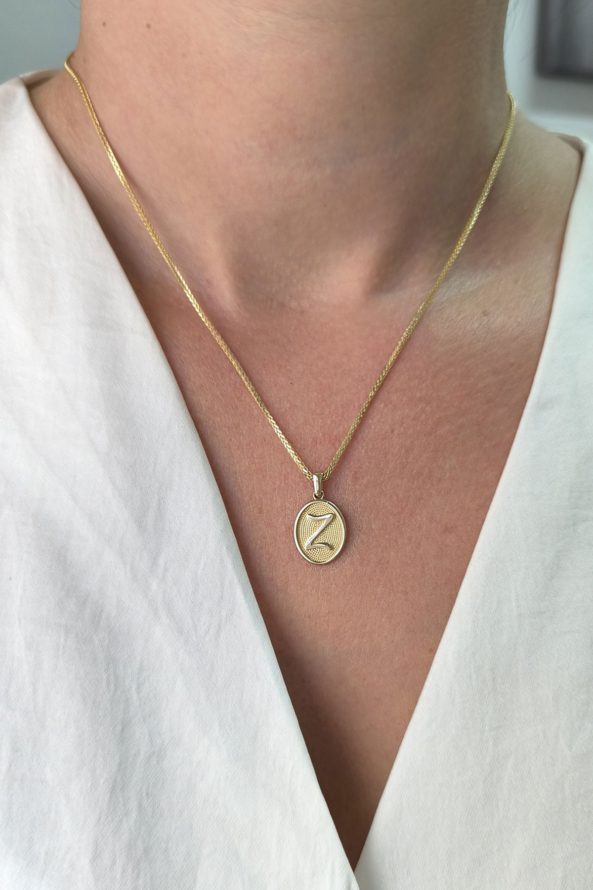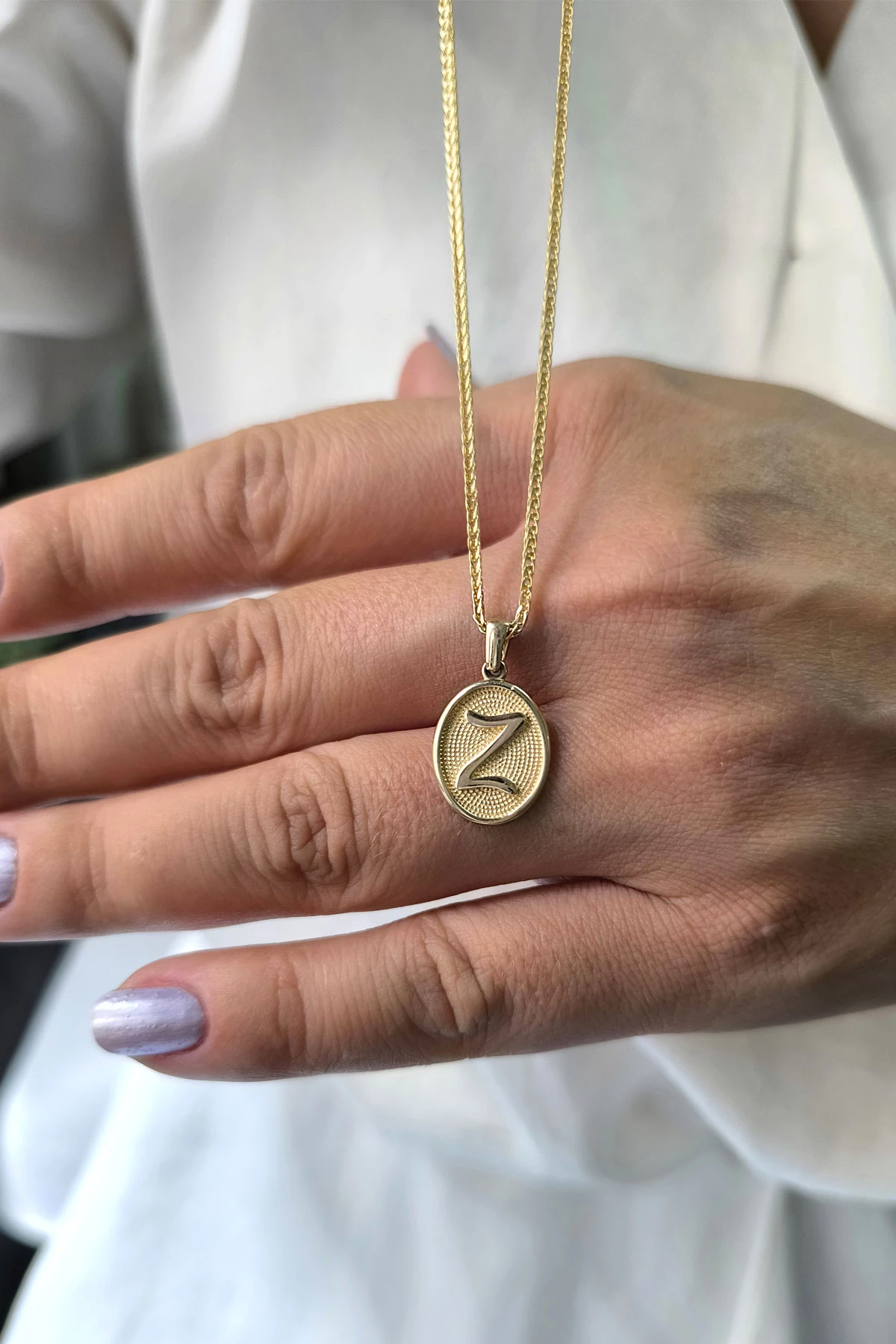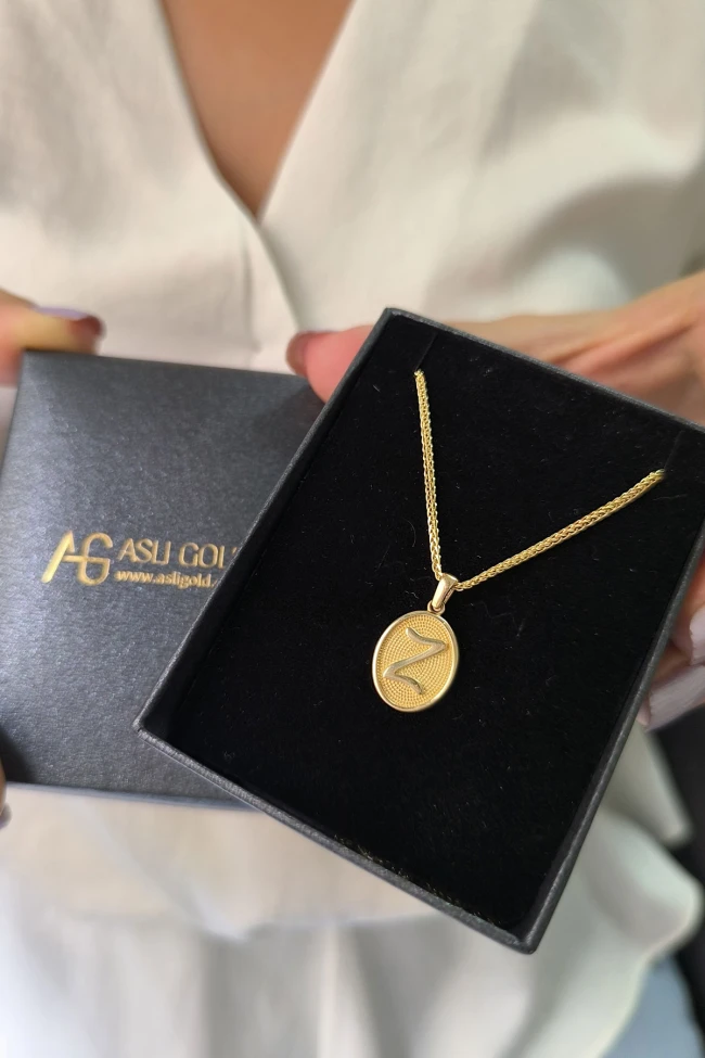14 Ayar Altın Oval Spor Model Z Harfi Tasarım Kolye.