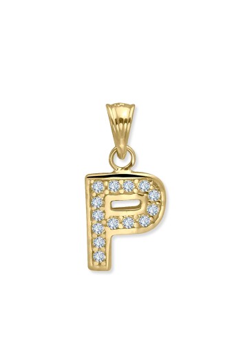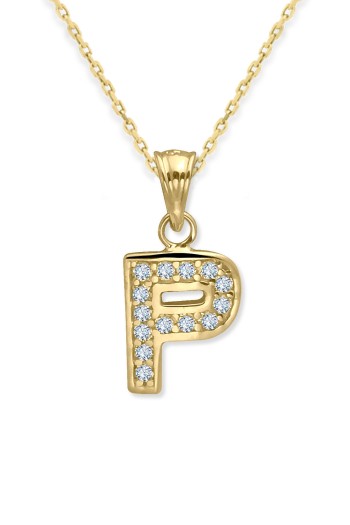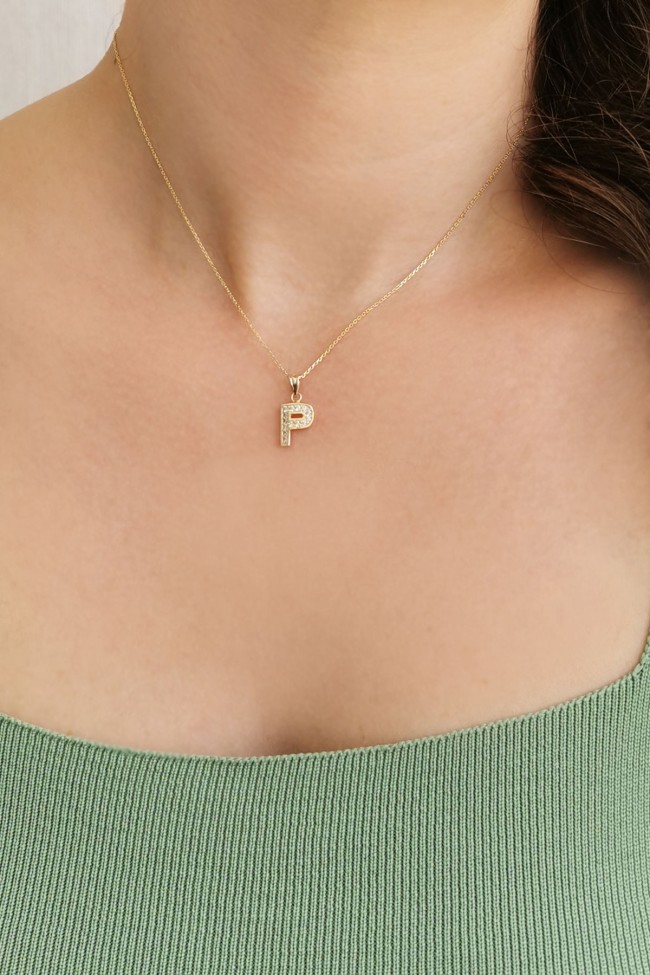 14 Ayar Altın P Harfi Zirkon Taşlı Sade Tasarım Kolye.