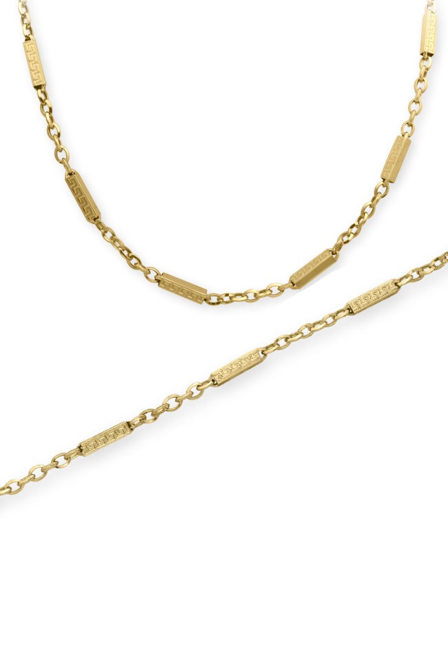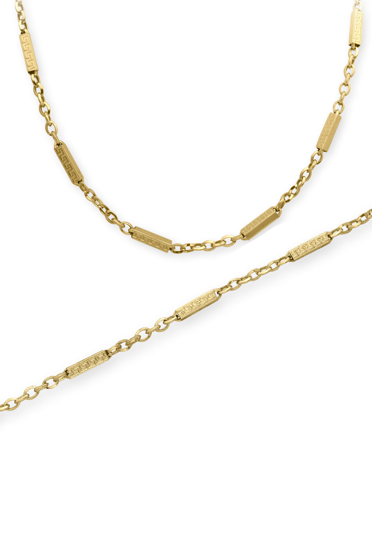 Spor Tasarım Her Sezon Trend 55 Cm Boyunda Işıl Işıl Kolyesi Ve 21 Cm Bilekliğiyle 14 Ayar Altın Pana Desenli Erkek Zincir Kolye Bileklik Takım..