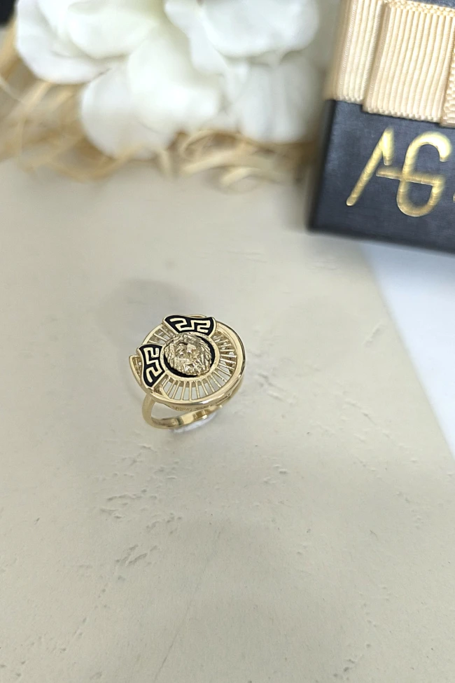 14 ayar sarı altın günlük kullanıma uygun 4.60 gram ağırlığında altın taşsız spor yuvarlak form mineli pana işleme kenarlı  aslan model unisex yüzük.