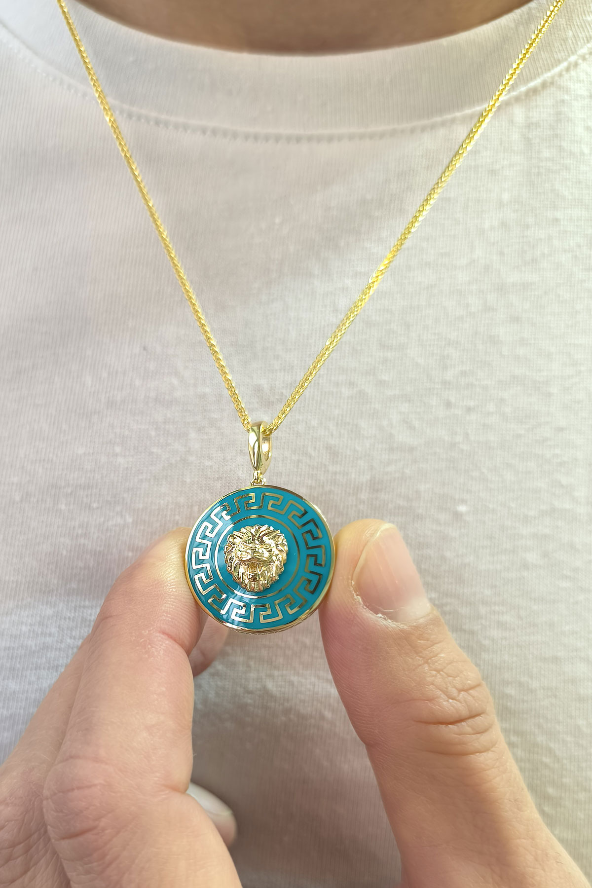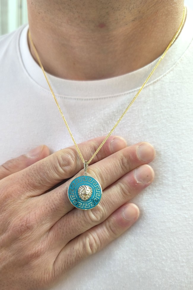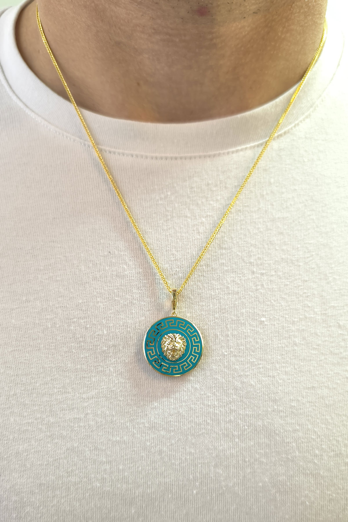 Modern Şehirli Tarz Spiga 55 Cm Zincir Seçimiyle Oldukça Şık Bir Modele Sahip Pana Kenar Detaylı Beyaz Mineli Taşsız 7.75 Gr. Ağırlığında 14 Ayar Altın Aslan Erkek Kolye.